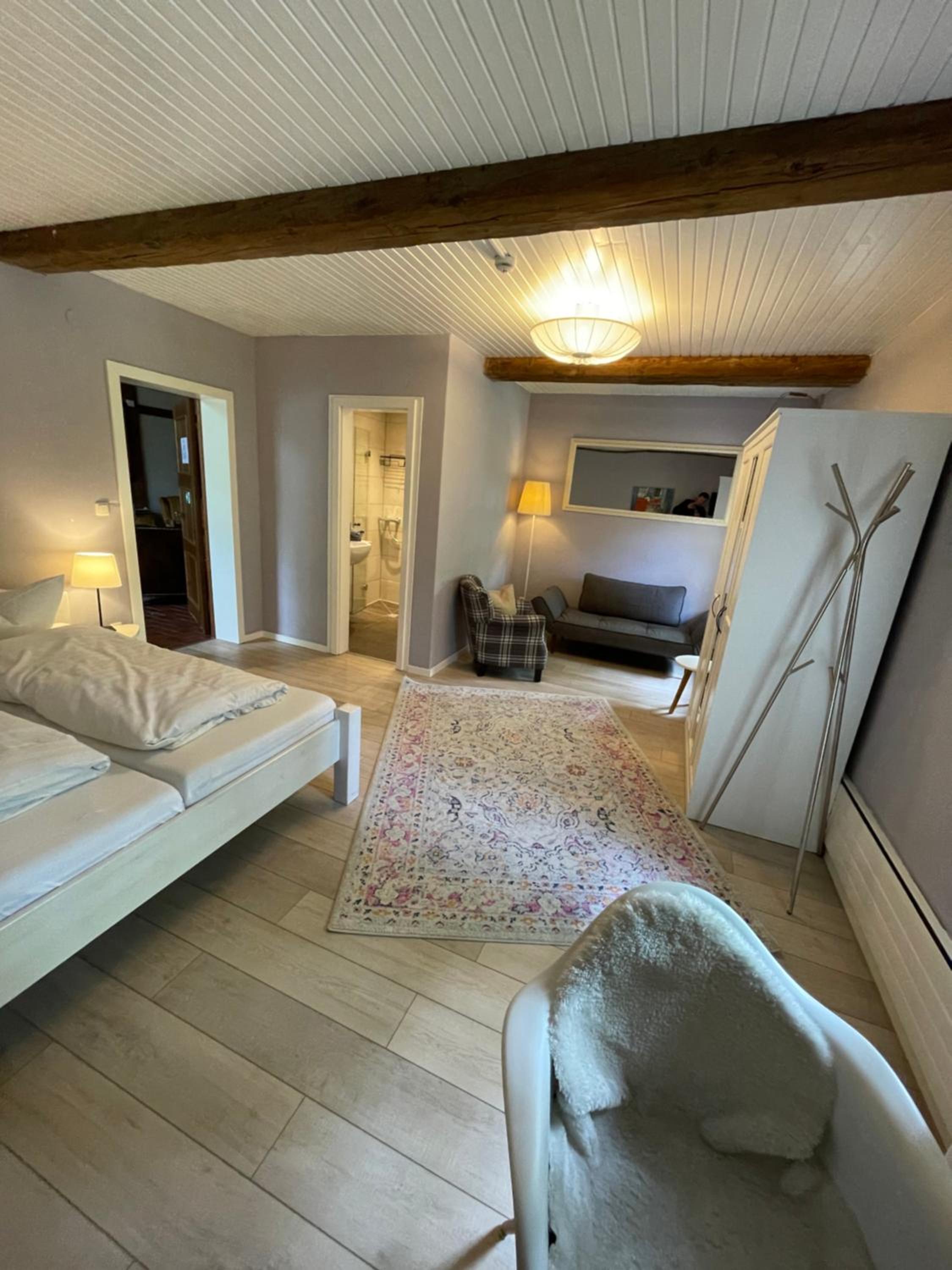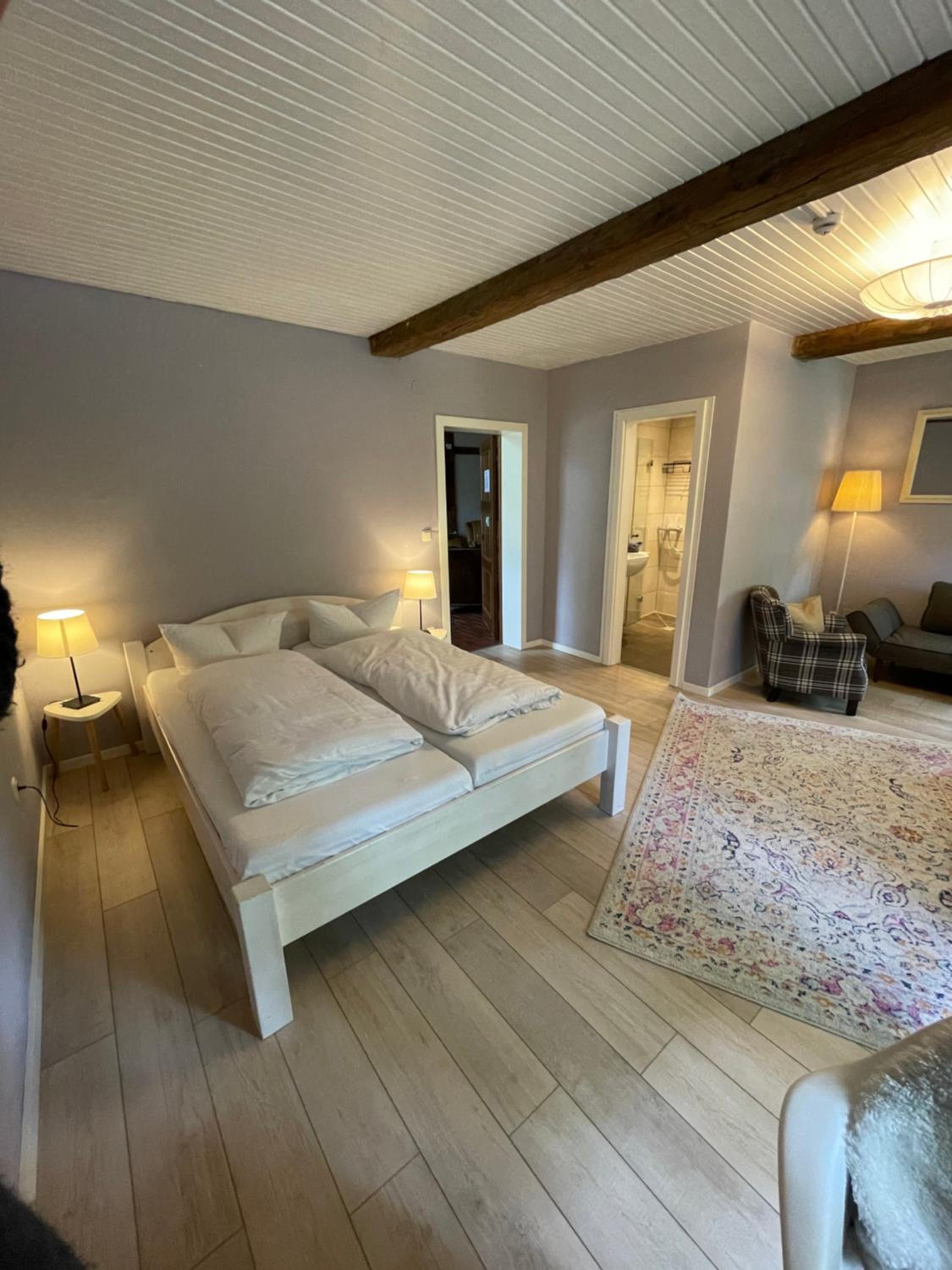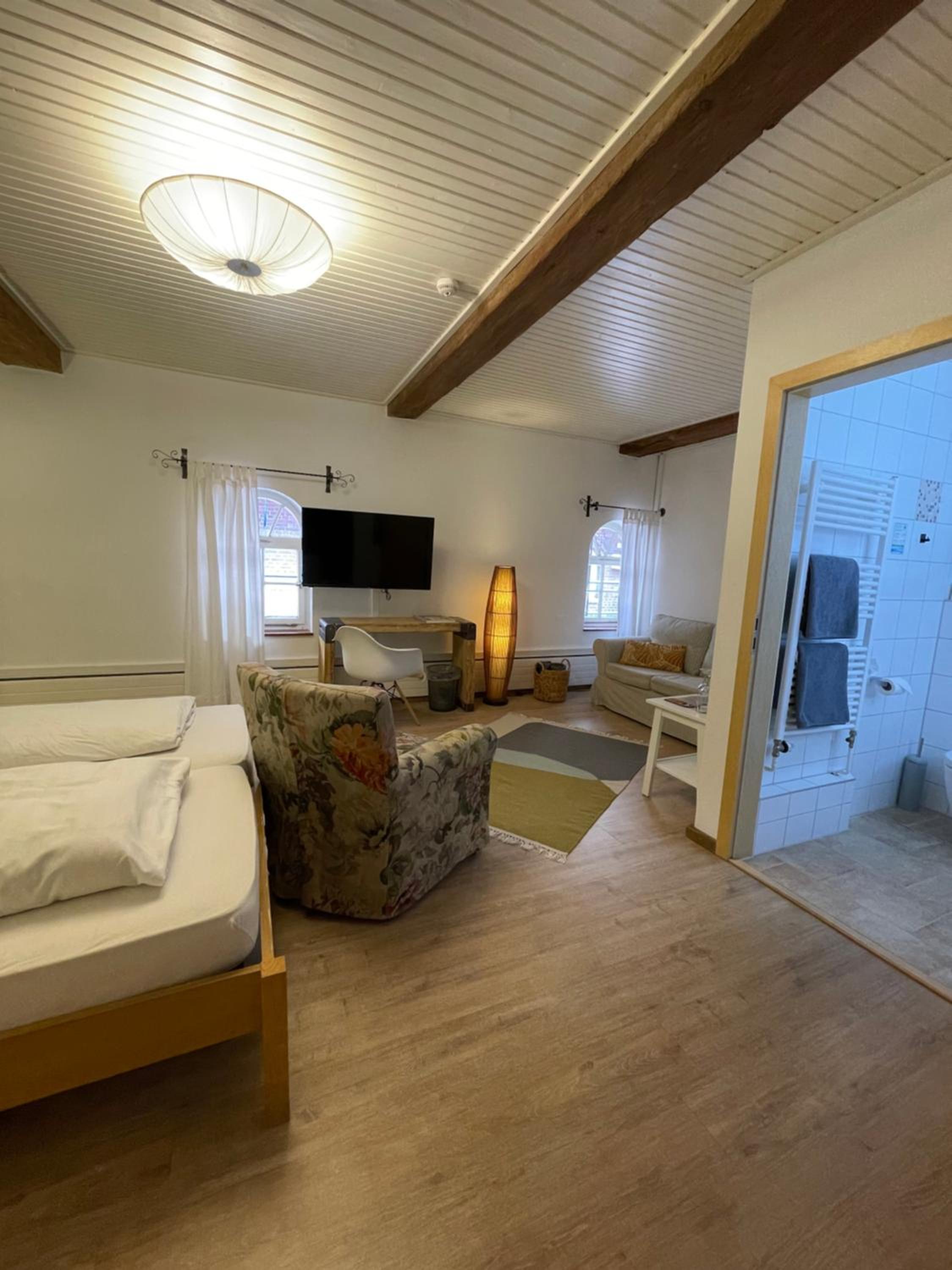 Tolles altes Landgut mit viel Liebe restauriert. Großes Zimmer mit bequemem Bett und sehr neuem Bad. Tolle Dusche. Zugang zum Zimmer durch die Deele, die ansprechend mit alten Möbeln als großes Wohnzimmer eingerichtet war. Schöner Garten, der zum Verweilen einlädt. Sehr freundliches und hilfsbereites Personal. Obwohl die Küche eigentlich geschlossen war, hat man uns noch Bärlauchsuppe, Flammkuchen, Matjes Hausfrauenart und Ofenkartoffeln angeboten. Das Frühstücksbuffet war gut. Die zum Teil nicht so positiven Kommentare von früheren Gästen, können wir nicht nachvollziehen.