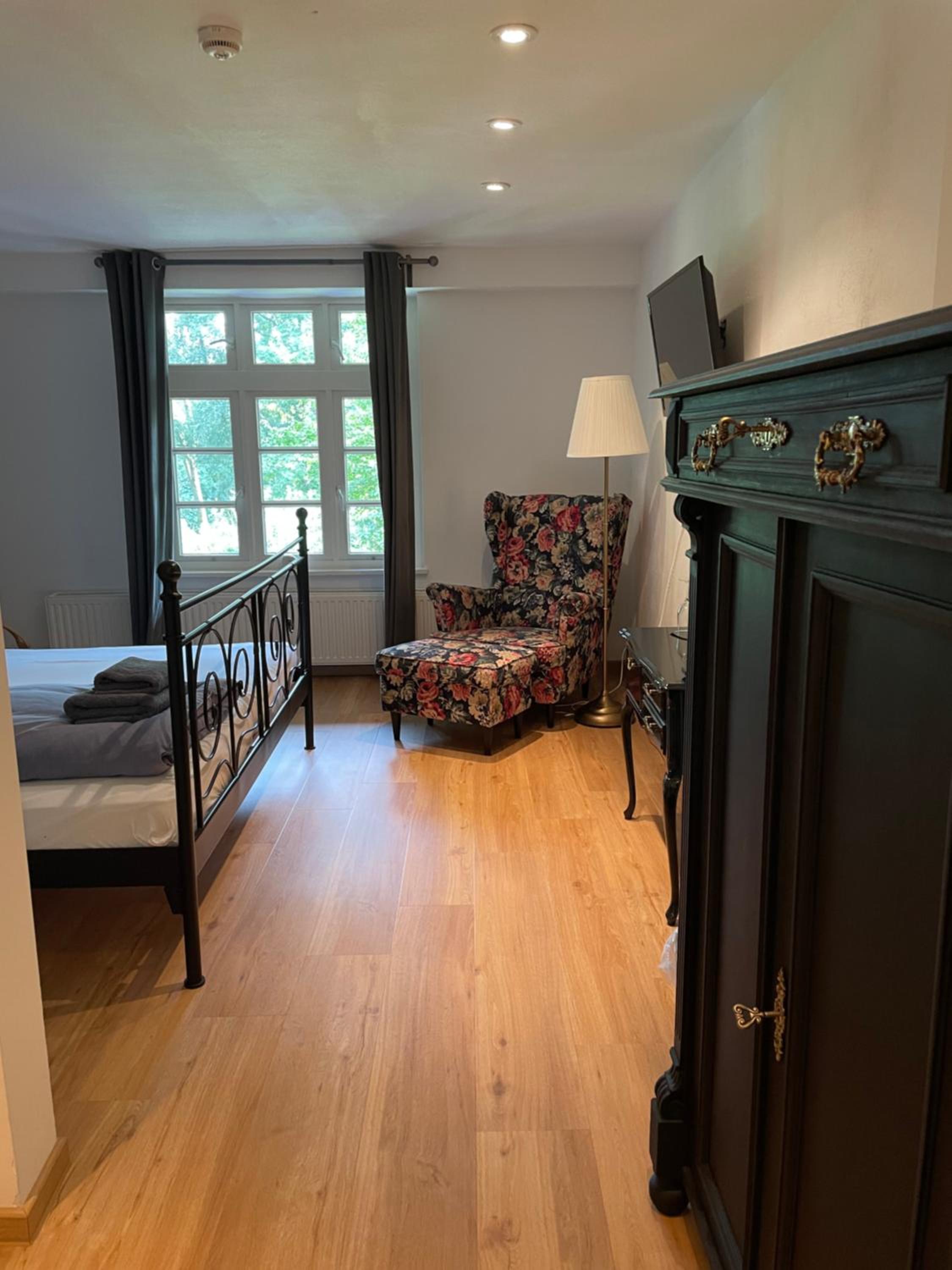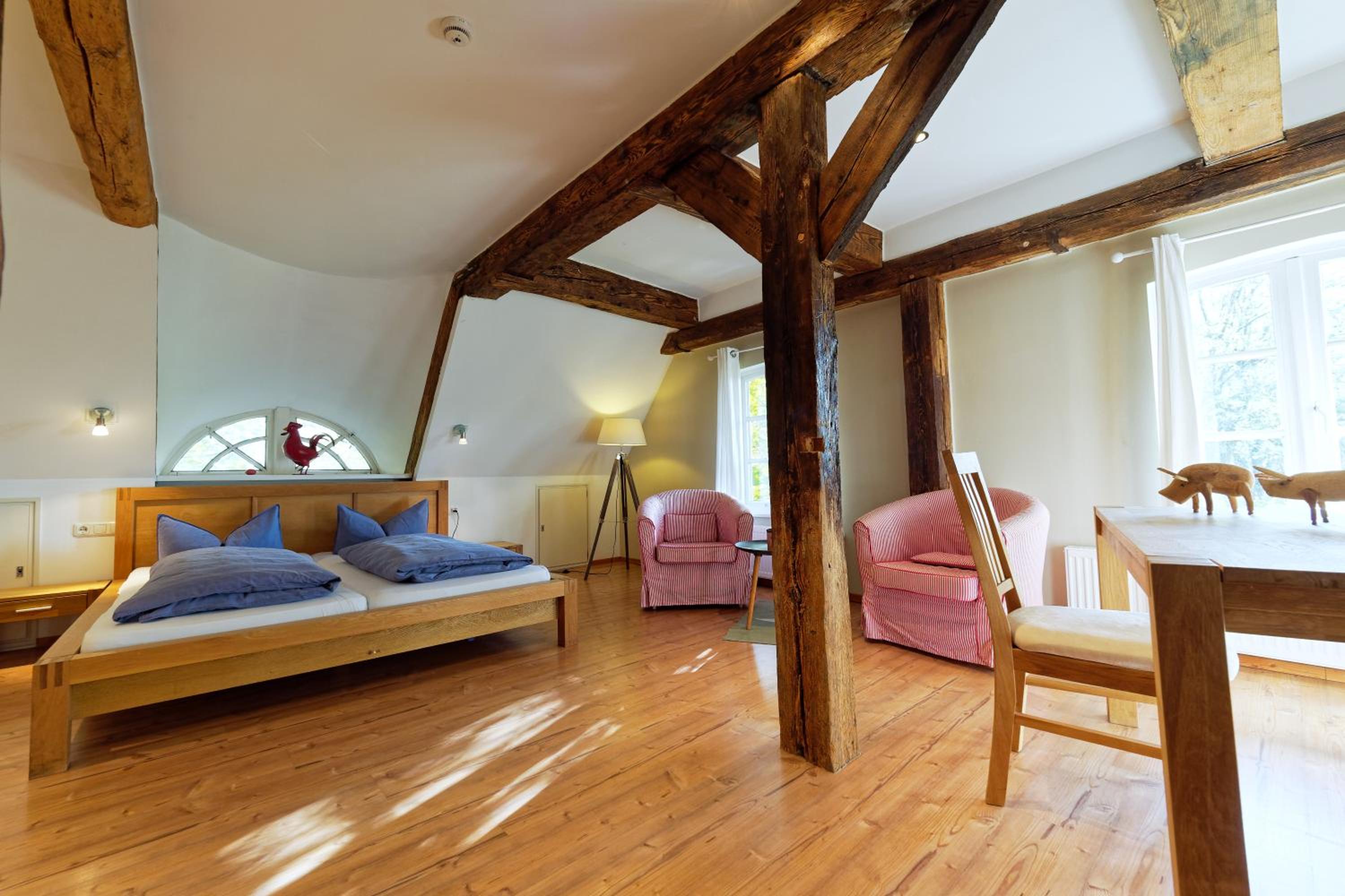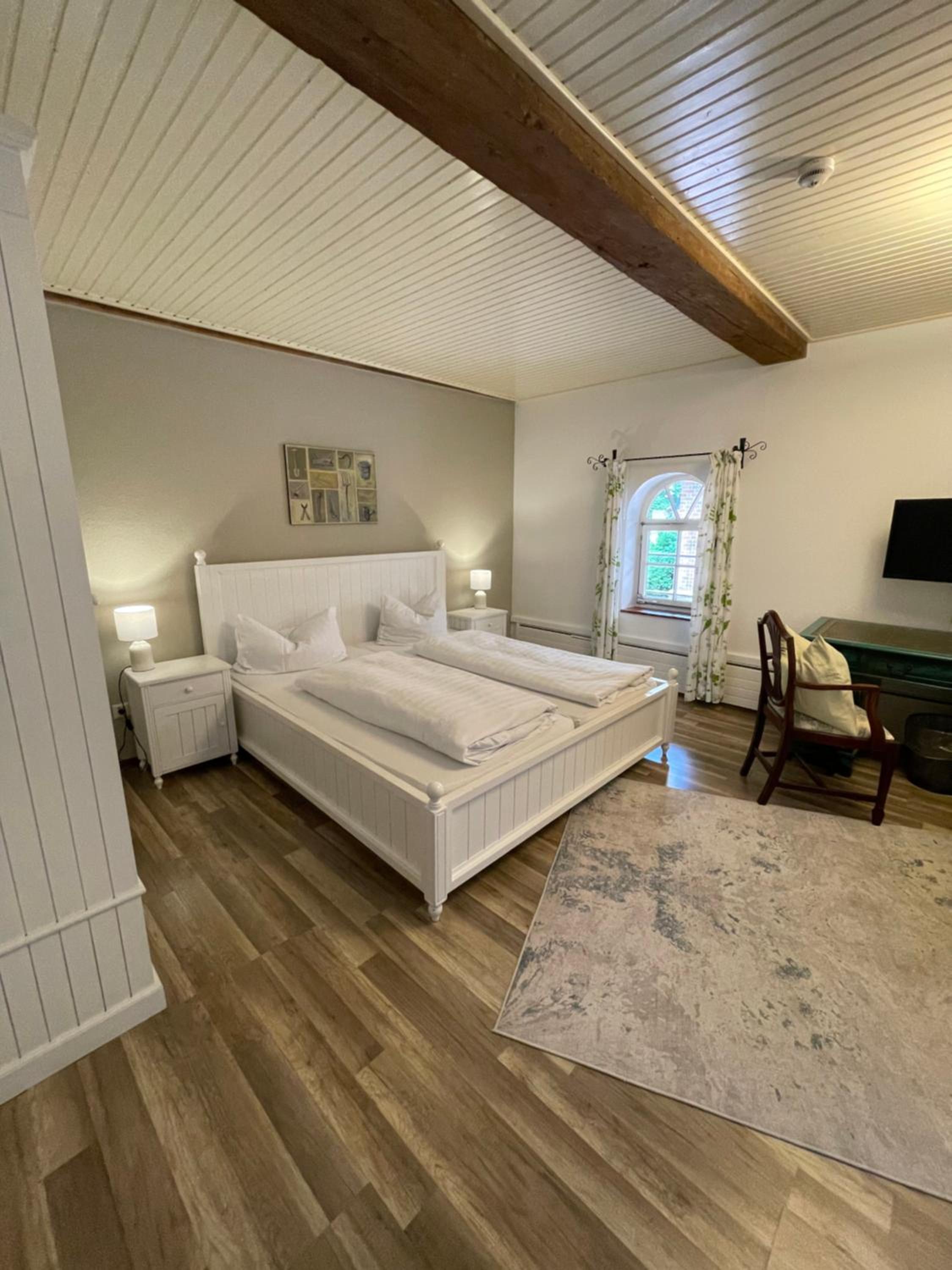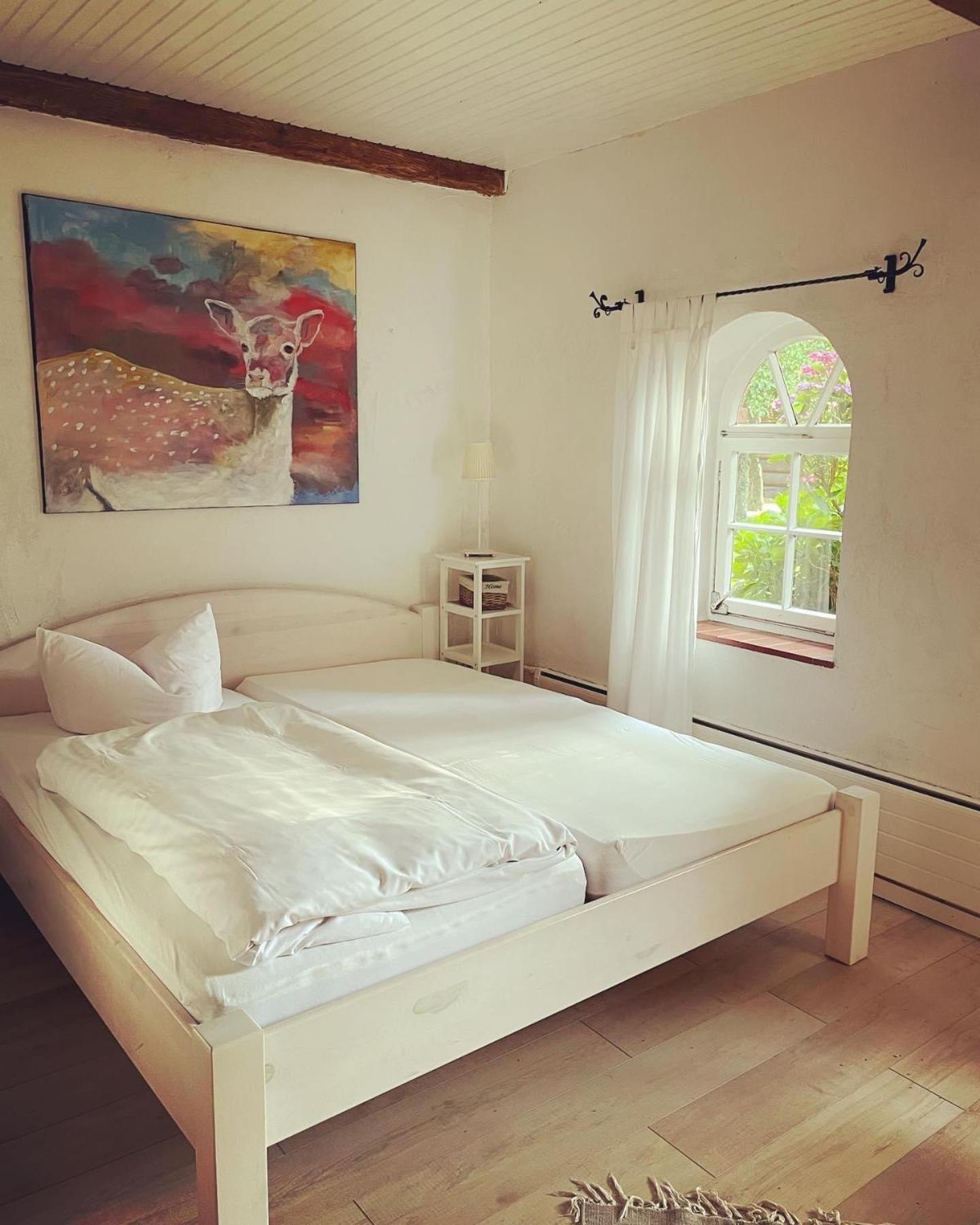 Tolles altes Landgut mit viel Liebe restauriert. Großes Zimmer mit bequemem Bett und sehr neuem Bad. Tolle Dusche. Zugang zum Zimmer durch die Deele, die ansprechend mit alten Möbeln als großes Wohnzimmer eingerichtet war. Schöner Garten, der zum Verweilen einlädt. Sehr freundliches und hilfsbereites Personal. Obwohl die Küche eigentlich geschlossen war, hat man uns noch Bärlauchsuppe, Flammkuchen, Matjes Hausfrauenart und Ofenkartoffeln angeboten. Das Frühstücksbuffet war gut. Die zum Teil nicht so positiven Kommentare von früheren Gästen, können wir nicht nachvollziehen.