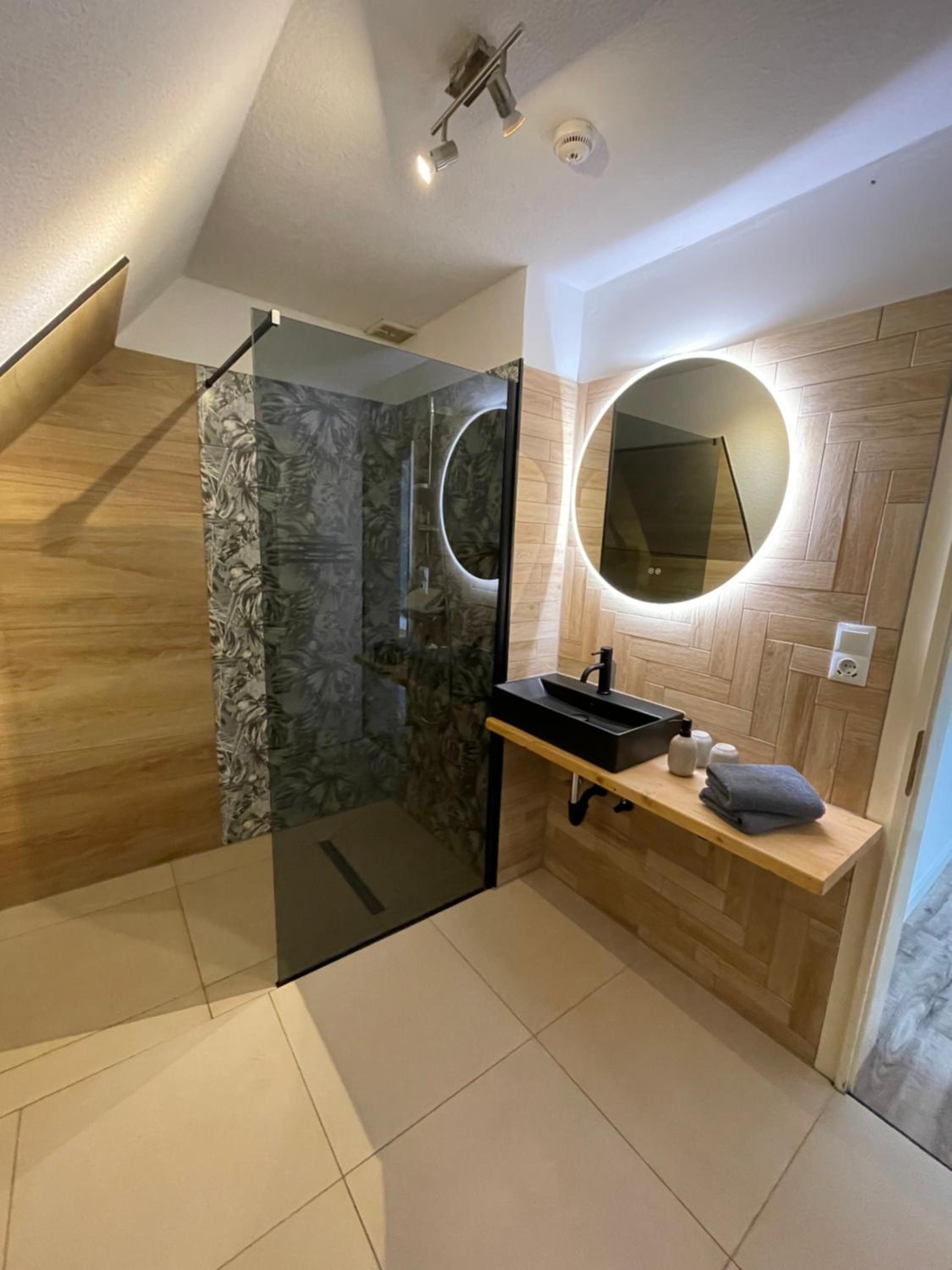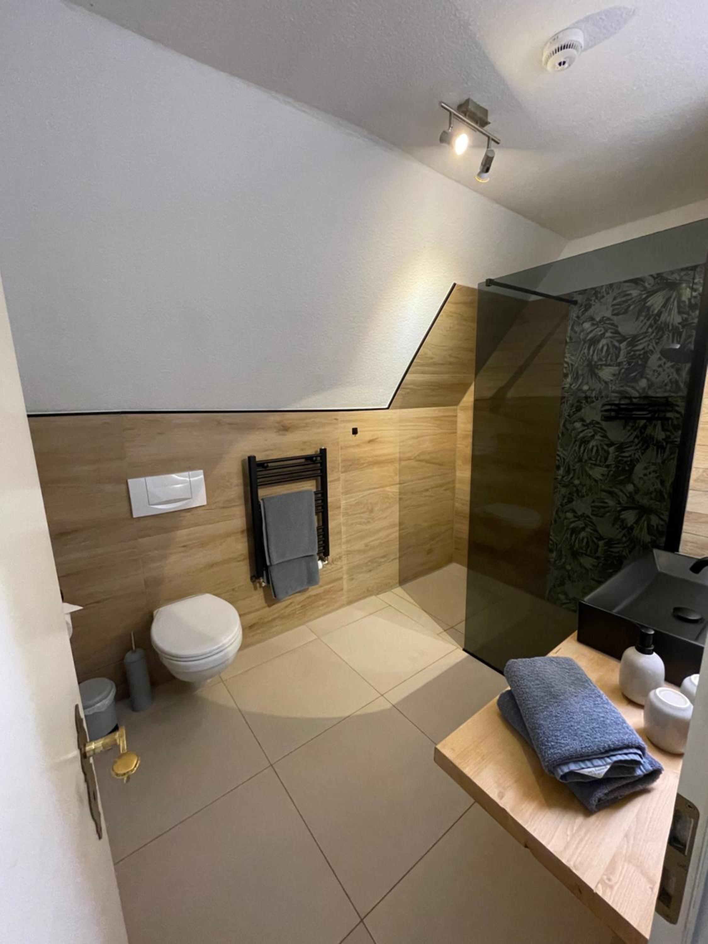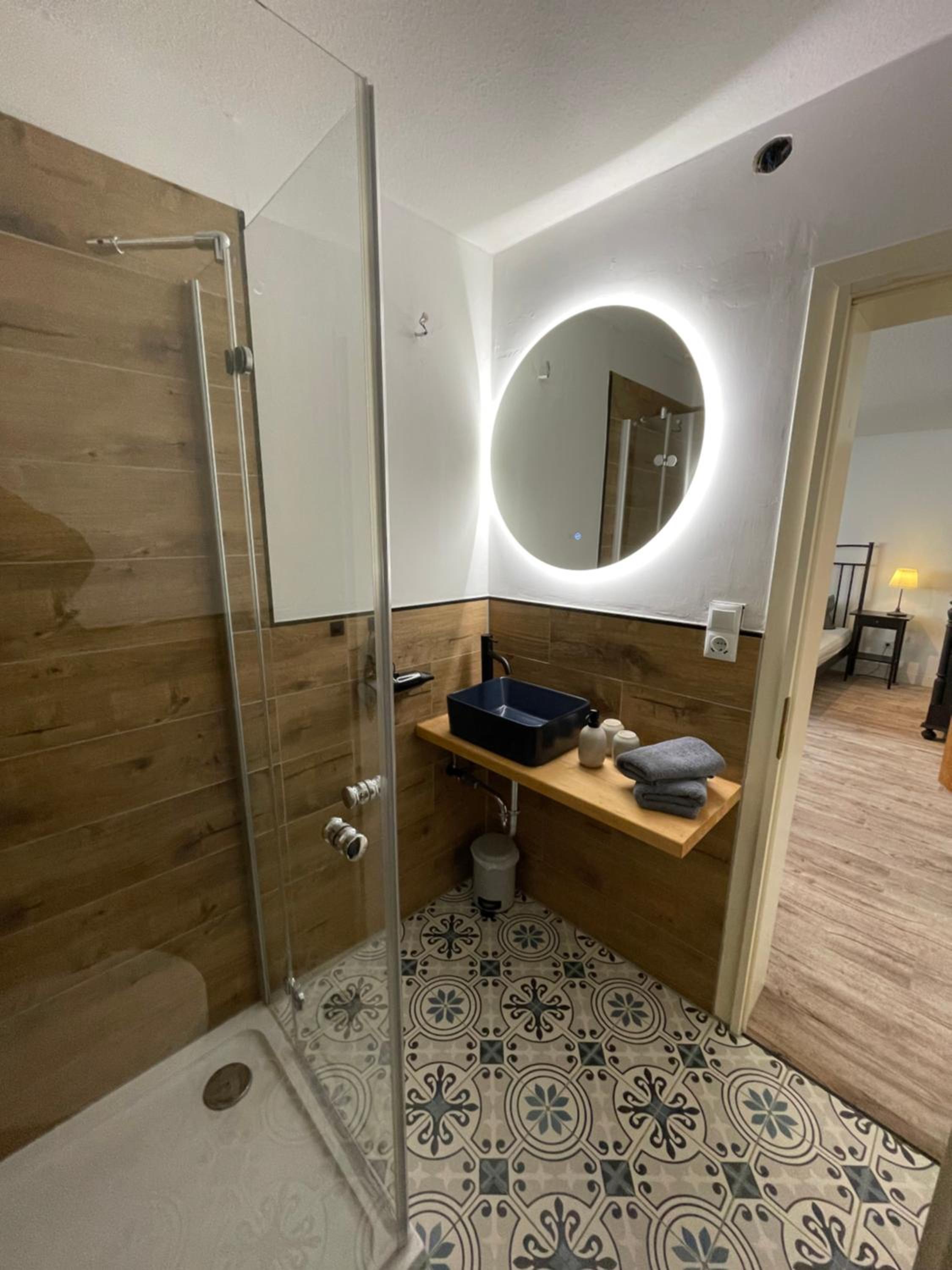 Der Spiegel im Bad hängt für kleine Menschen zu hoch.