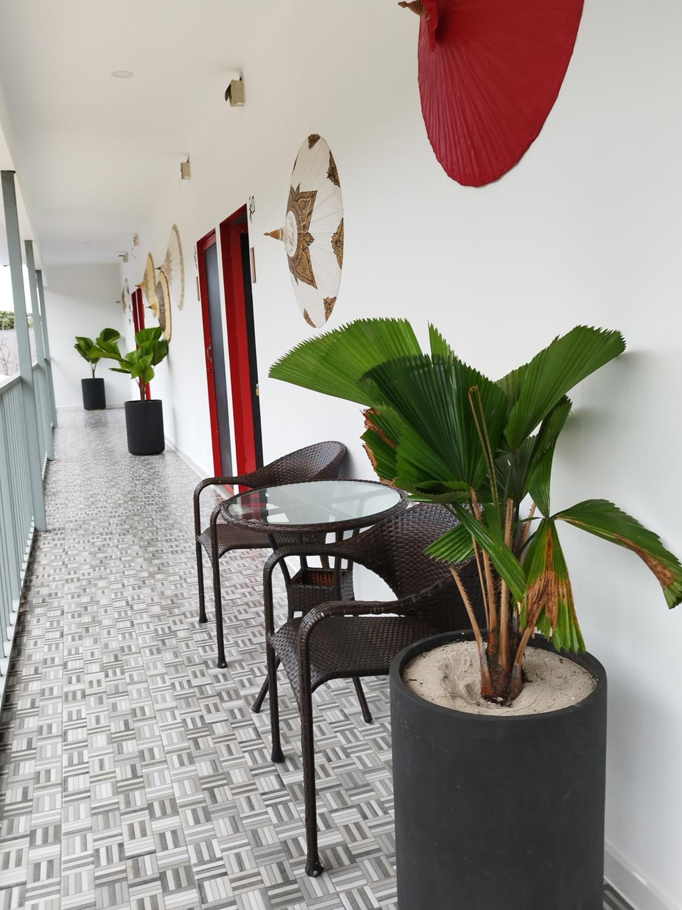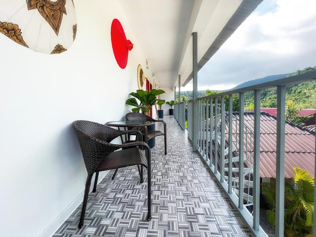 The resort was wonderful, loved the Japanese decor and calmness of the resort.Our room was excellent with a lovely view, but if you are expecting an actual balcony with chairs it's not.Its sliding glass doors and there is the railing.She said it was a French balcony.You can open them up and get a nice breeze.There is a lovely terrace when you walk into the room with a table and chairs.The BBQ was very good, breakfast was included.Staff are attentative and friendly..Thank you for having us 😊