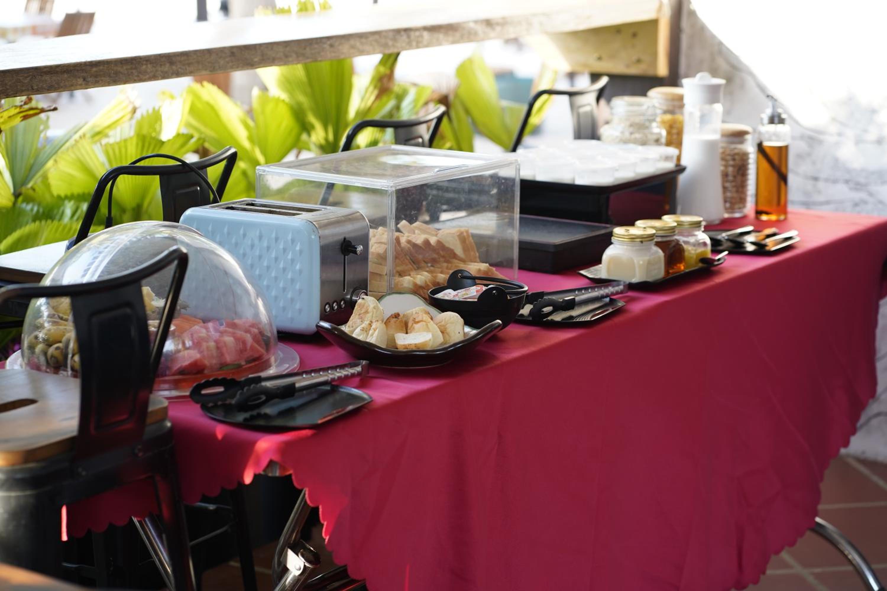 Extremely noisy, the hotel is right next to the main road, motorcycles going all day and dogs are barking during the night. Dogs all over on the street and beach. No sound proof windows, feels like sleeping outside. Tiny small beach, sunbeds are next to each other and most of the guests are smoking. We could not stay at the beach for this reason at all.