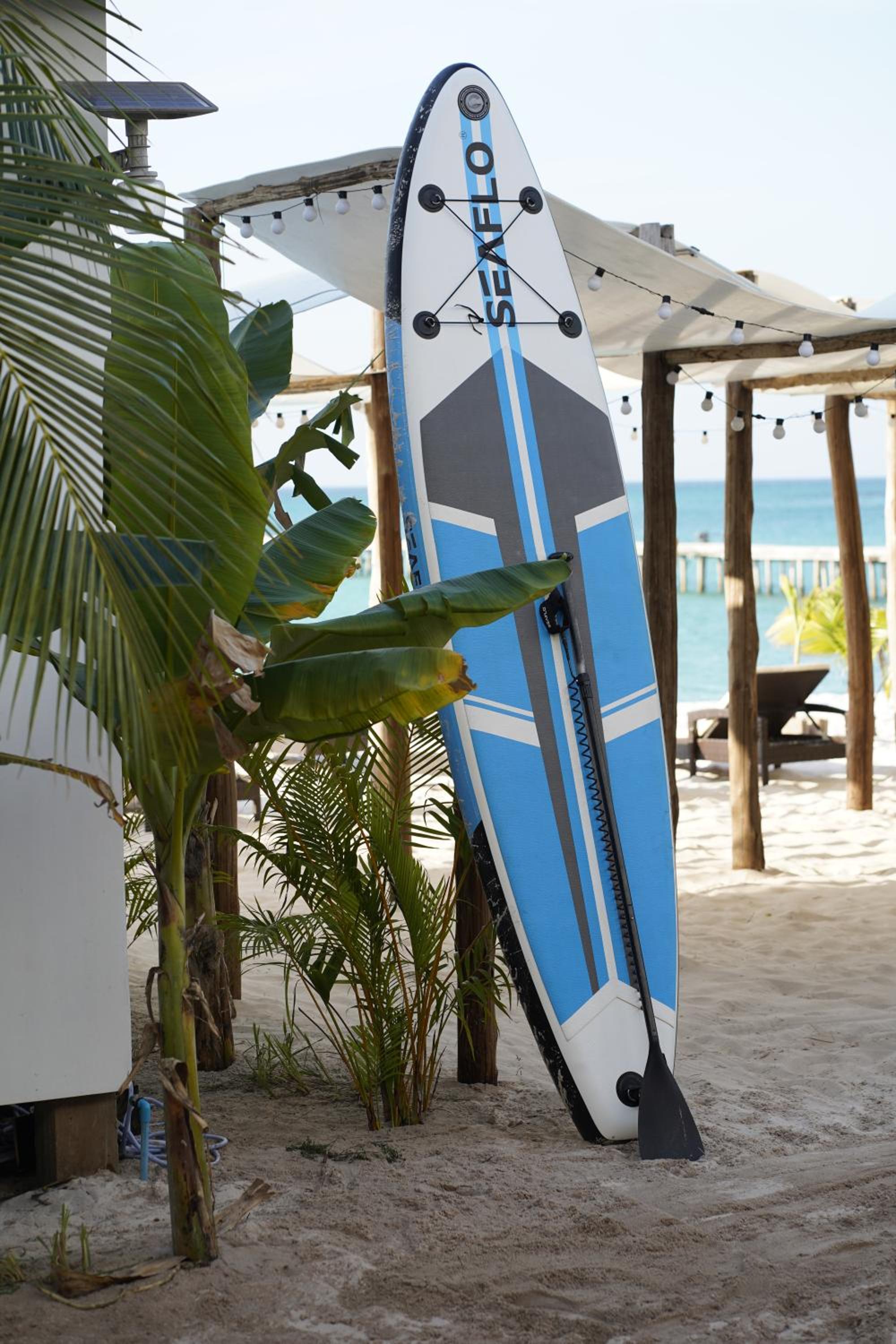 Amazing location with their own beachfront and lounge chairs. Free paddle boarding and snorkeling gear. They provide refillable glass bottles for water instead of plastic and you can refill it at reception.