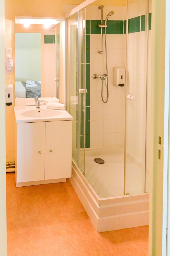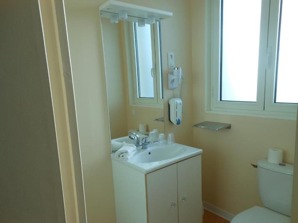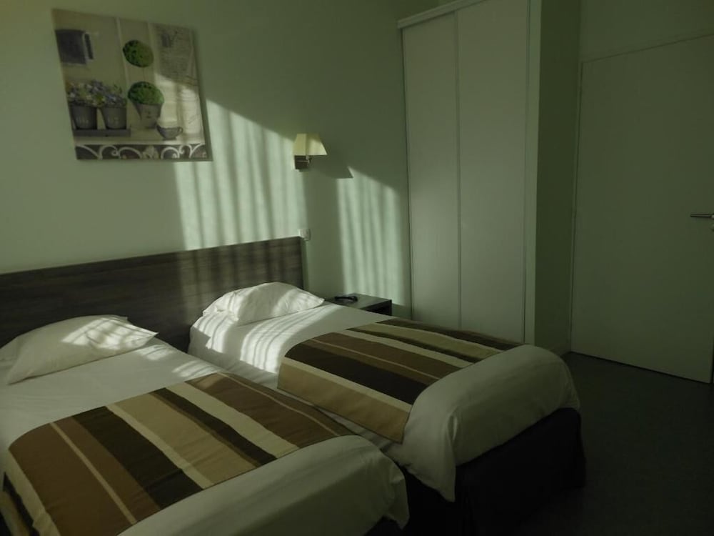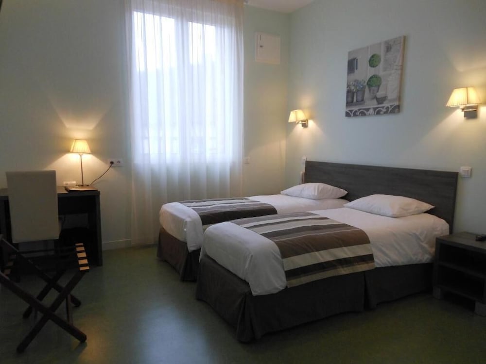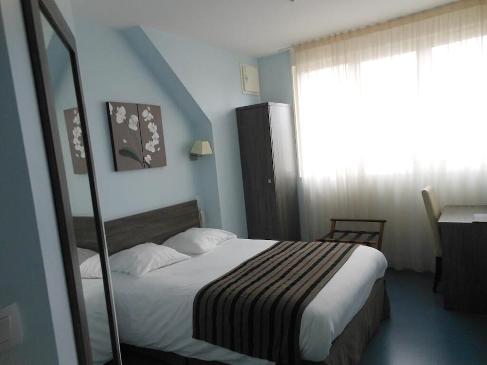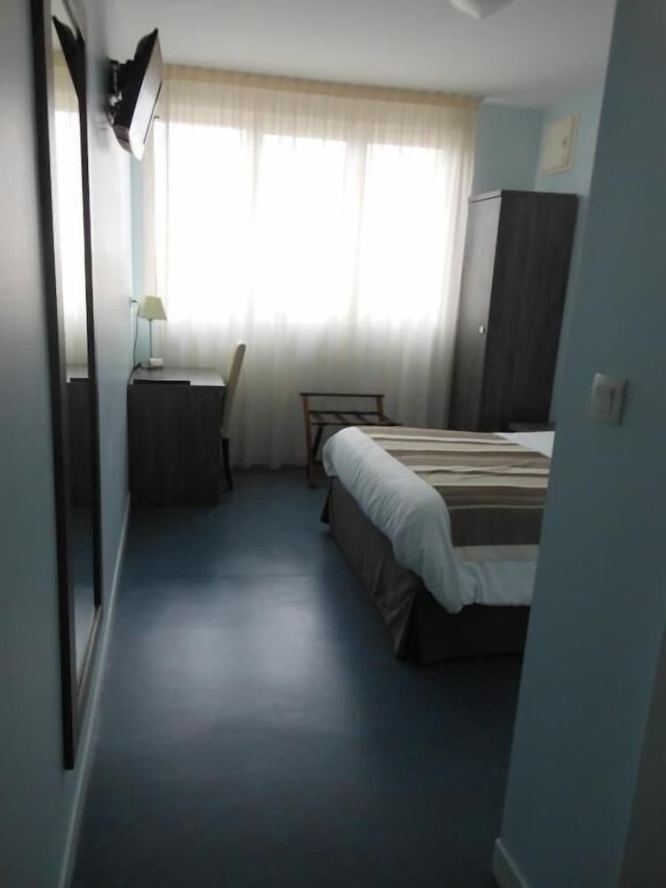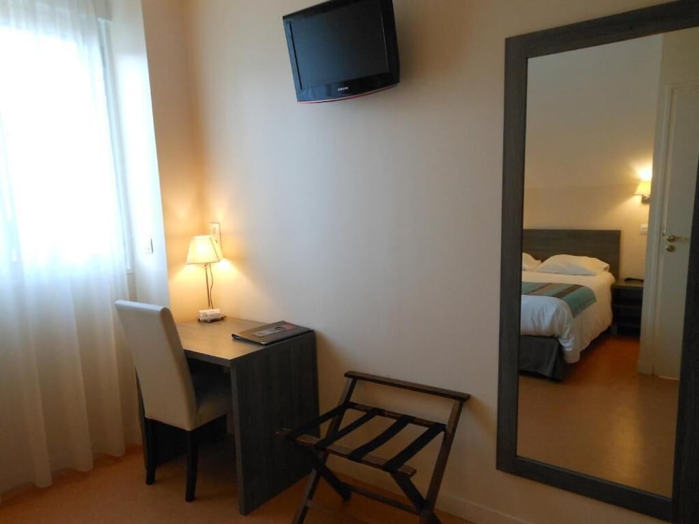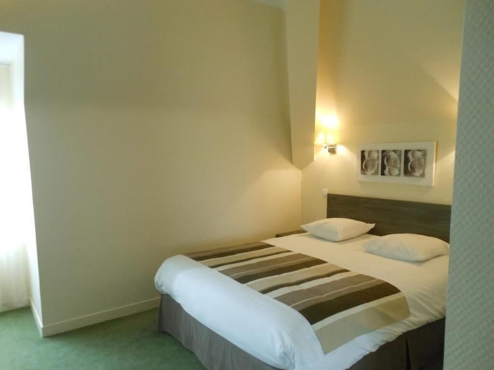 Hötel en plein centre ville. Parking accessible et fermé. Sentiment de sécurité. Accueil agréable. Chambre spacieuse, équipée comme il faut avec climatisation. Même si tout n'est pas neuf, c'est entretenu et fonctionnel : sèche cheveux, pose valise, bouilloire, gobelets, chevat, penderie, oreillers supplémentaires. Literie confortable. Noir complet grâce aux volets roulants. Chambre propre, même si pas impeccable.