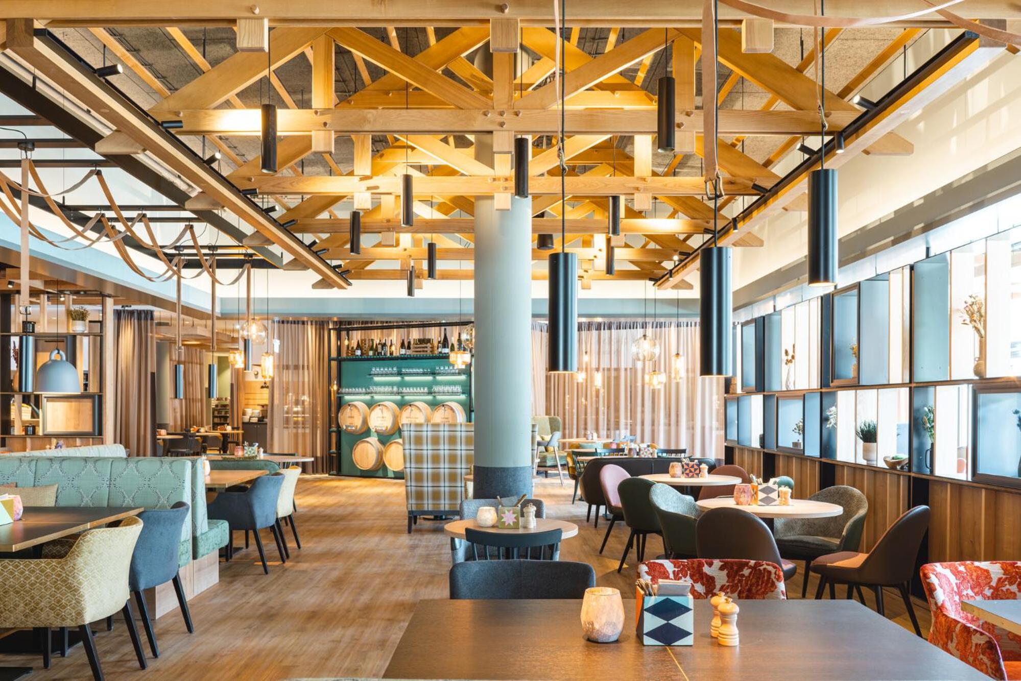 Guests can enjoy a variety of dining options including buffet breakfast with vegetarian choices. The hotel's restaurant and bar provide great places to unwind after a day of activities like hiking, skiing, and cycling.