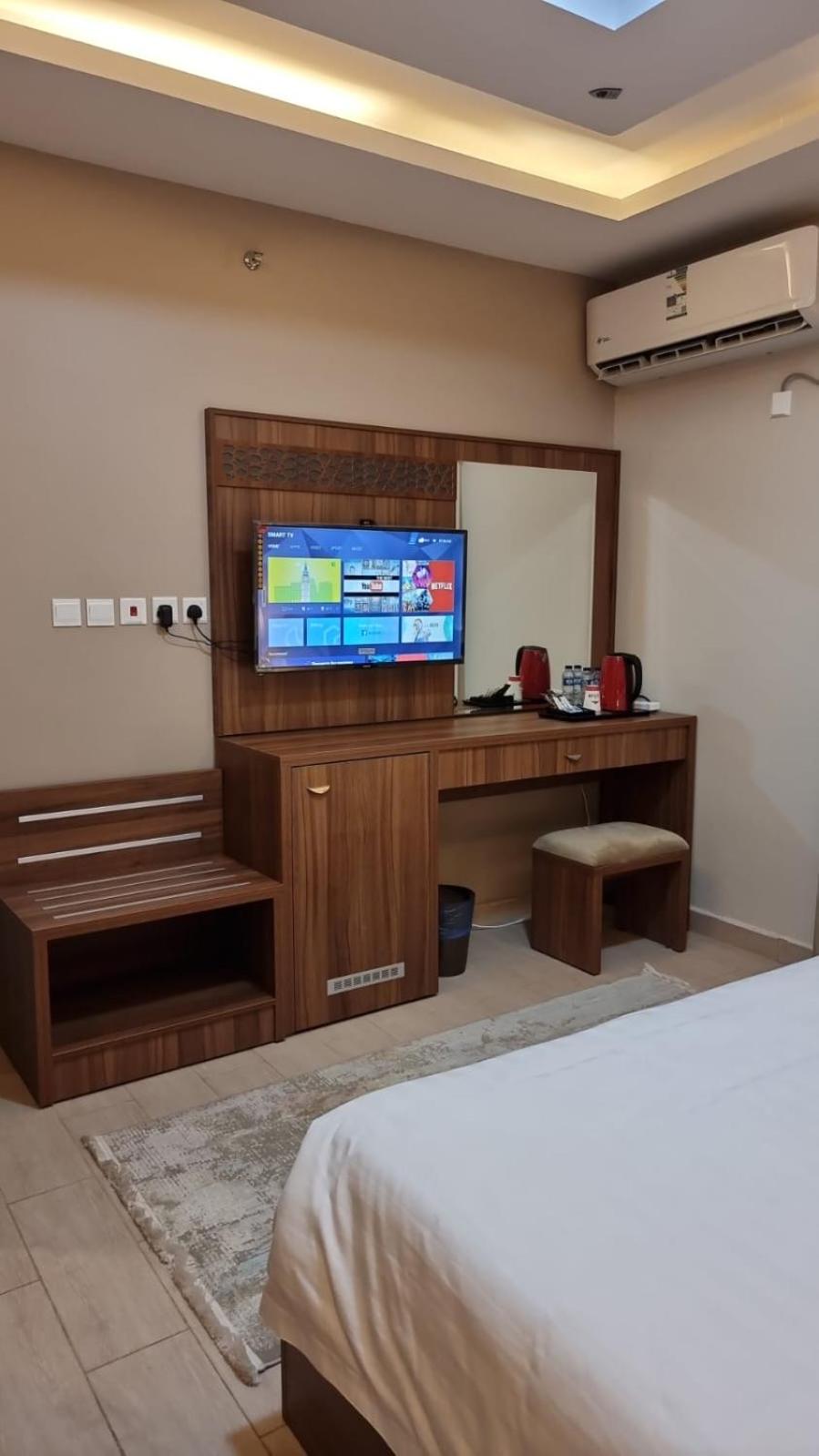 I expected a bed in a room but beyond that. A well furnished room..very clean. A sitting room with two sofa for two to three persons each, tea sett. and smart TV in each room. Super cleaned modern toilets ...buffet mentioned available in the morning. Other food can be requested from your room.