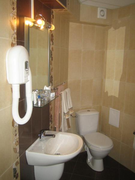 Do not expect a Hilton or a Marriott. No shower curtain, hand held shower spray only. New bathroom fixtures. No soup on dinner menu. Unsanitary electric tea kettle and coffee maker. Comfortable bed, HVAC works. Prepare to be served a massive breakfast one person could never consume. Owner does not take no for an answer. Delicious food. Tap water not recommended in Veliko Tarnovo.