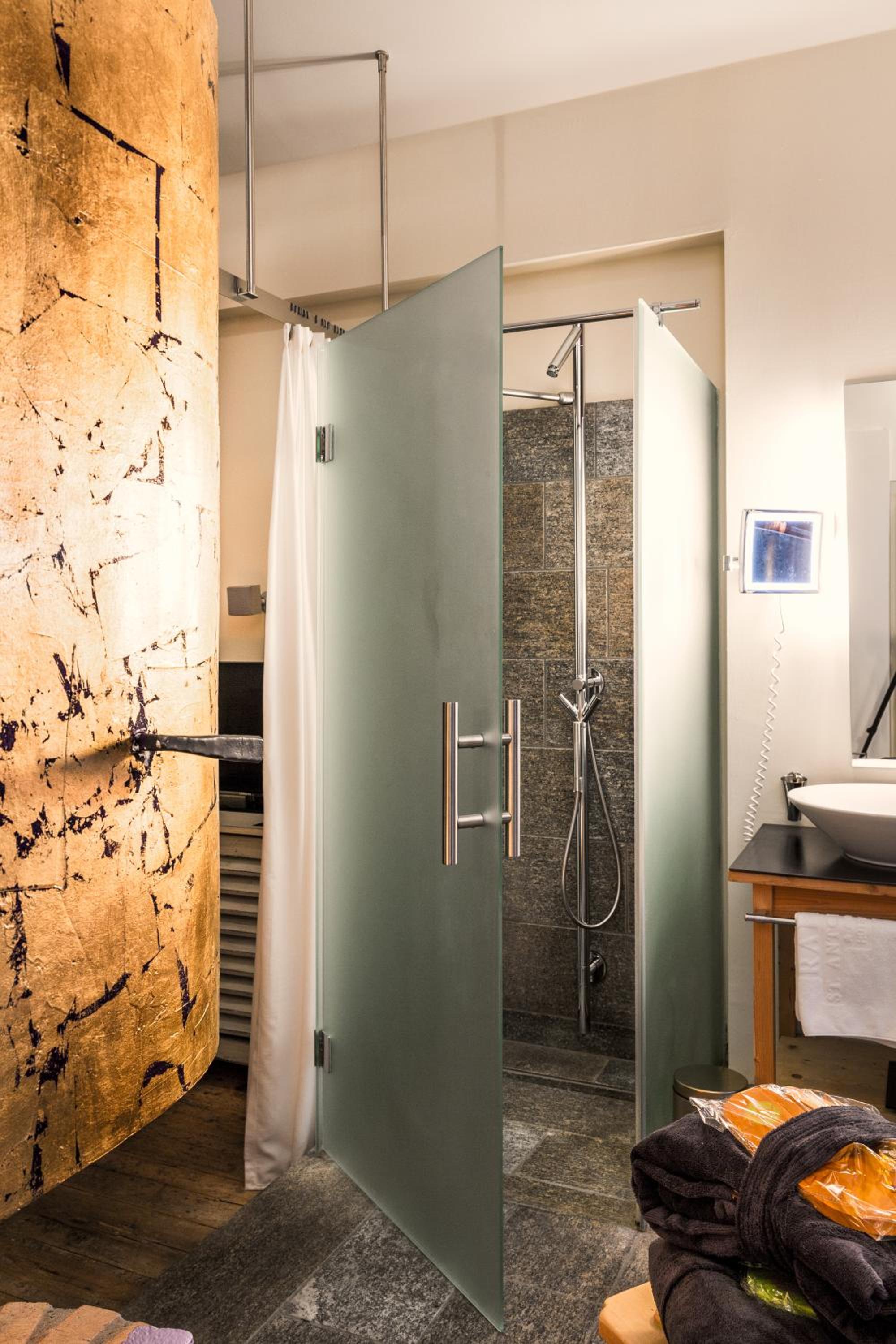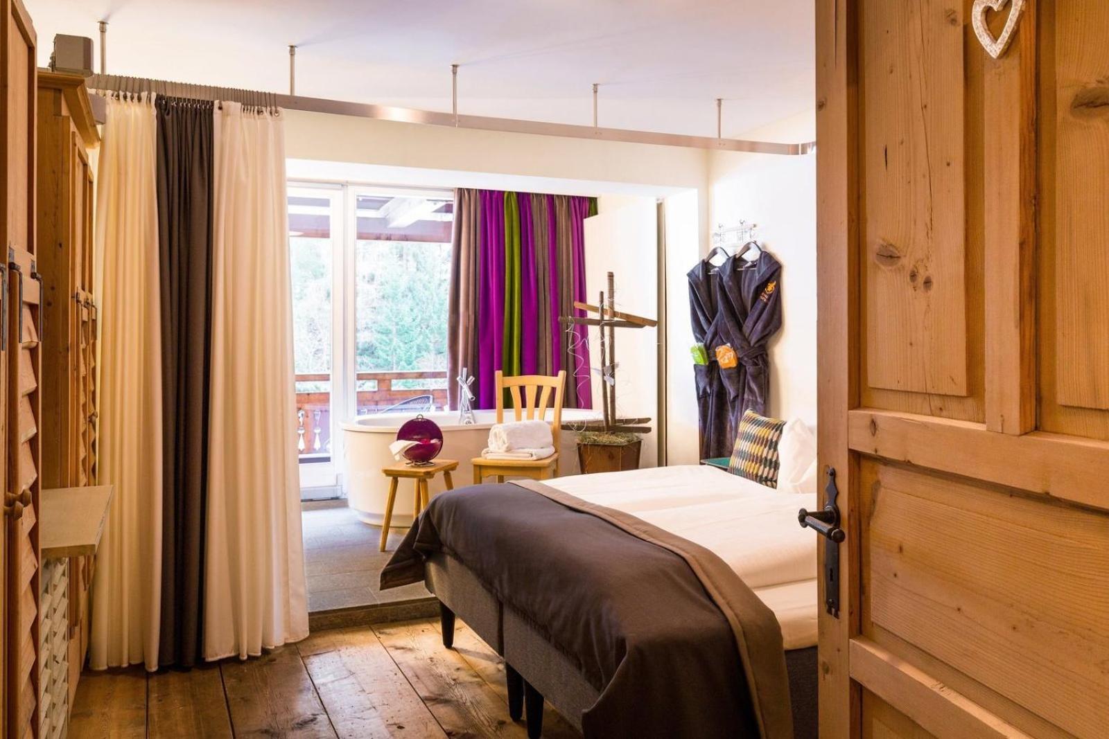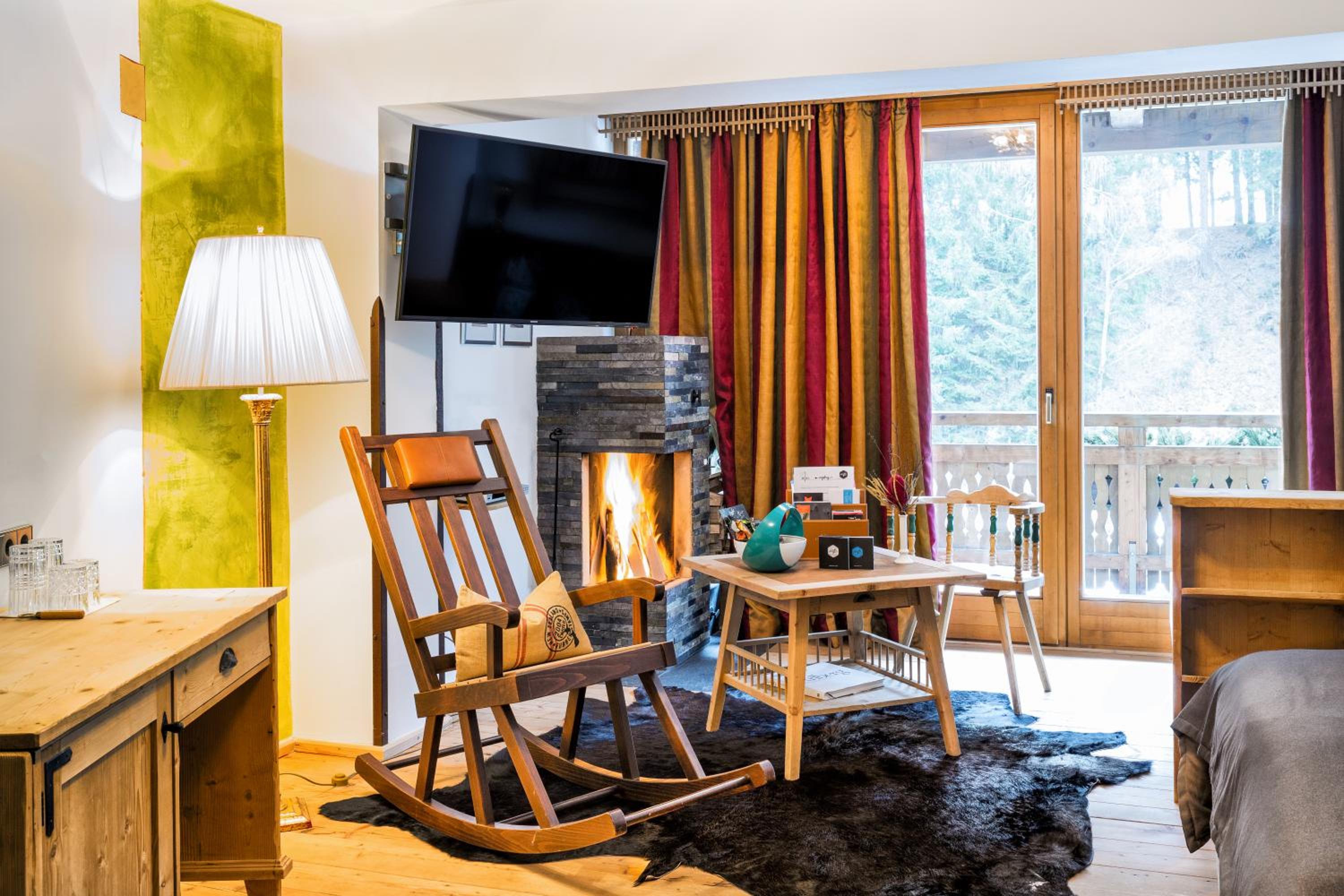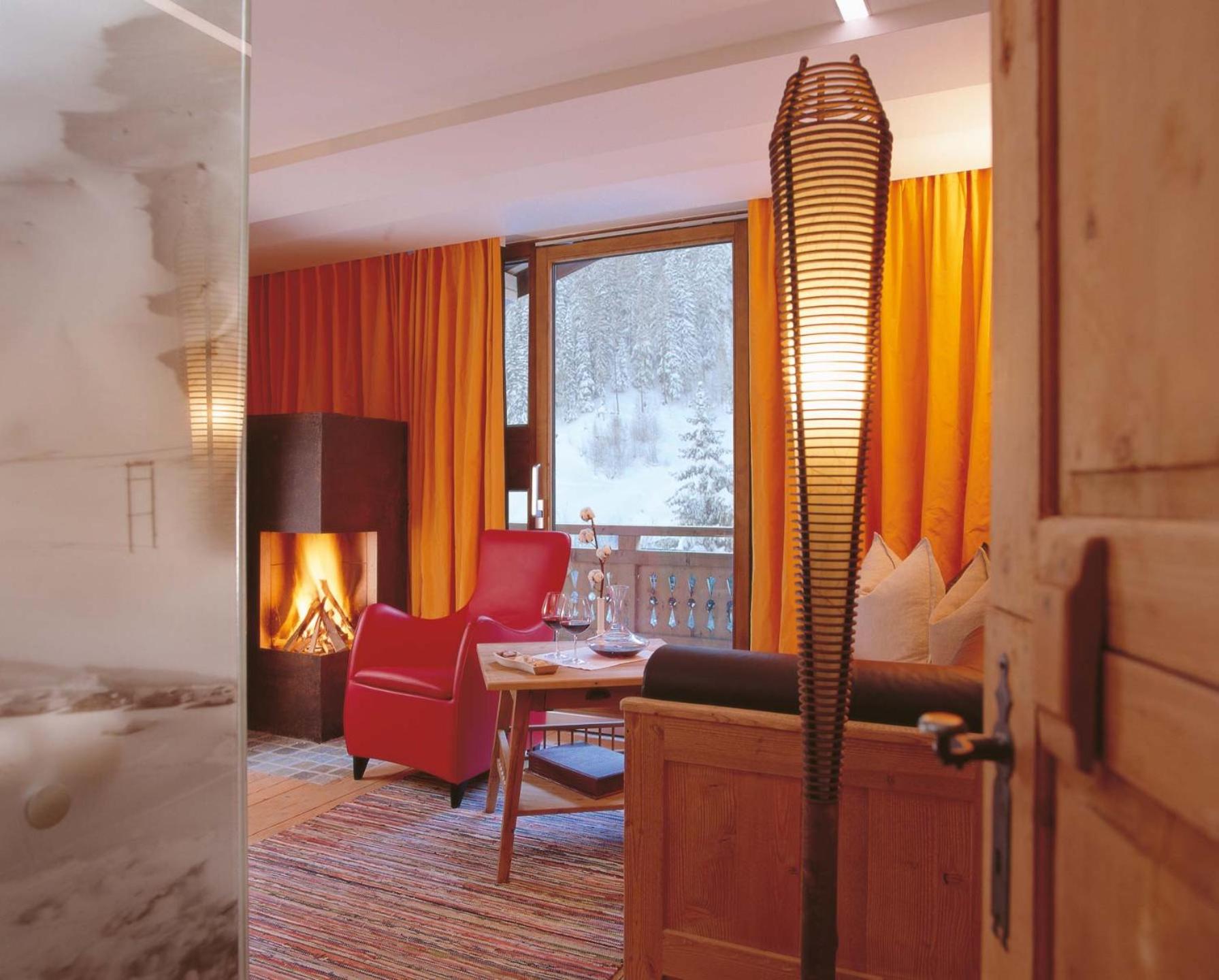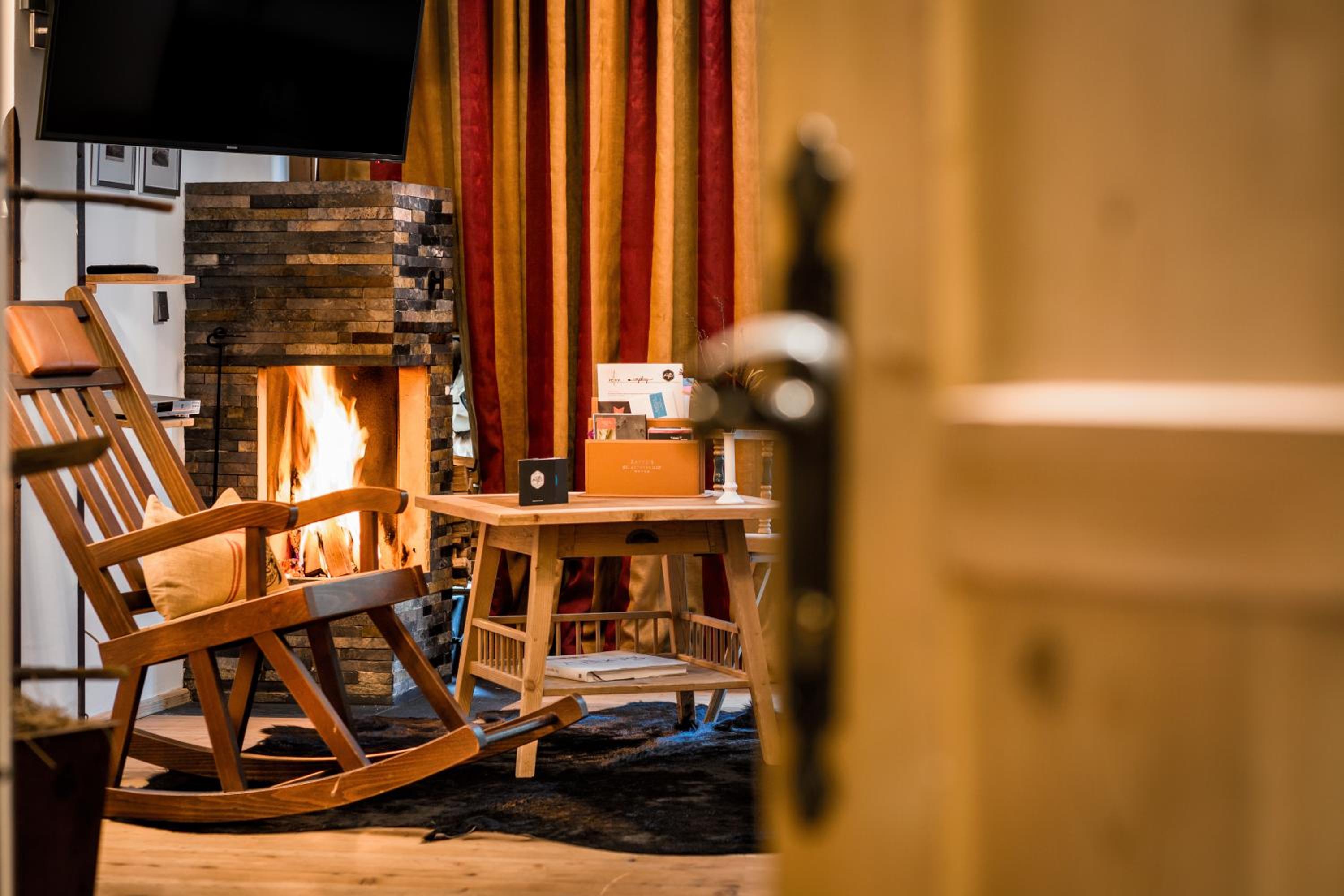 Experience the perfect blend of traditional Tyrolean style and modern amenities in the spacious rooms at Raffl’s St. Antoner Hof, featuring an open fireplace, satellite TV, and a laptop safe.