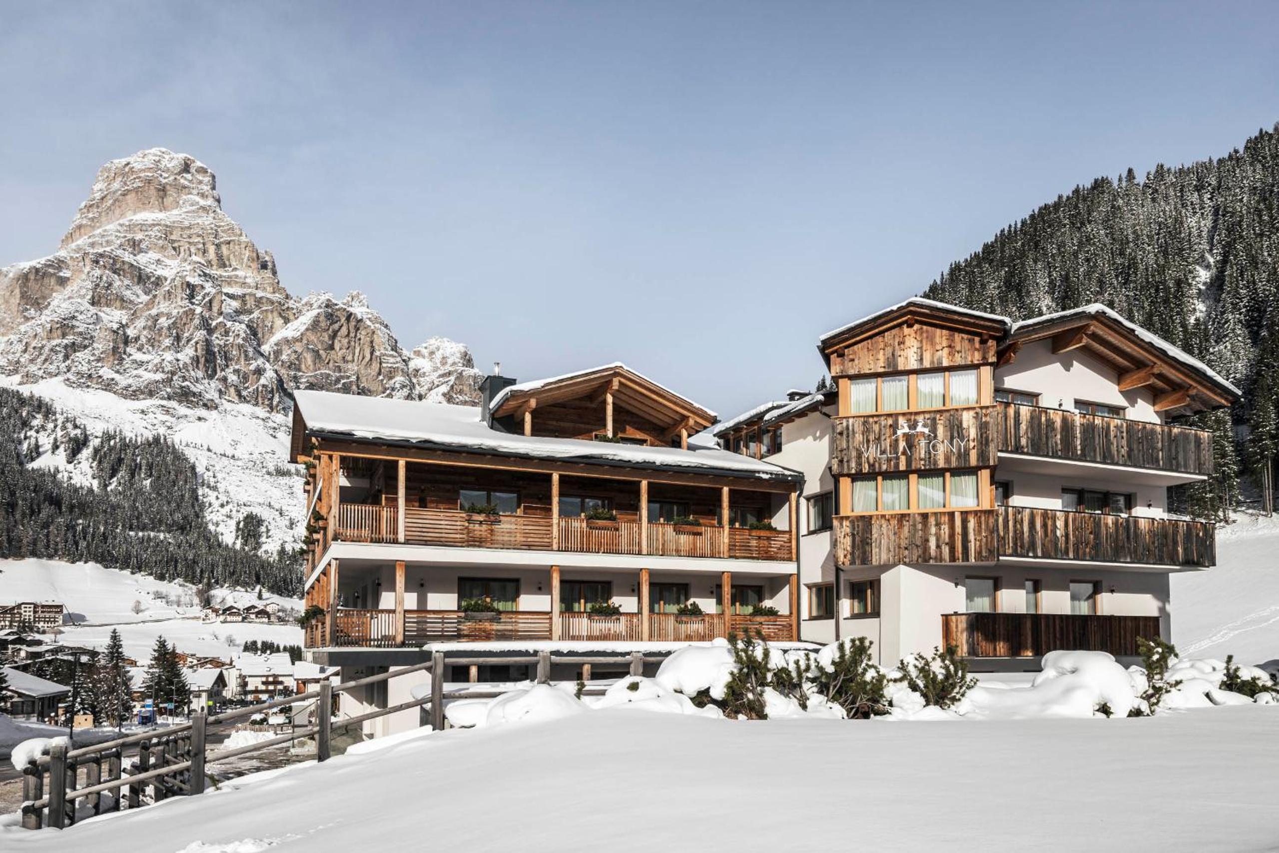 Luxurious Accommodation - Villa Tony is a small romantic hotel nestled in Corvara in Badia, just 150 meters from the nearest ski lift. Each room is equipped with modern amenities including a satellite TV and a private bathroom, ensuring a comfortable stay for all guests.