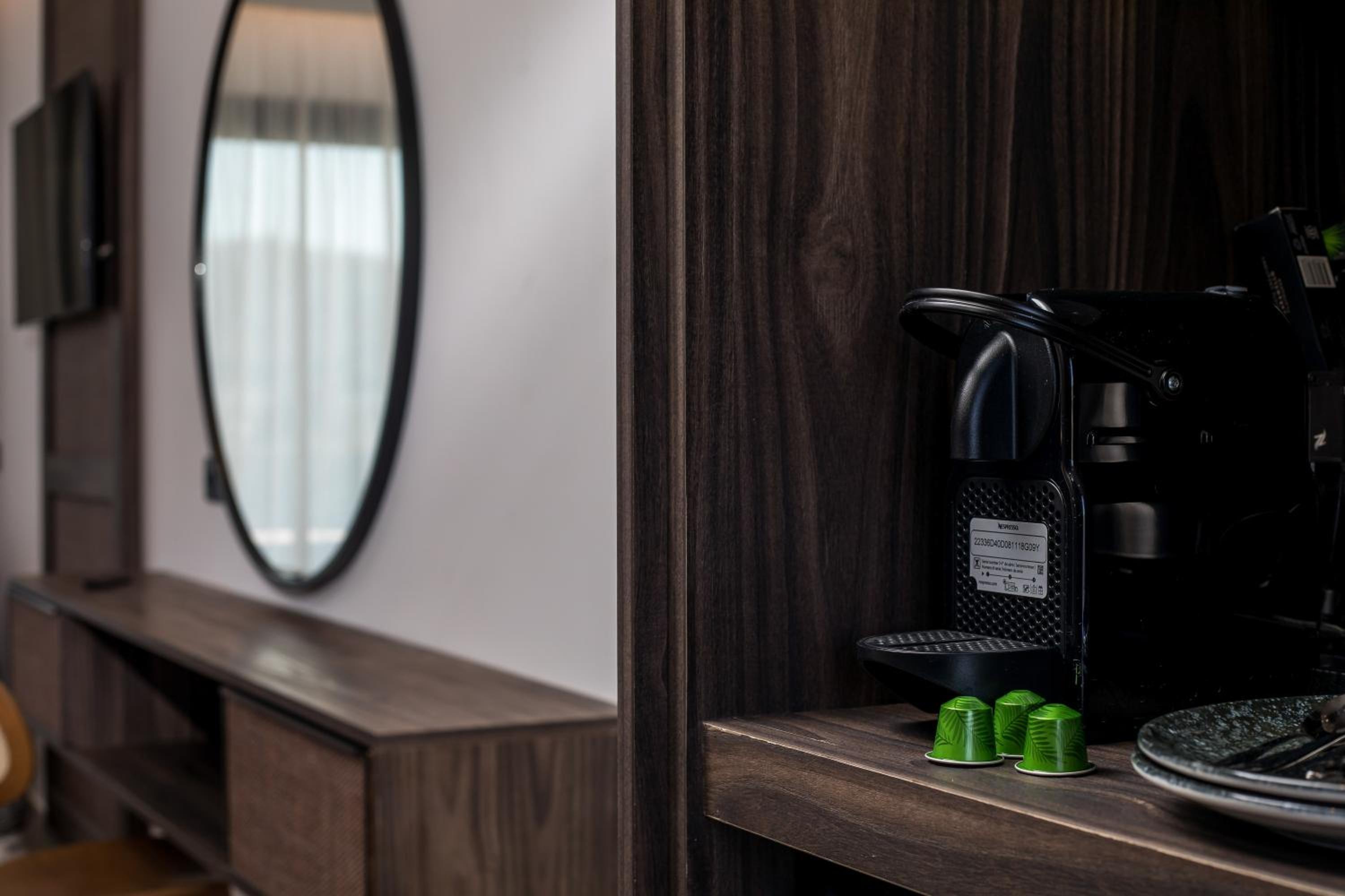 We took the room with the Hot tub. Very clean and comfortable. The shower was very modern looking, very clean. In the shower - hot water all of the time. There is a safe, and enough storage room. There is a coffee machine with capsules refill - very nice.