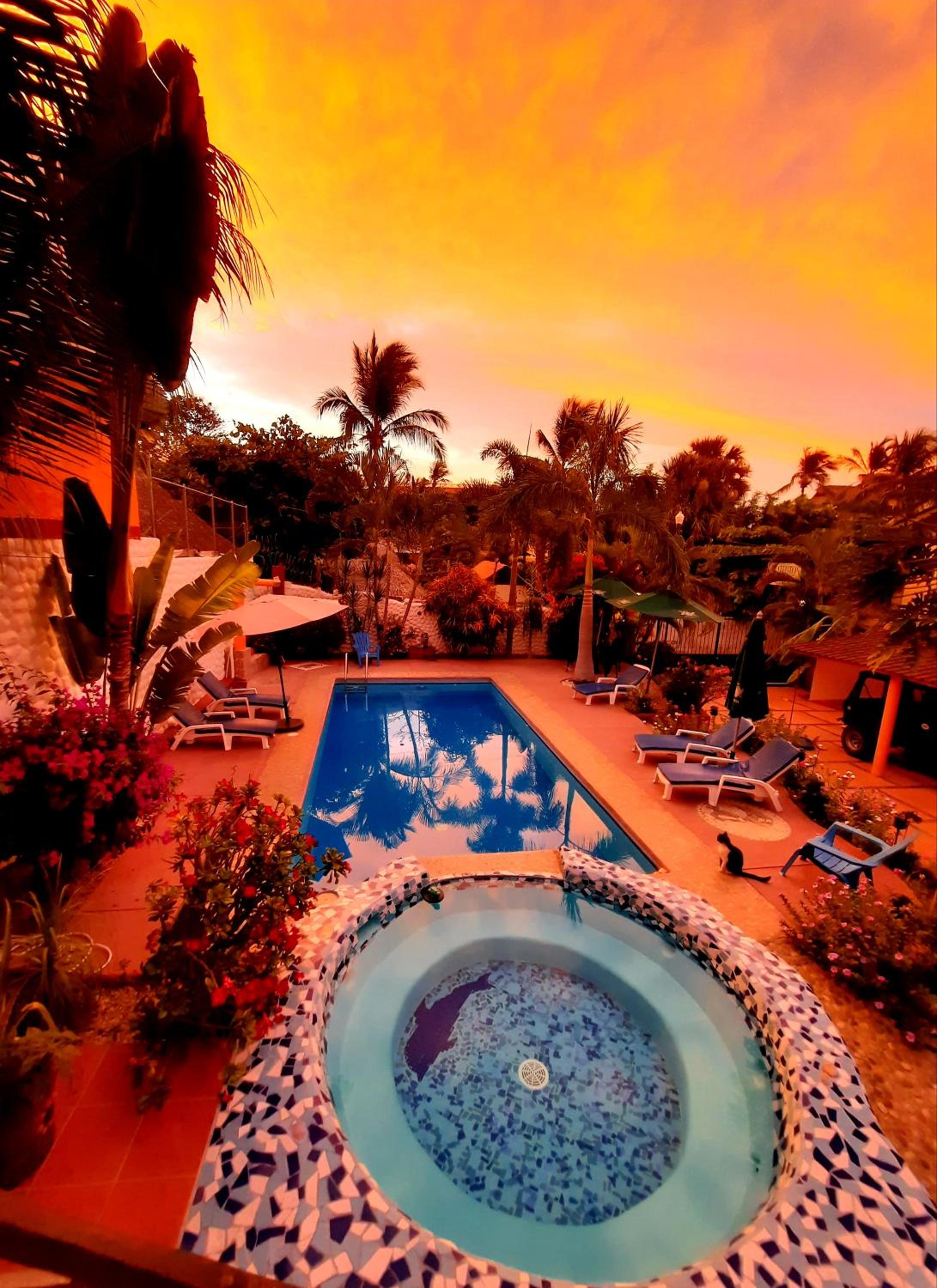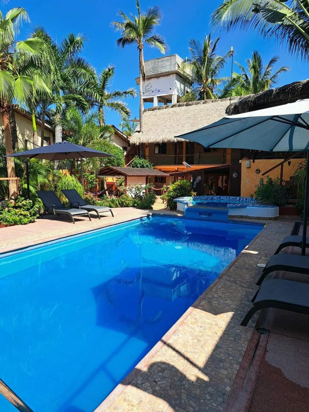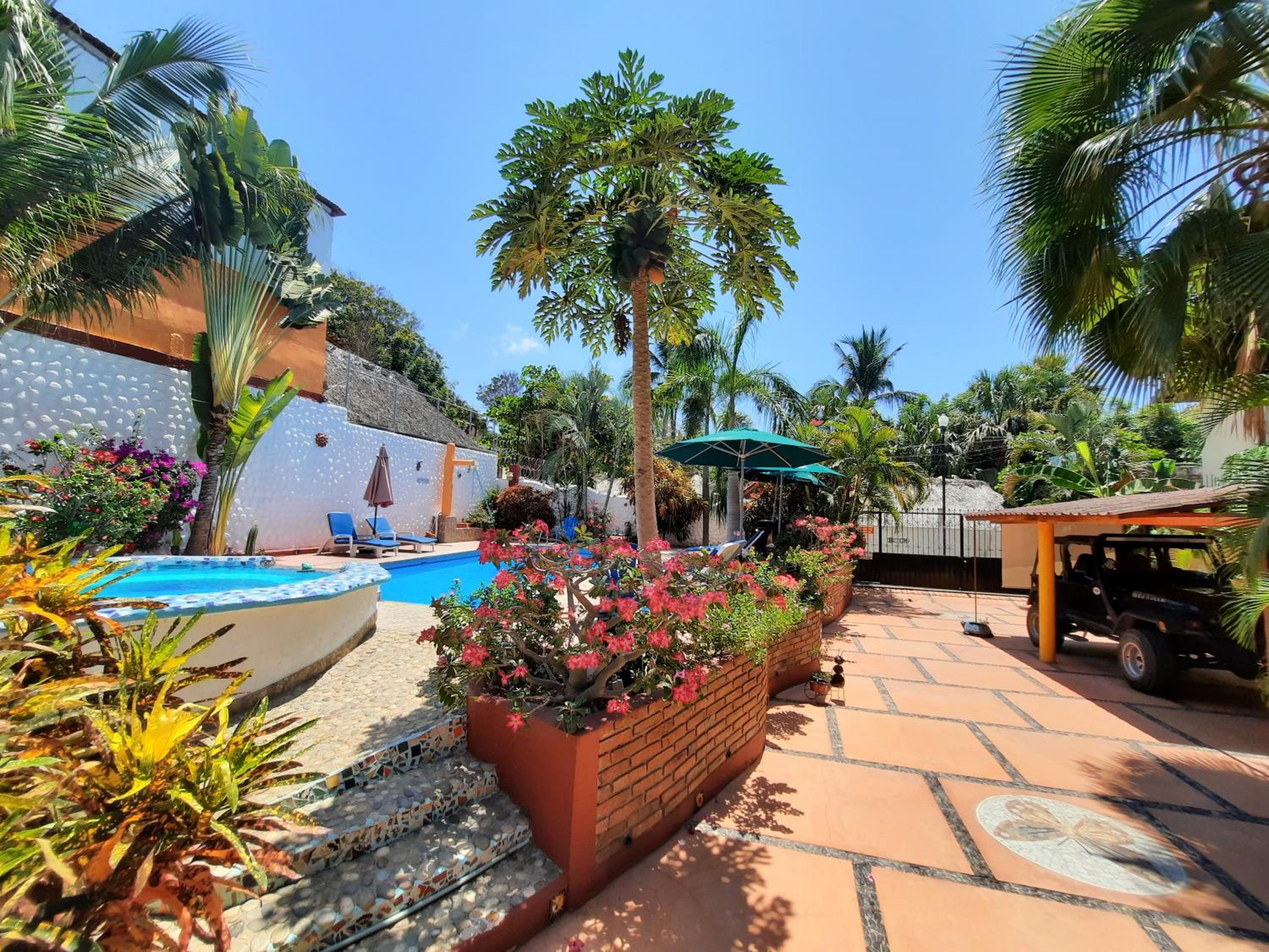 Hotelito Swiss Oasis offers a tranquil escape surrounded by lush tropical gardens just steps away from Playa Zicatela Beach.