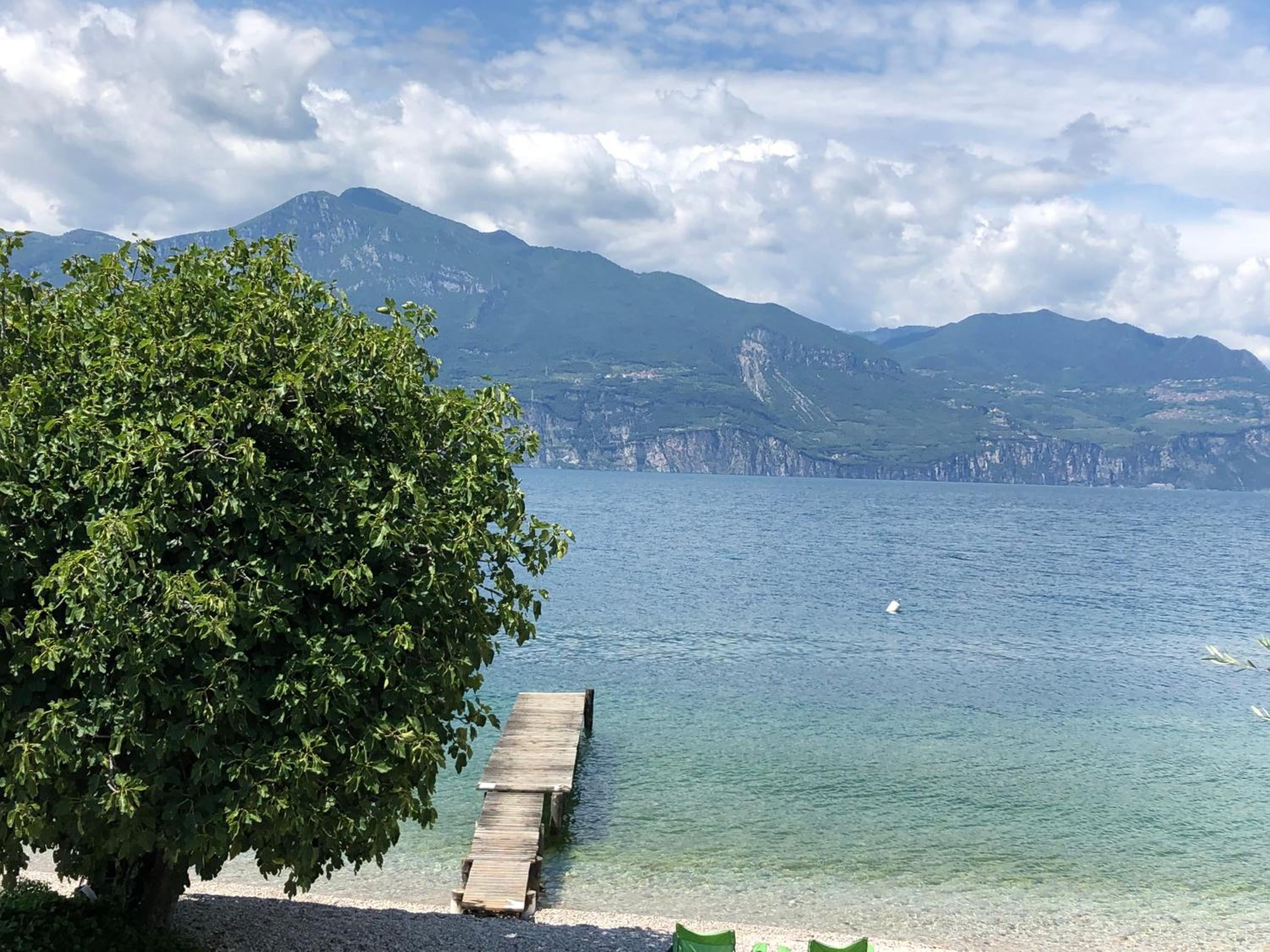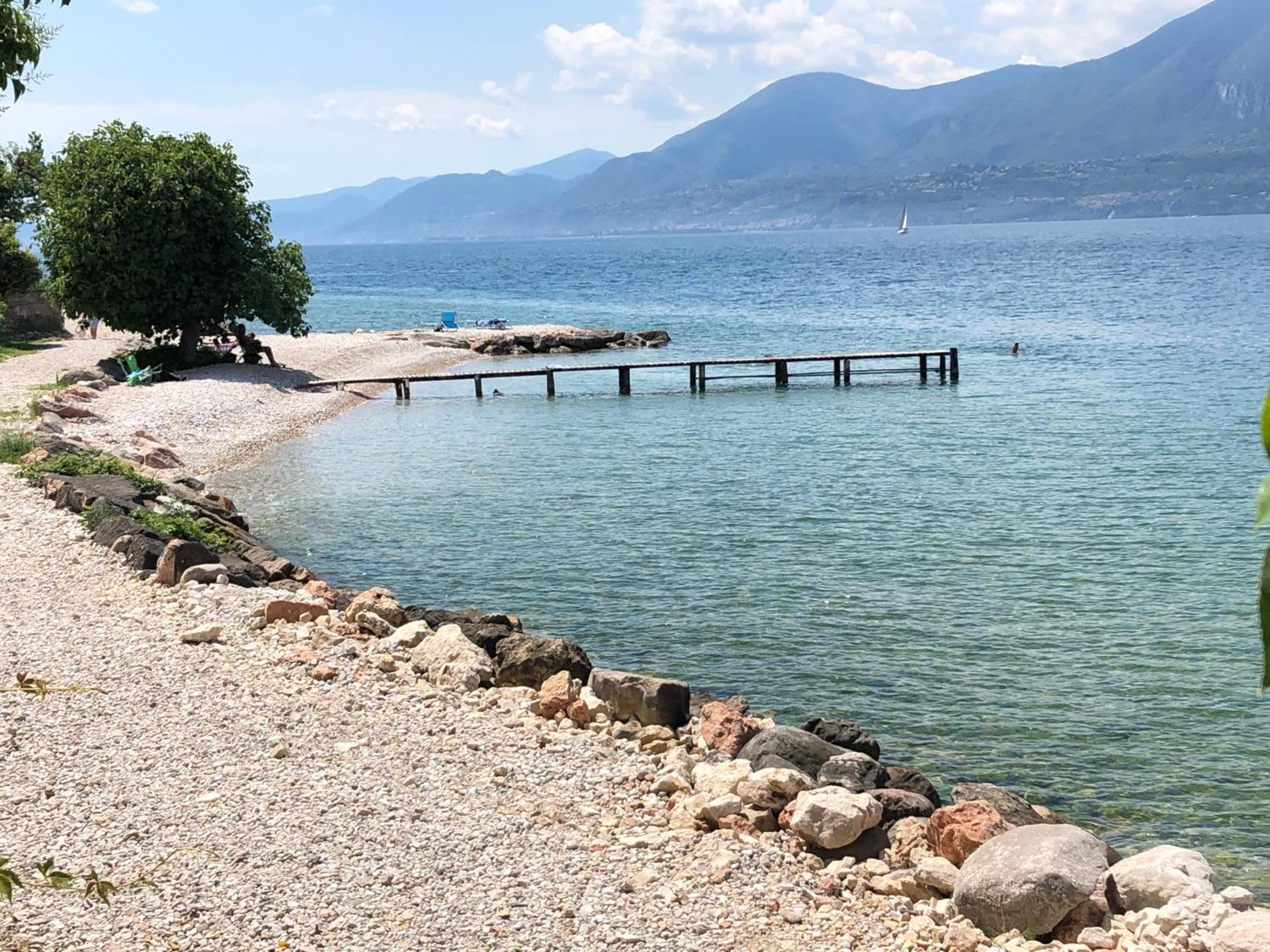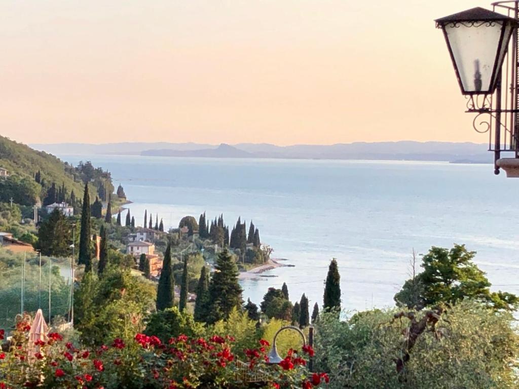 Jolie vue sur le lac, très beau jardin avec transat sous les oliviers et où on peut également garer les voitures. Les chambres sont simples mais très propre la literie est confortable. Salle de bain assez petite mais fonctionnelle. Wi-Fi dans les parties communes. Accès direct rapide et protégé, (car passant sous la route) à une petite plage au bord du lac, grâce à un chemin derrière le jardin de l'hôtel 😊