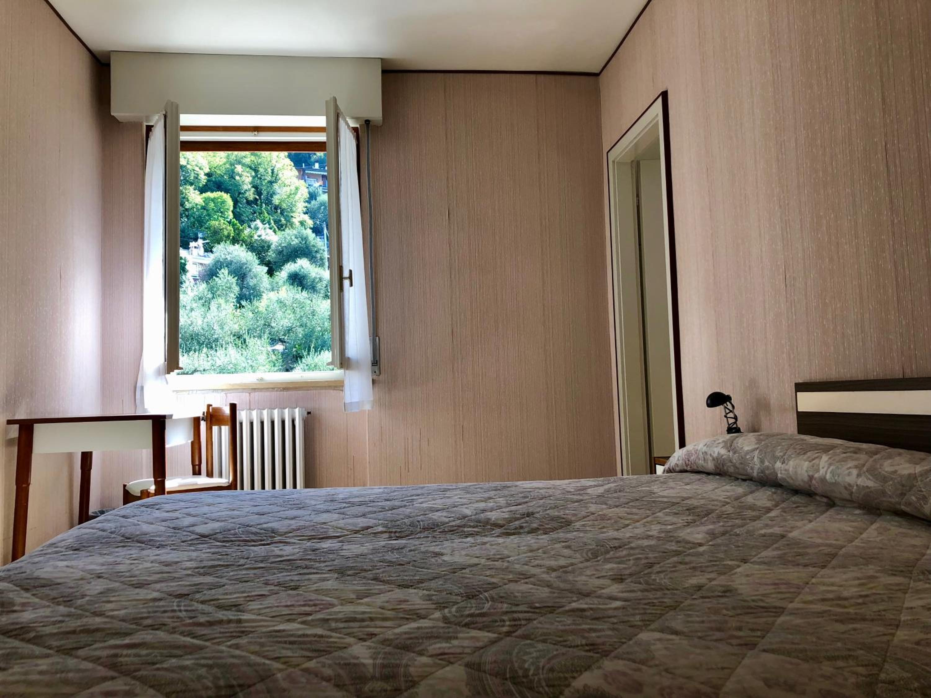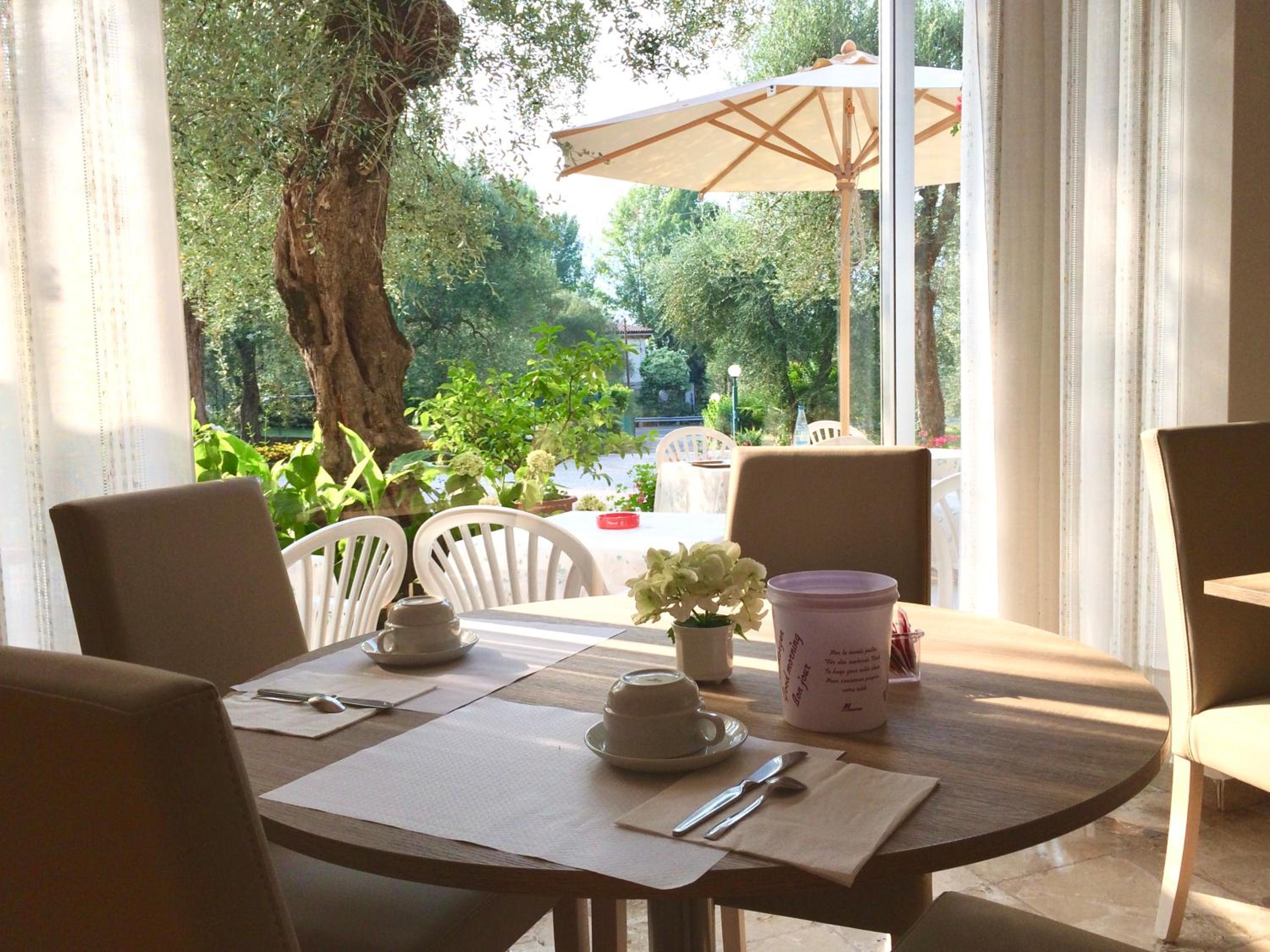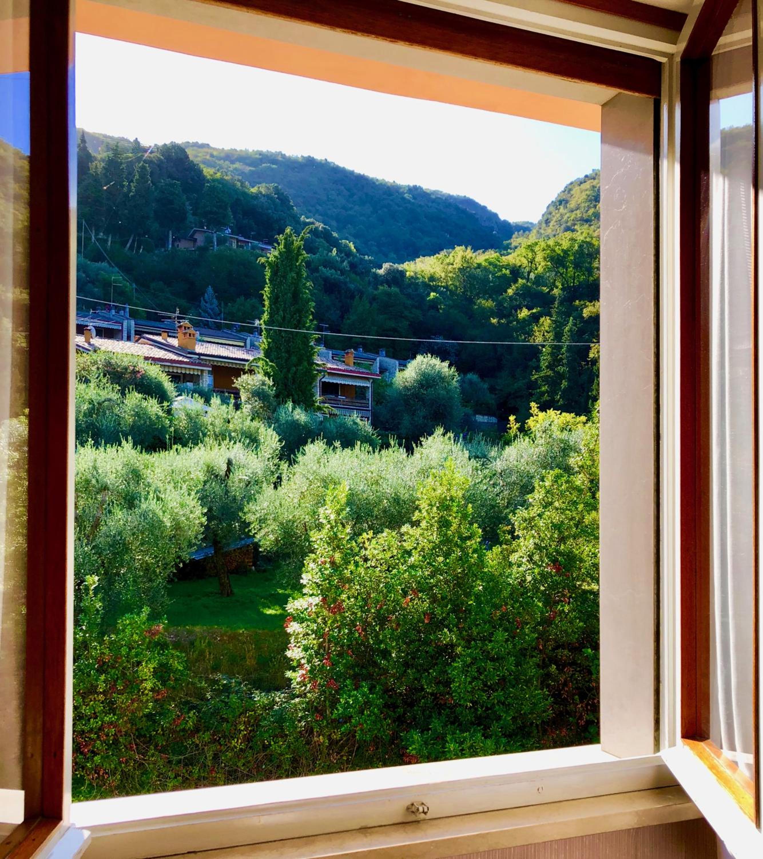 Jolie vue sur le lac, très beau jardin avec transat sous les oliviers et où on peut également garer les voitures. Les chambres sont simples mais très propre la literie est confortable. Salle de bain assez petite mais fonctionnelle. Wi-Fi dans les parties communes. Accès direct rapide et protégé, (car passant sous la route) à une petite plage au bord du lac, grâce à un chemin derrière le jardin de l'hôtel 😊