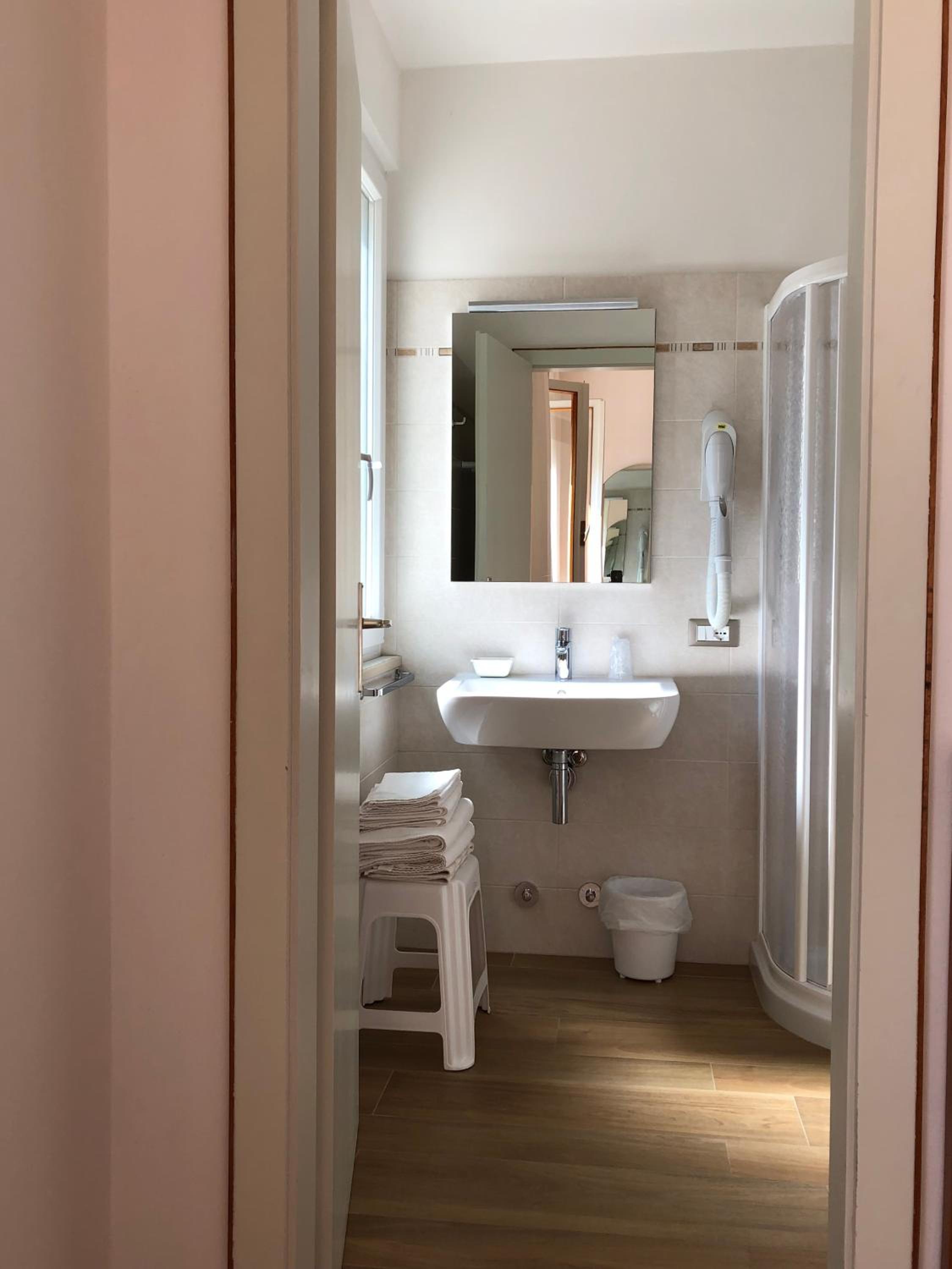 Non c'è nessun bar ristorante nelle vicinanze manca un frigo alla reception da lasciare a disposizione della clientela dei pioppi da chiedere alla reception e le pale sul soffitto optional che abbiamo trovato in altri alberghi a 1 stella sul lago e molo apprezzati lo scarico della doccia un po intasato