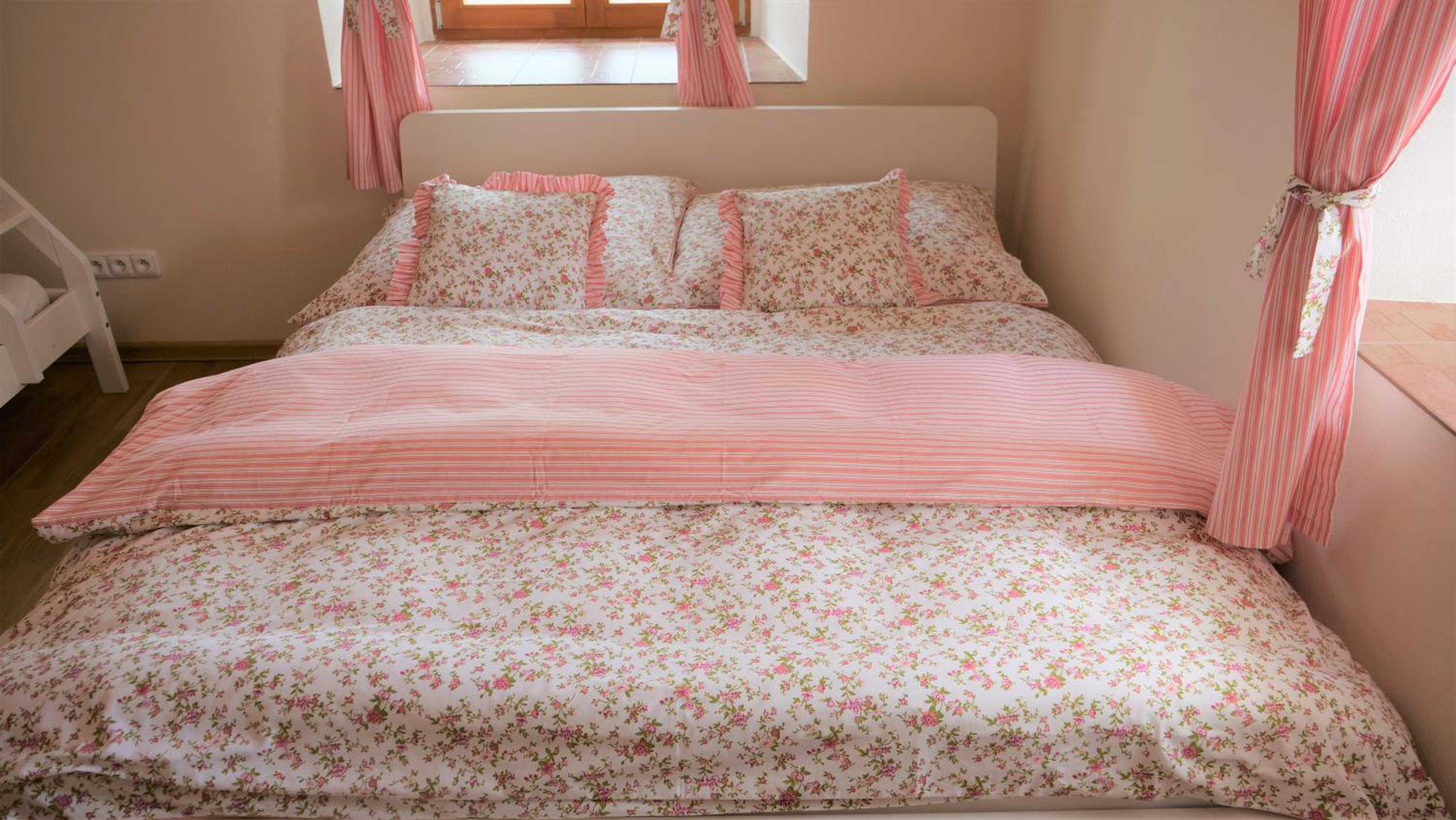 Zplepsit kvalitu posteli, hlavne detske vrzou a matrace jsou pruzinive a nepohodlne