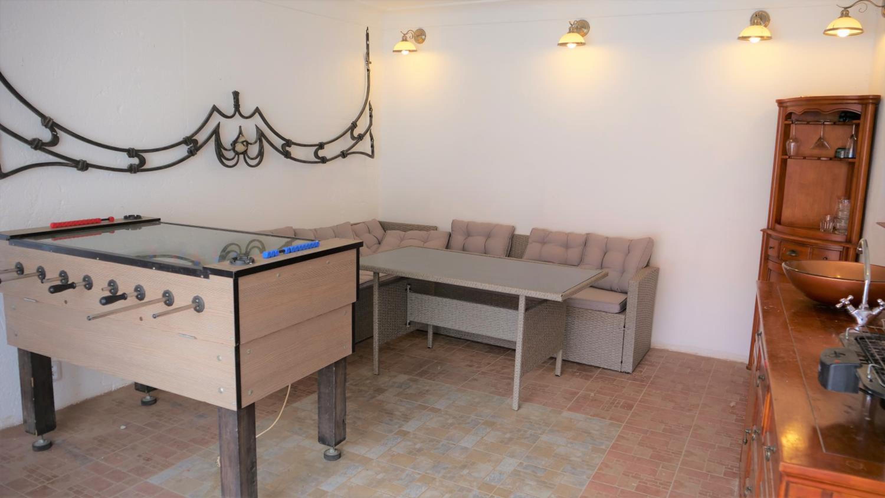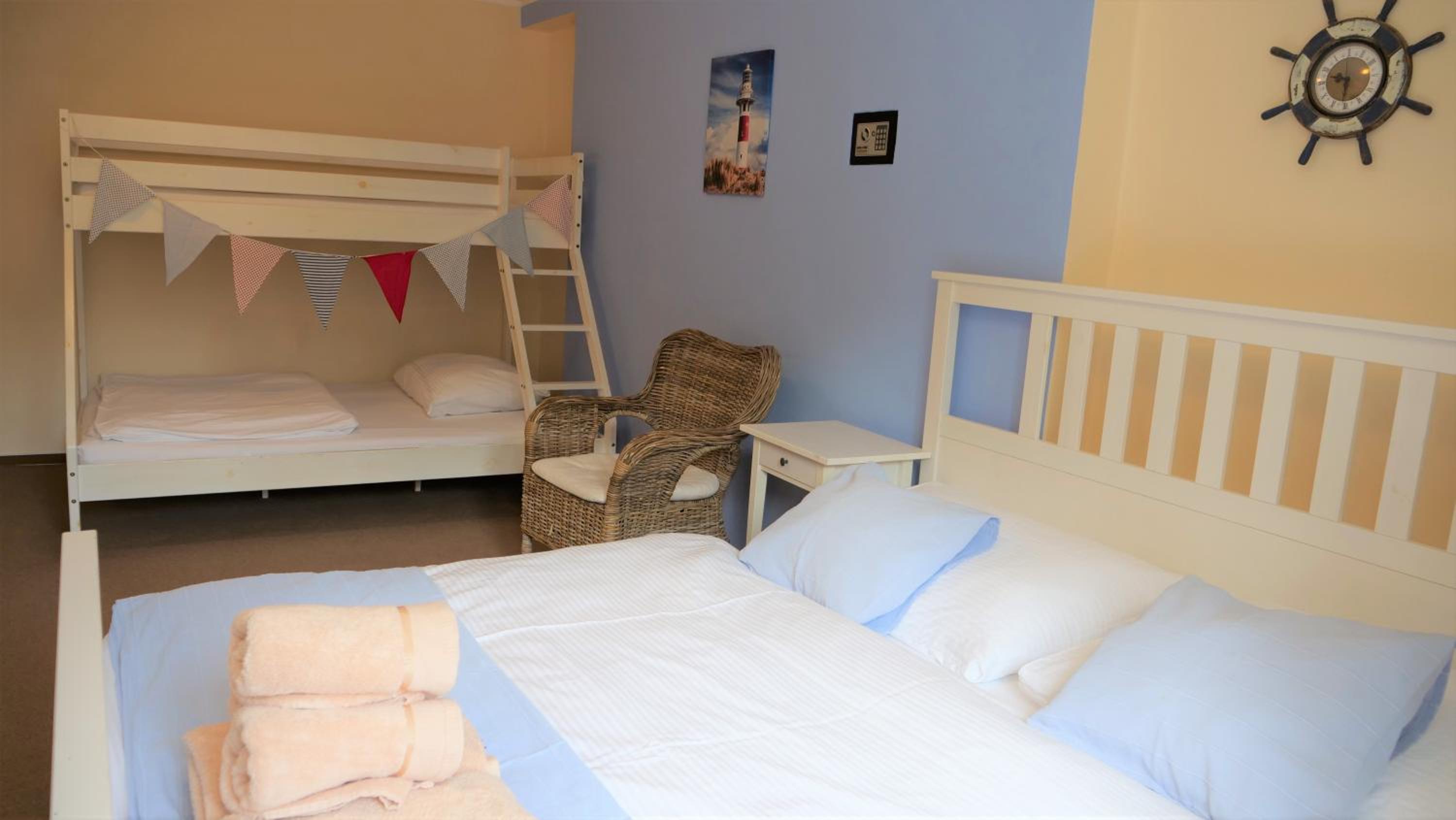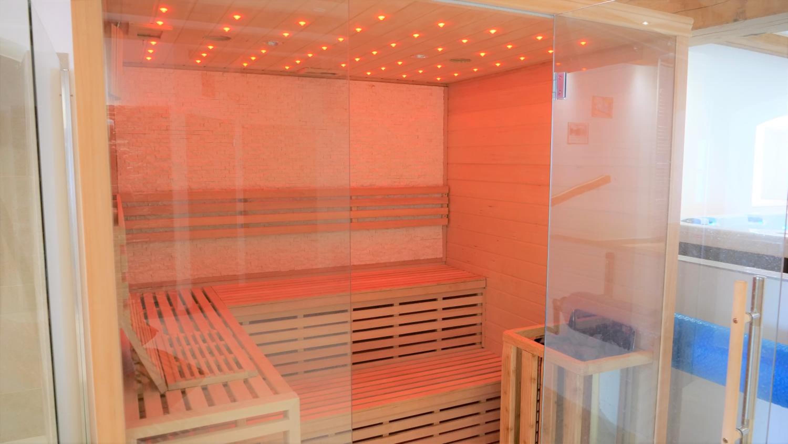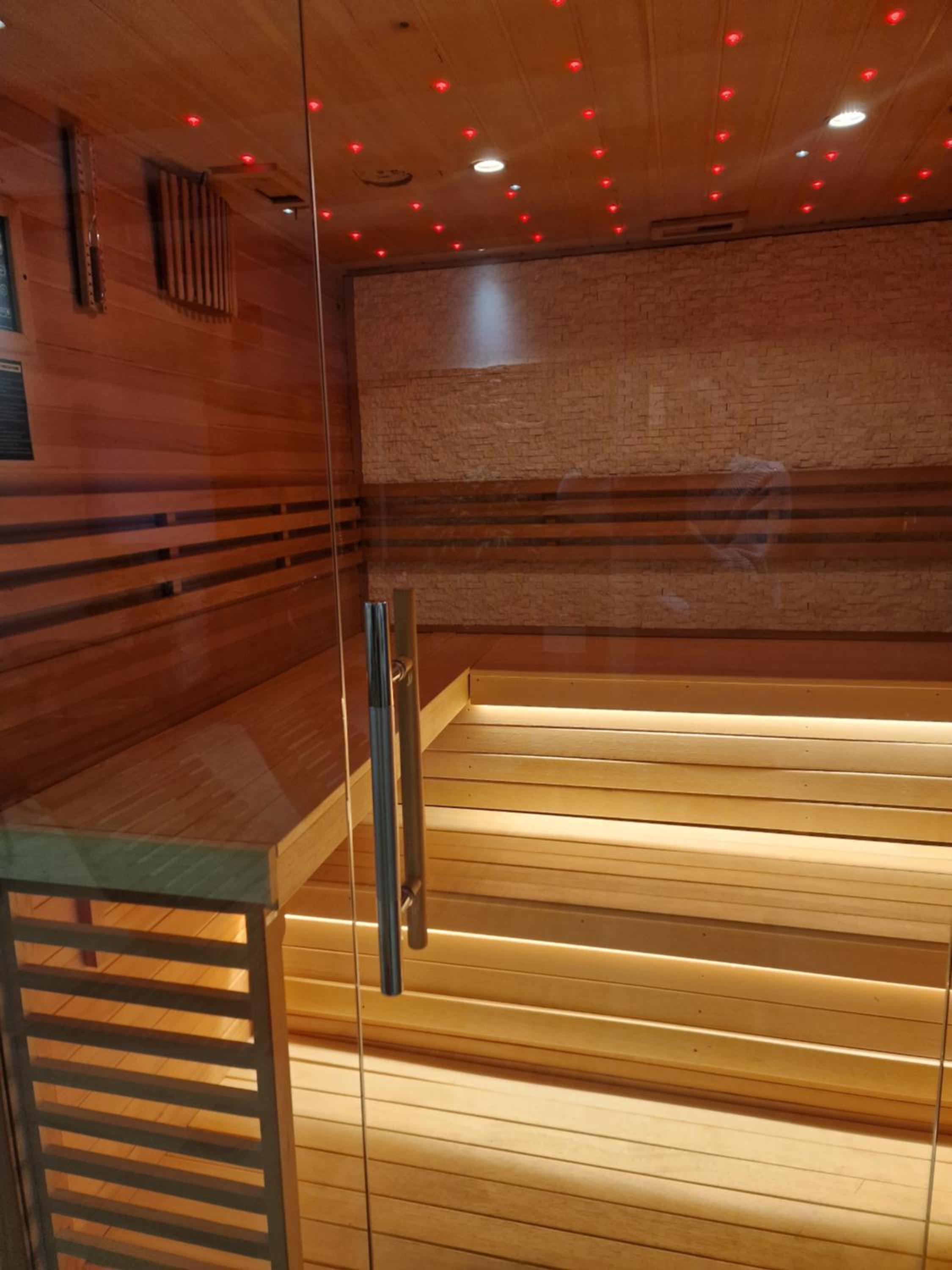 Das Objekt besteht aus zwei Häusern. Im Haupthaus war der Wellnessbereich untergebracht. Informationen gab es kaum in deutsch. In unserem Objekt war ein Kühlschrank mit Getränken und eine Sitzecke, die jedoch durch permanente Kameraüberwachung nicht gerade gemütlich war. Die Betten waren super hart, der Lattenrost bestand nur aus Brettern, die Matratze war mit ca. 15 cm Stärke viel zu dünn, sodass man das Gefühl hatte, man liegt auf dem harten Boden. Insgesamt bestand das Zimmer aus 1 Babybett, 1 Doppelbett und einem Etagenbett, wobei unten durchaus zwei Personen schlafen konnten. Es war also mehr ein Bettenlager als ein gemütliches Urlaubszimmer.