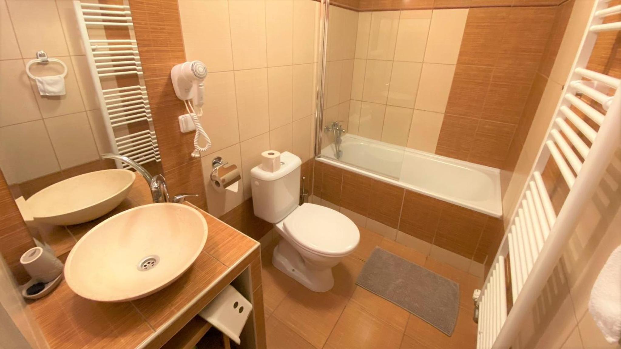 Izba v B trochu pripomina ubytovnu v skole v prirode. Je to uplne v poriadku, ale myslim, ze nie je za tu cenu. Wellness sa doplaca, je skvely, ale je len na 45 minut.
