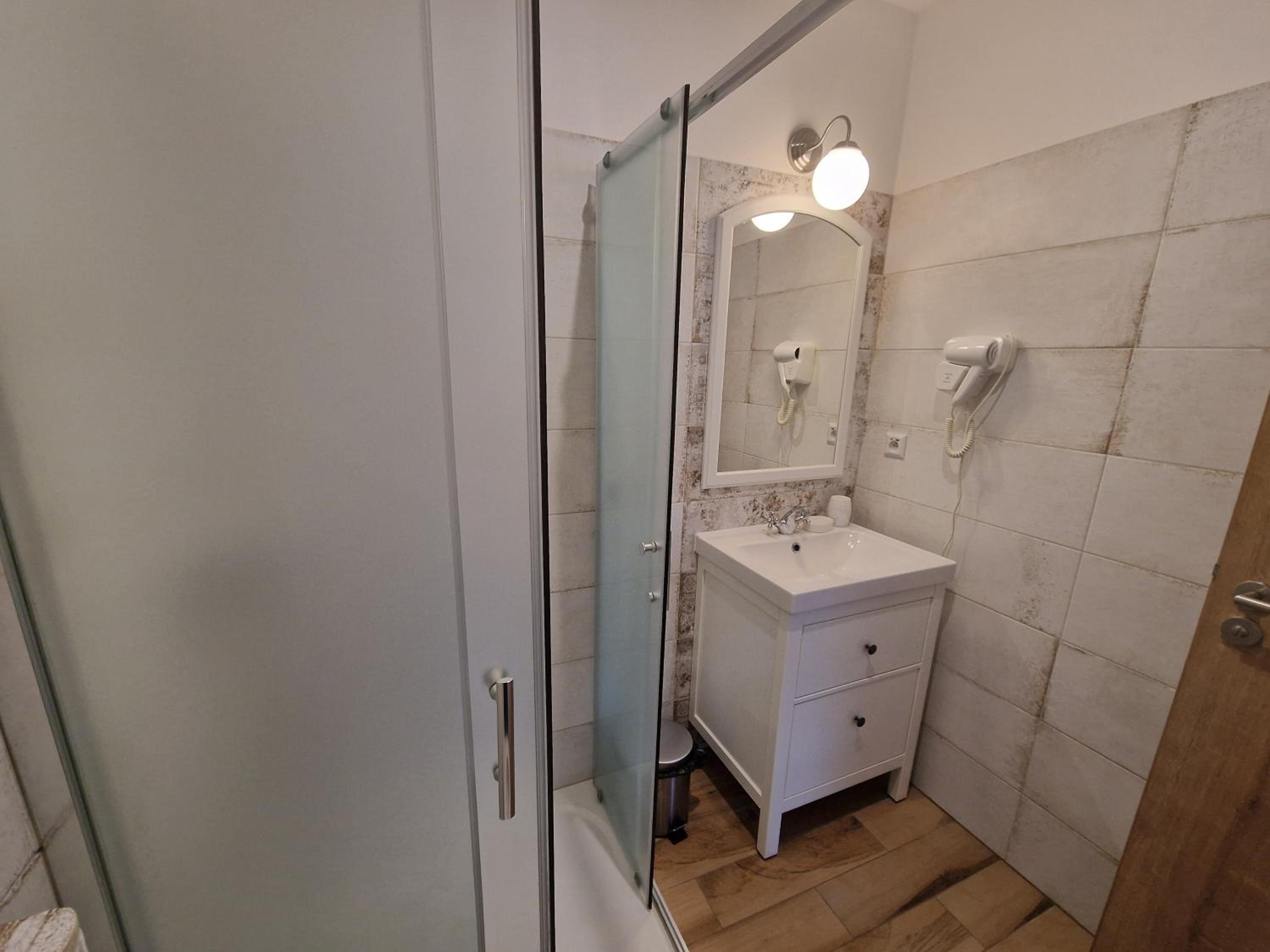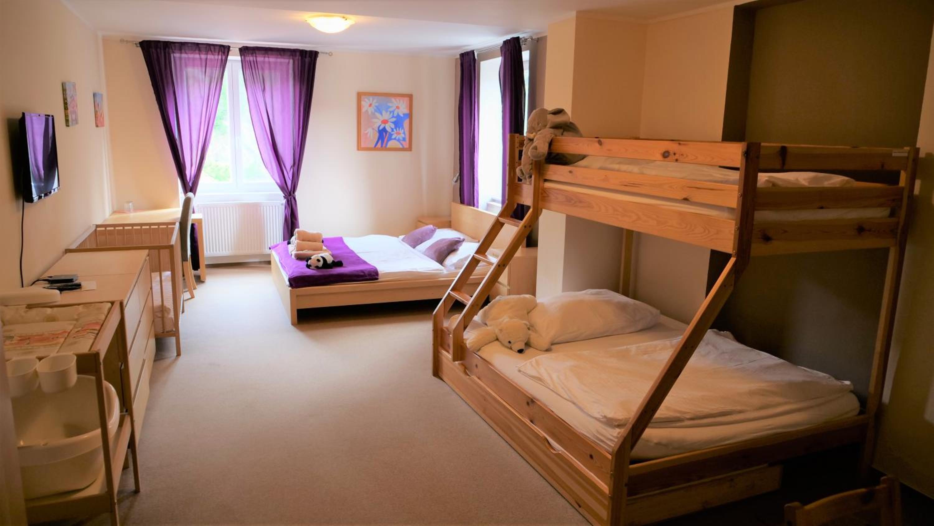 V pokoji c. 103 bylo velmi málo prostoru, díky dětské nepřenosné postýlce, zvážila bych zda nepřizpůsobit pobyt lidem bez děti a postýlku případně dat do skladu. Kufr jsem musela rozložil v té dětské postýlce.. a postele extrémně nízko podlahy, asi 20 cm od země a matrace mela asi 10 cm a cítili jsme každou šprušli.