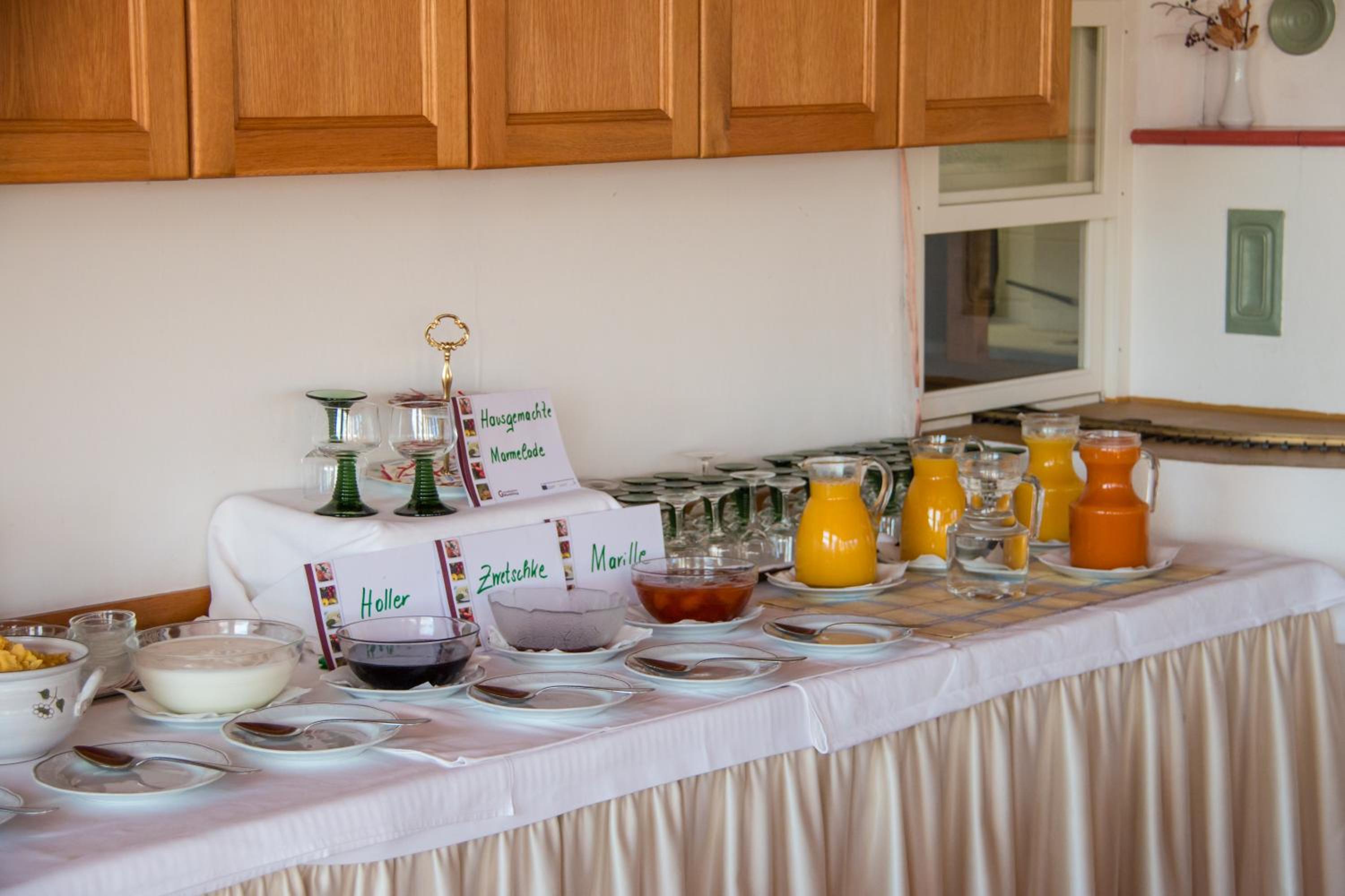 Super Bio Produkte aus eigenem Anbau. Seit meiner Kindheit habe ich nicht mehr derartiges "normales" Obst gegessen. Das Frühstücksbuffet ist 1a.