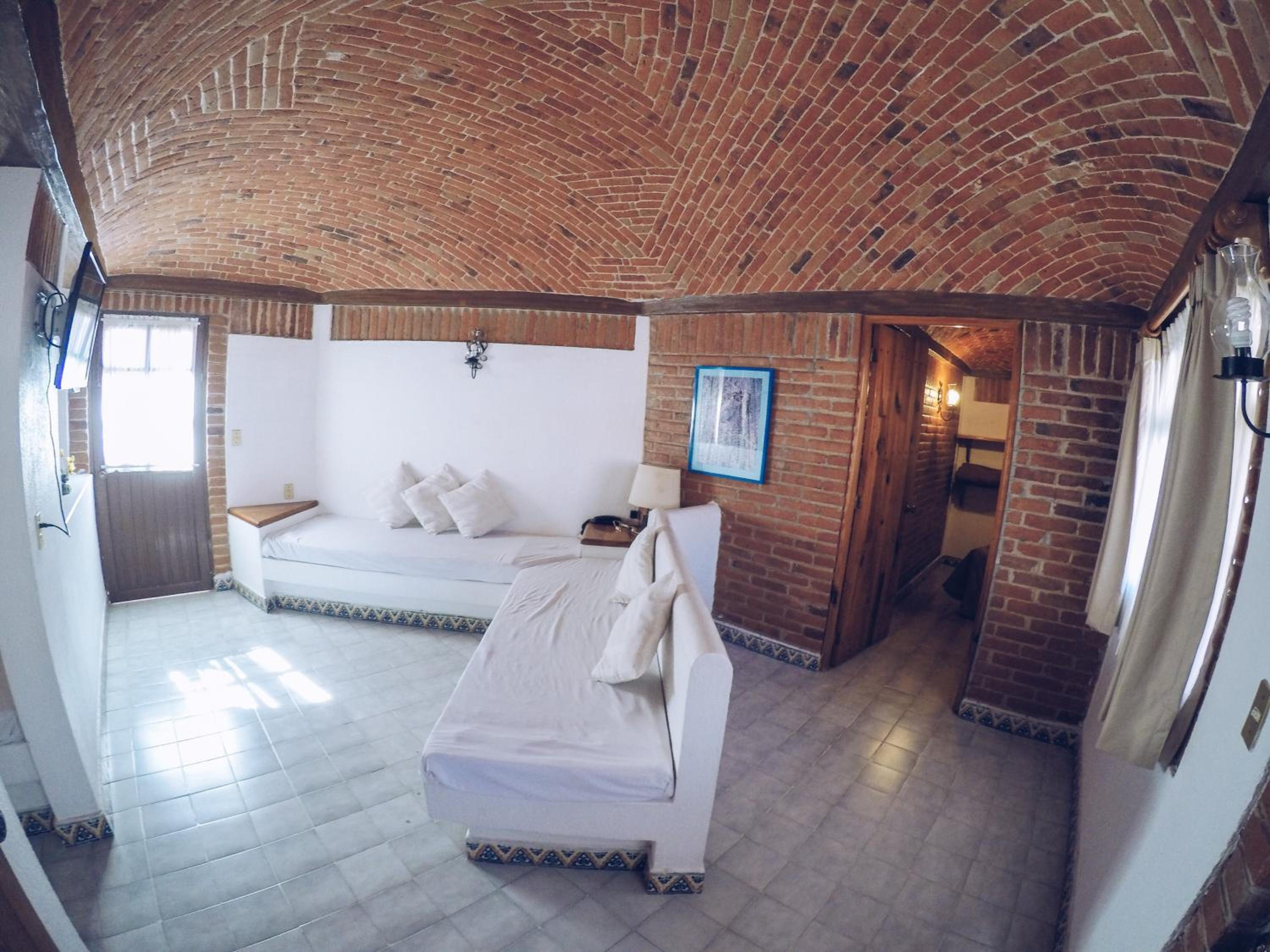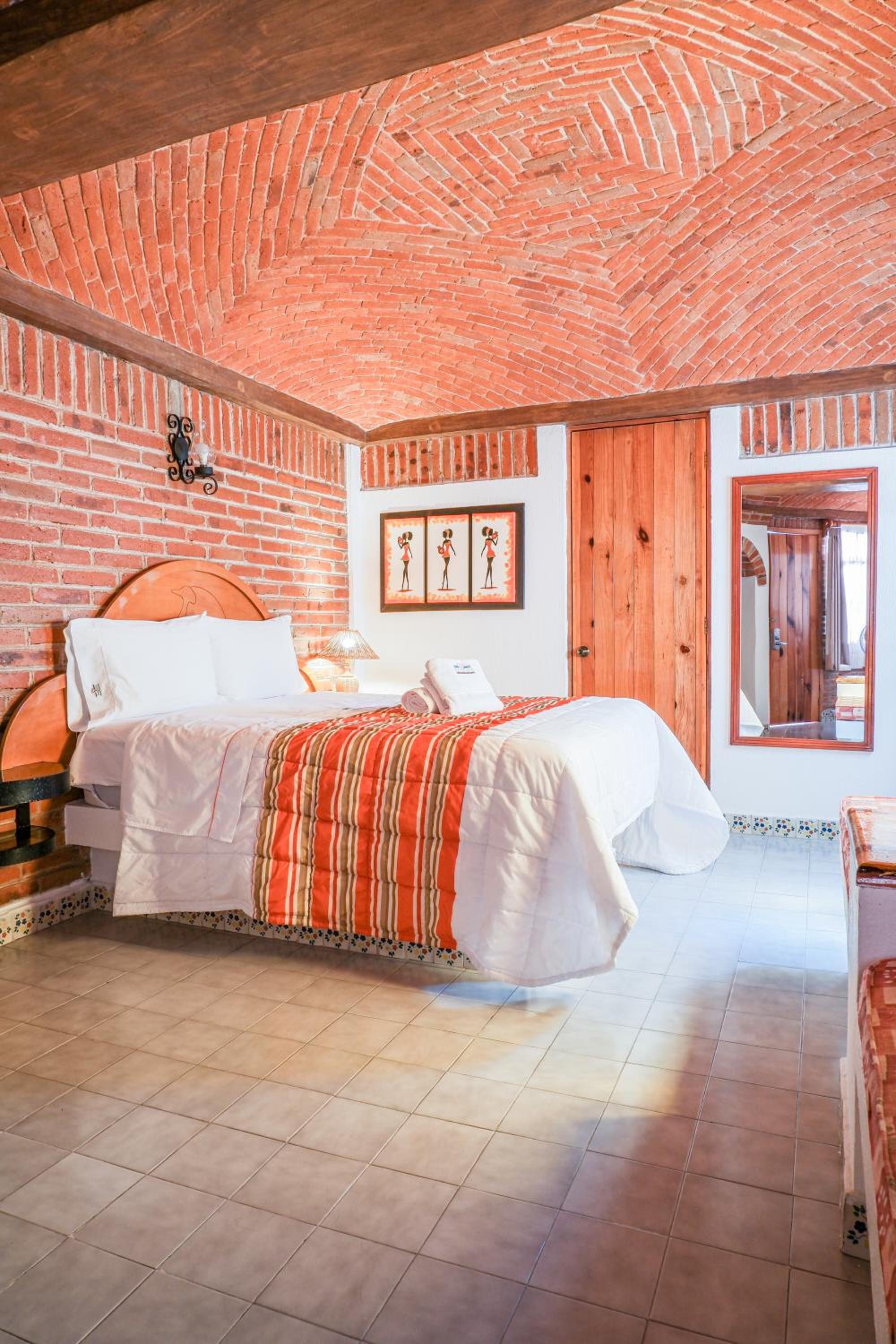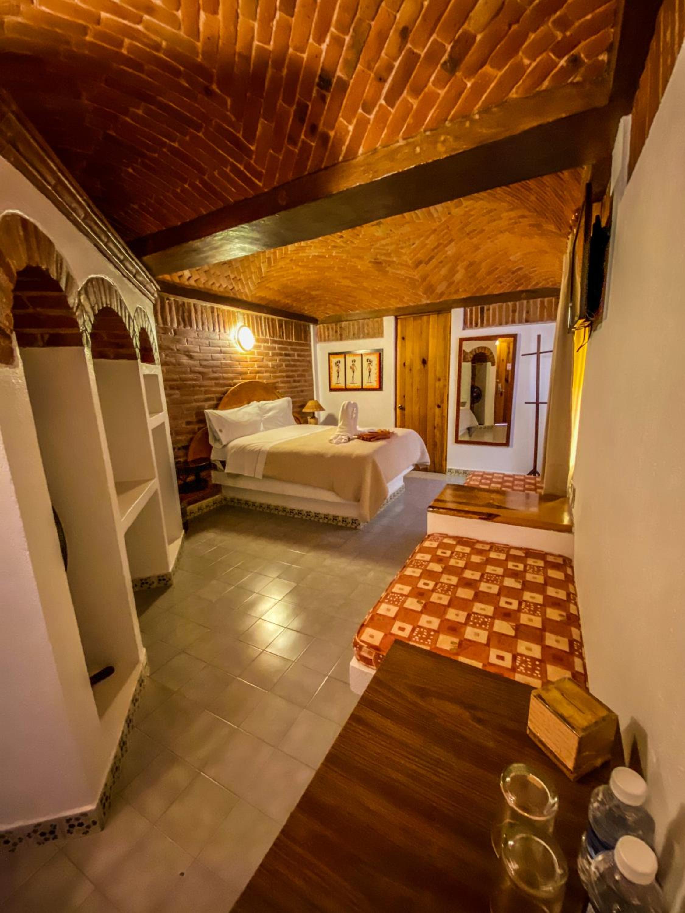 Hotel très pittoresque avec une décoration coloniale avec ses murs et ses plafonds en brique et en voute.