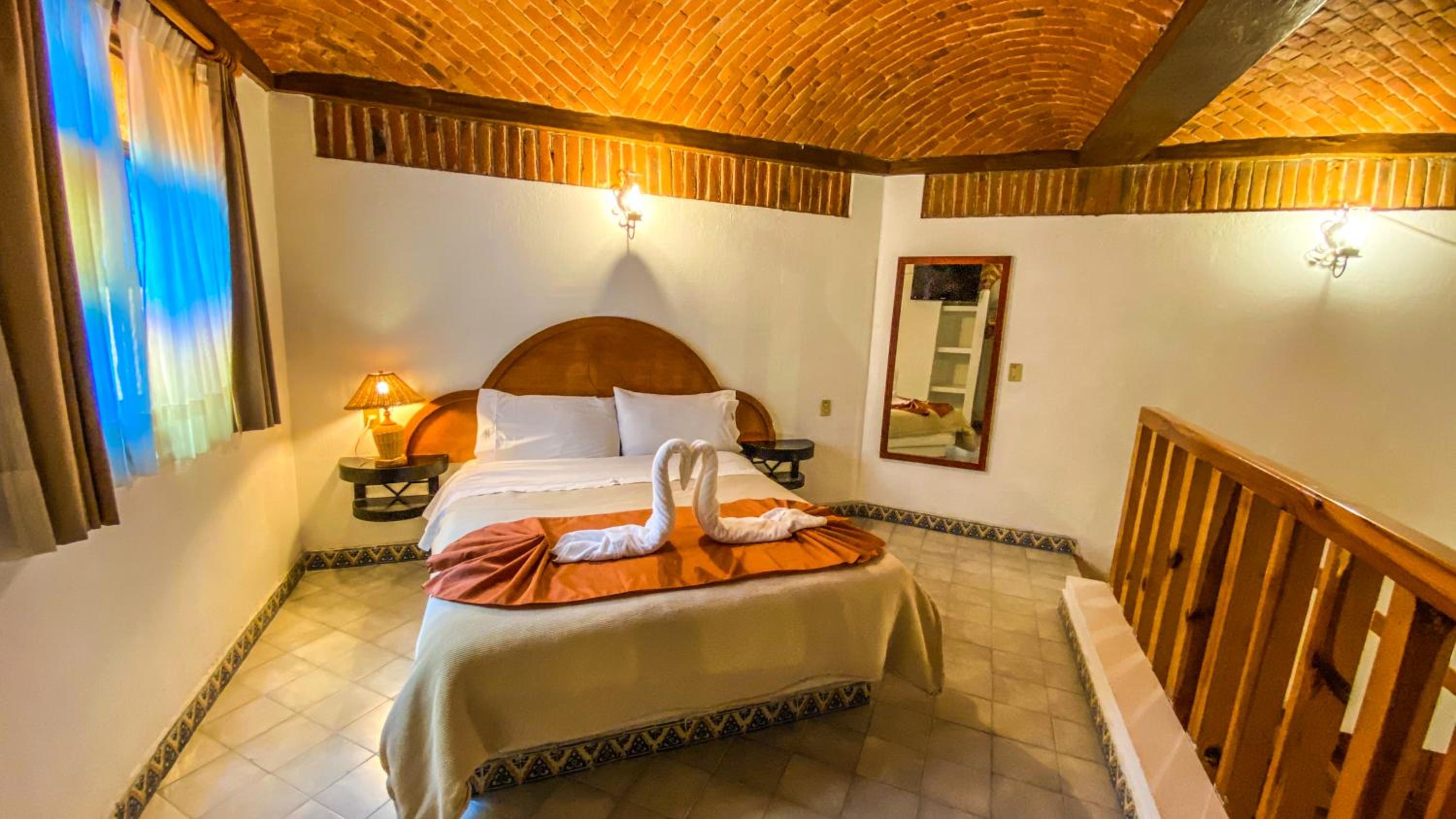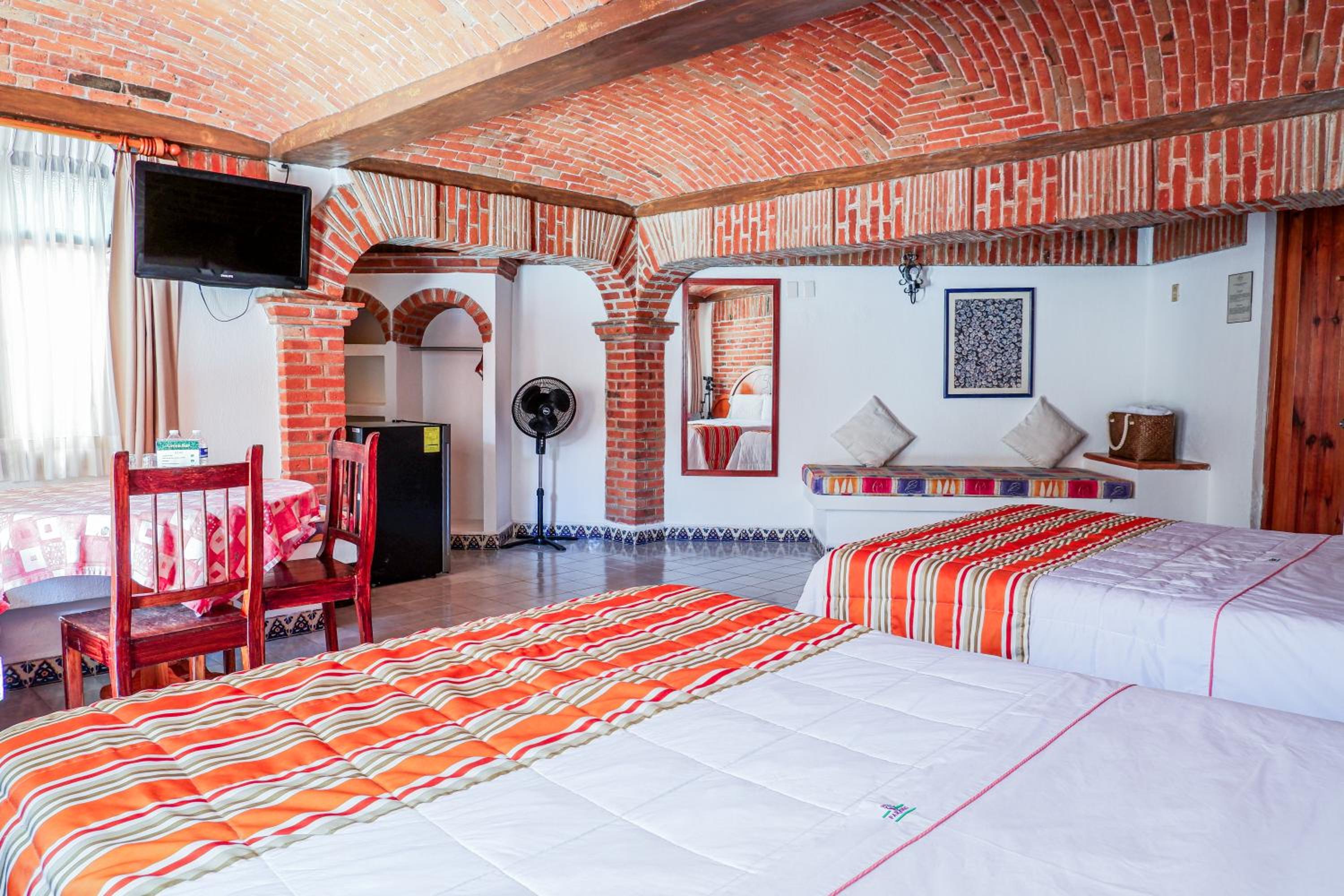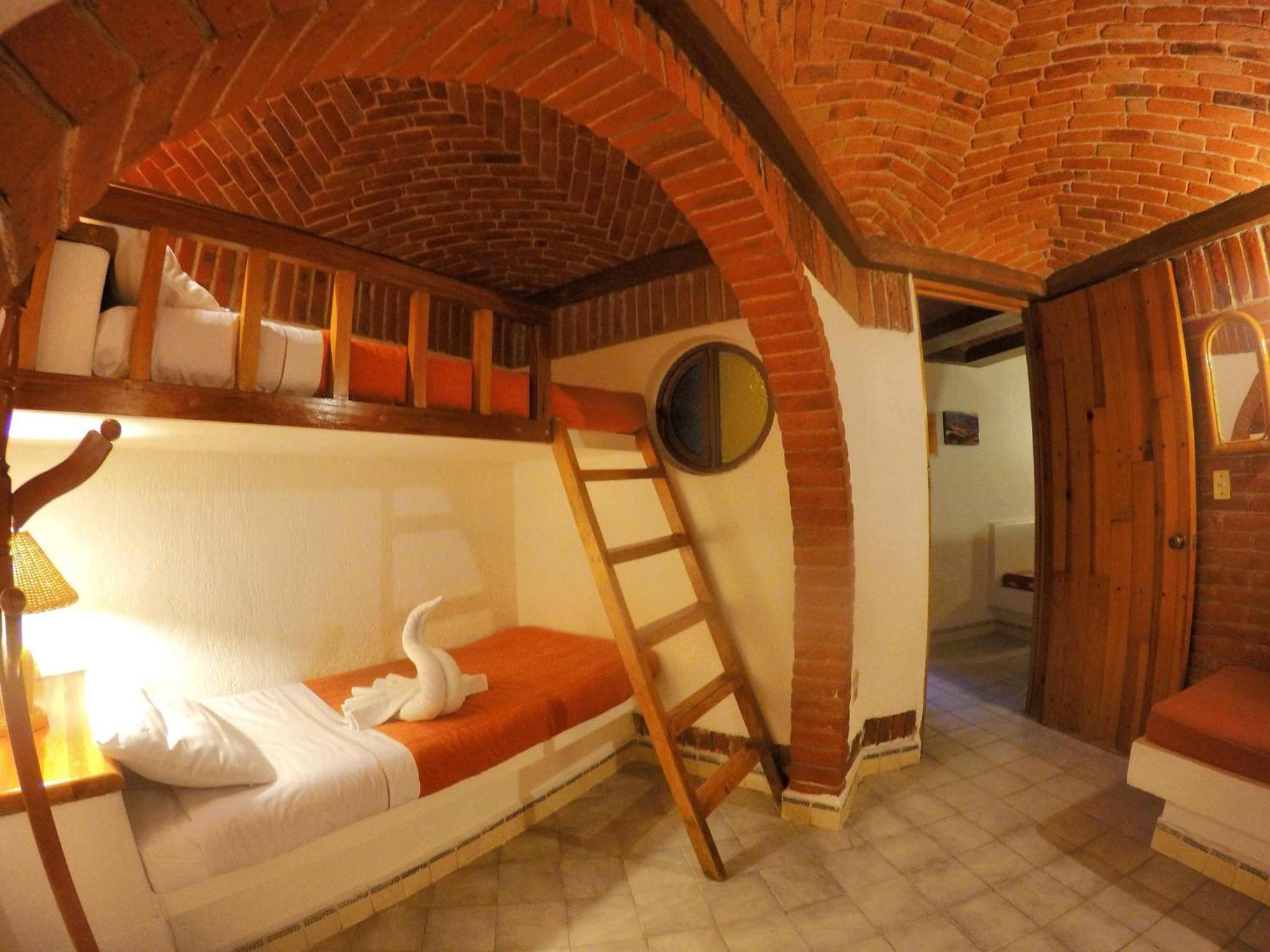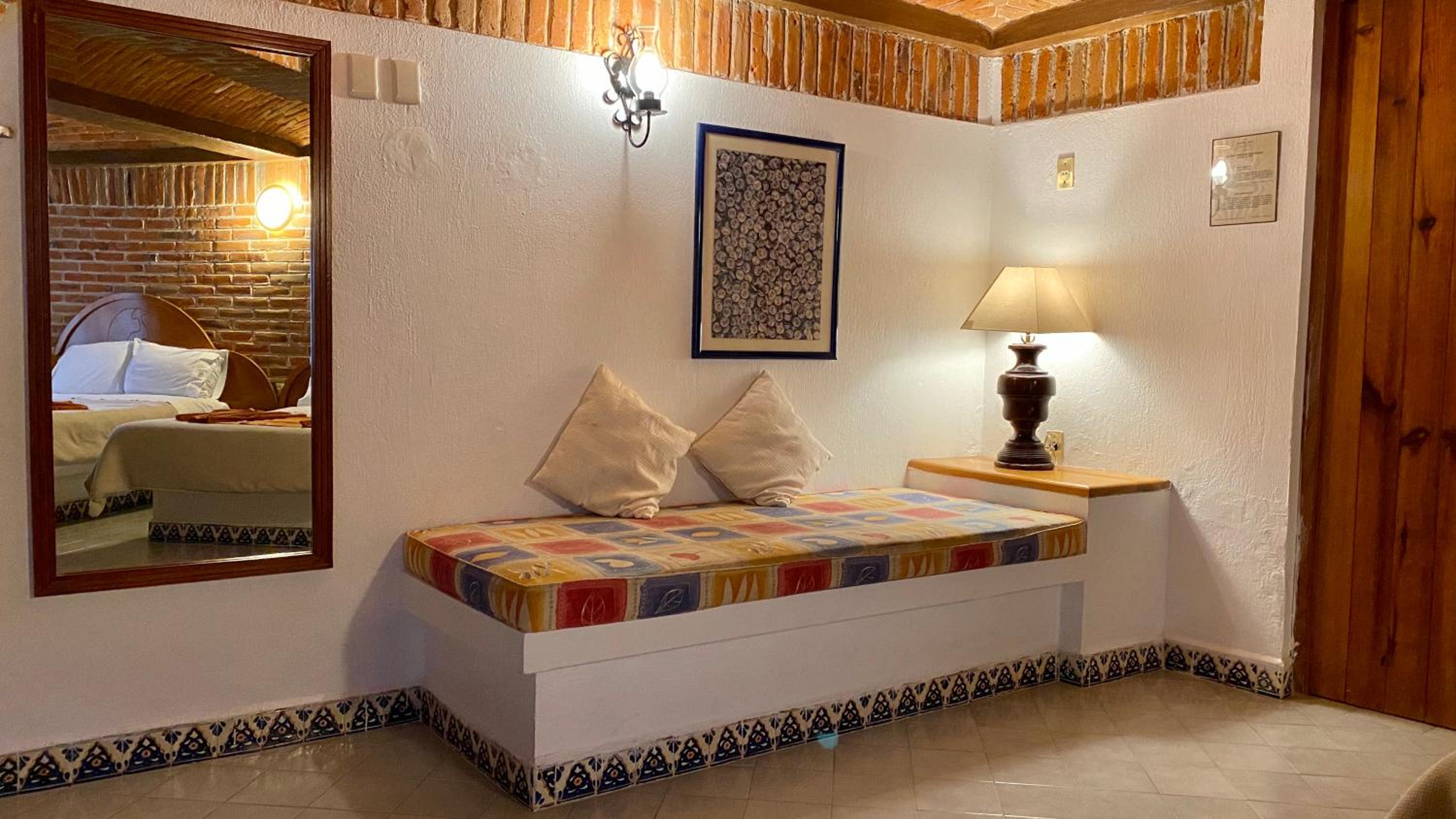 Hotel très pittoresque avec une décoration coloniale avec ses murs et ses plafonds en brique et en voute.