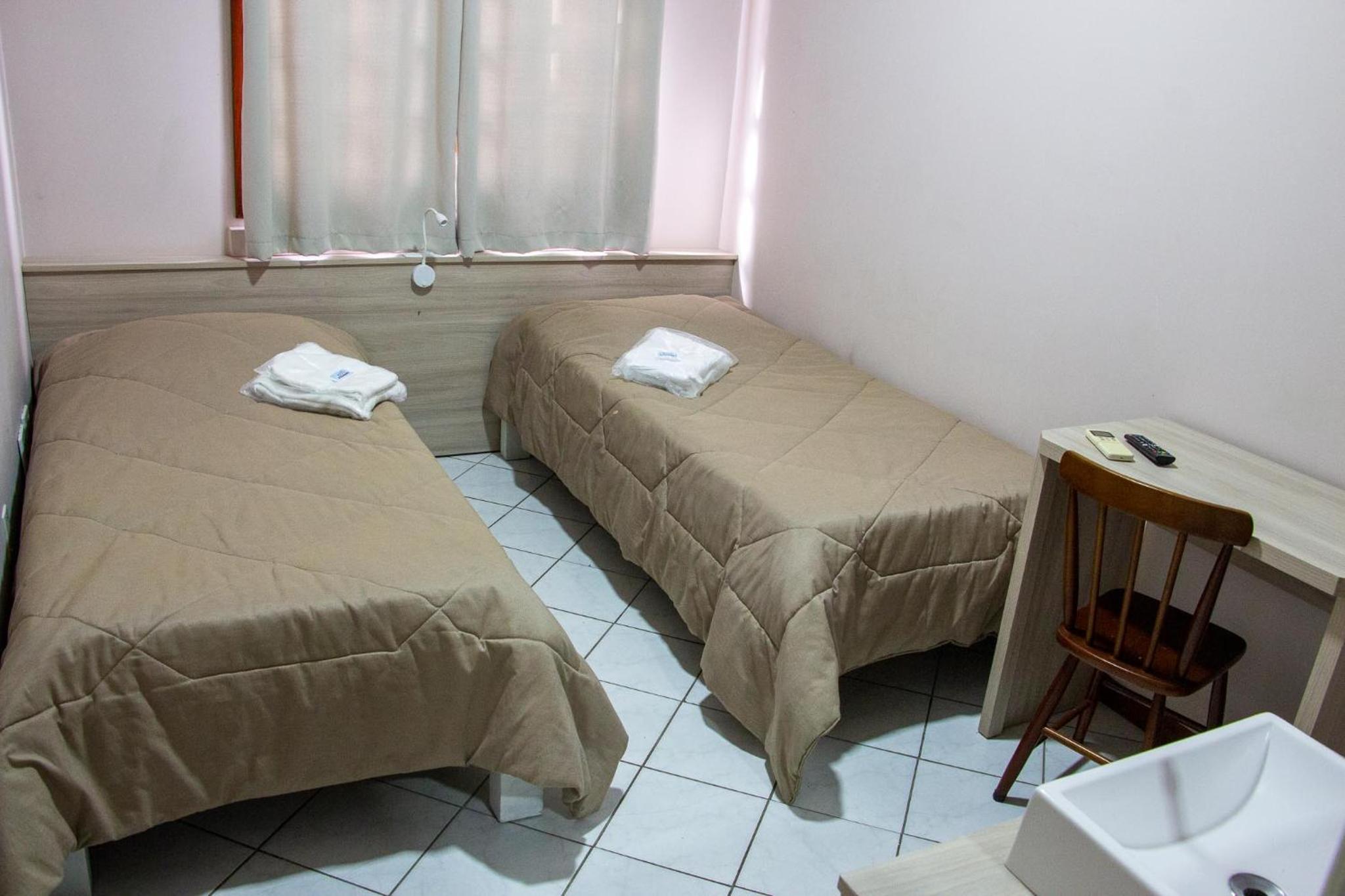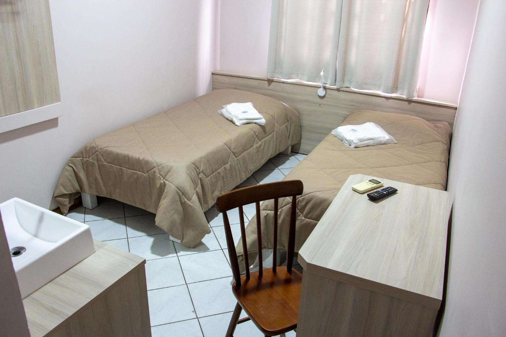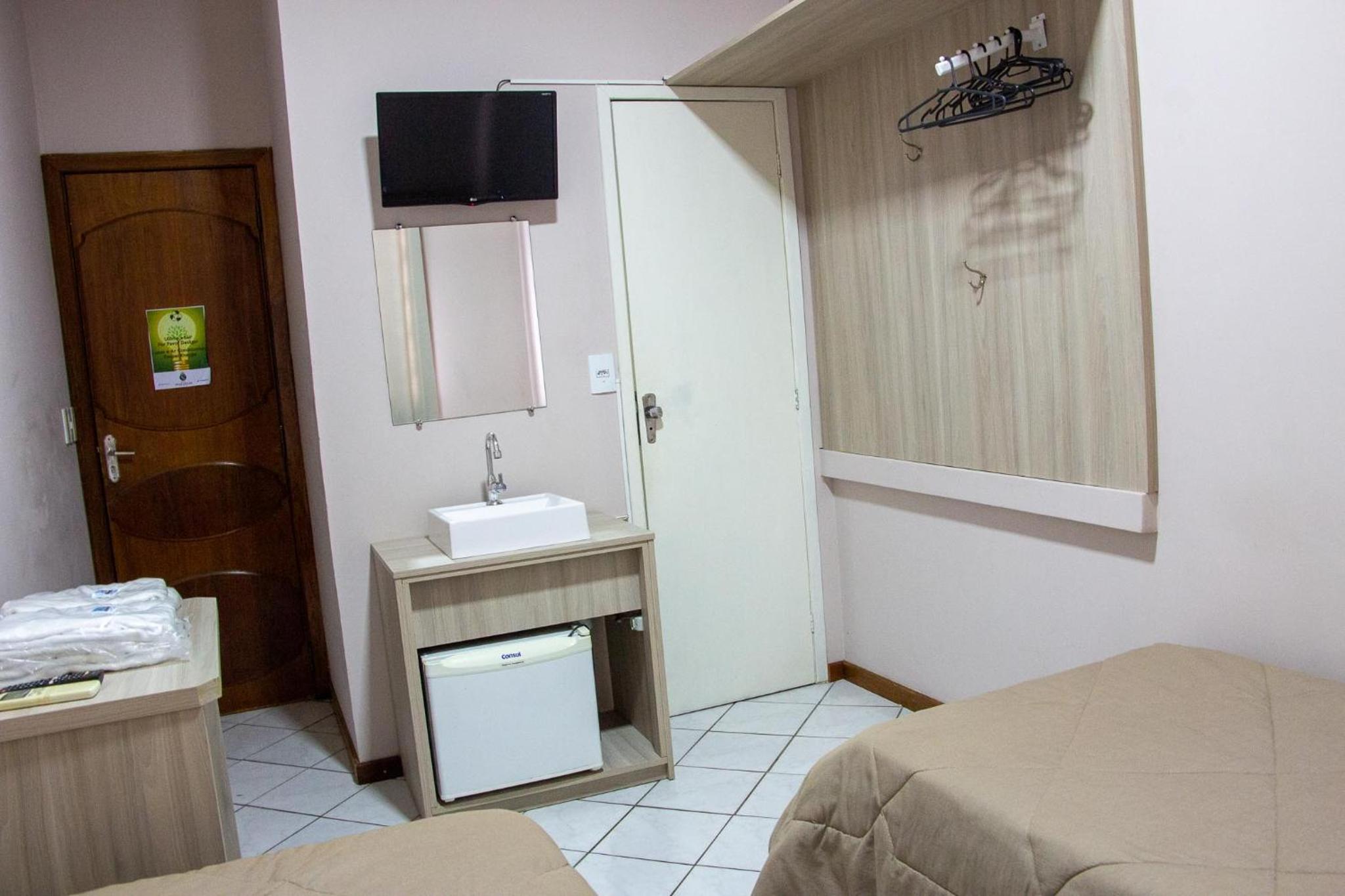 Parecia até que o hotel estava lotado: a recepcionista da noite nos atendeu como se estivesse fazendo um favor, ao que tudo indica, nos colocou no menor quarto possível. O quarto era minúsculo, apenas um espelho da pia, essa ficava localizada fora do banheiro, ao lado da cama e na porta de saída do quarto, tornando impossível se arrumar com conforto. O banheiro, por sua vez, era extremamente apertado, tanto que nem comportava a pia. A cama era pequena e o colchão horrível para um casal. Havia pouquíssimos hóspedes, então claramente nos deram o quarto que quiseram.