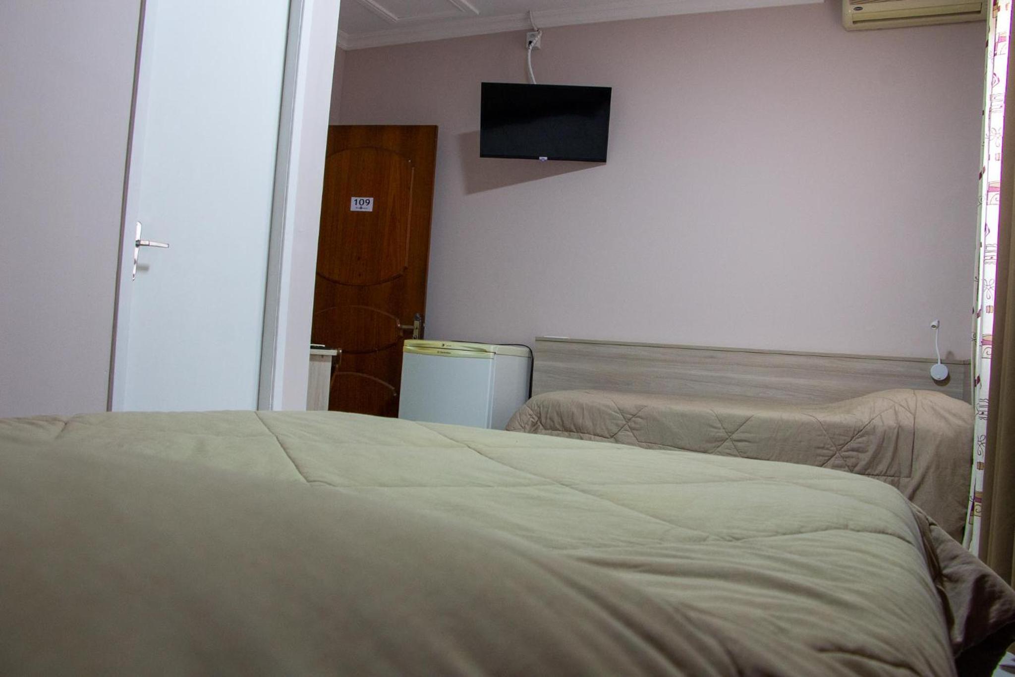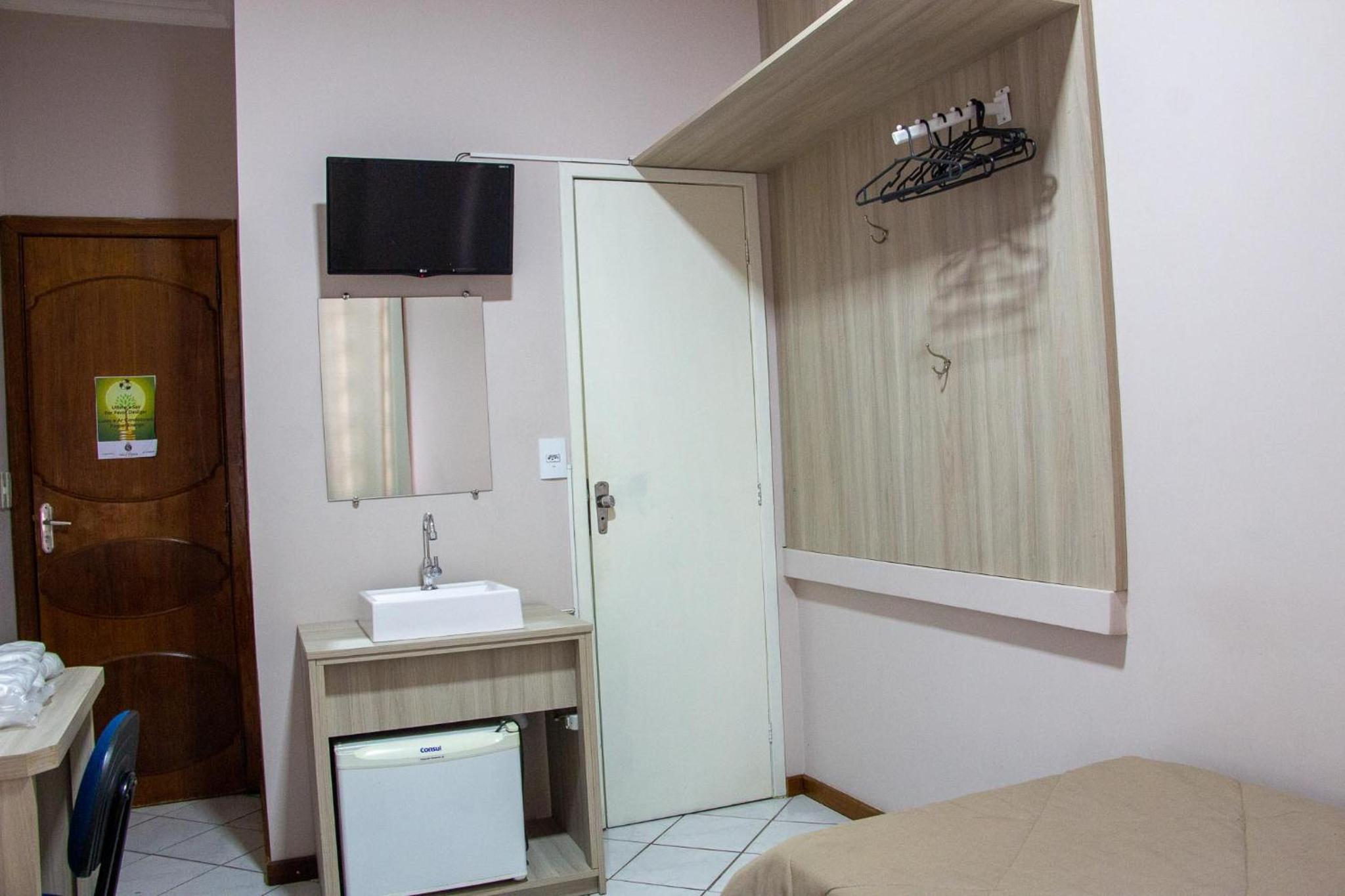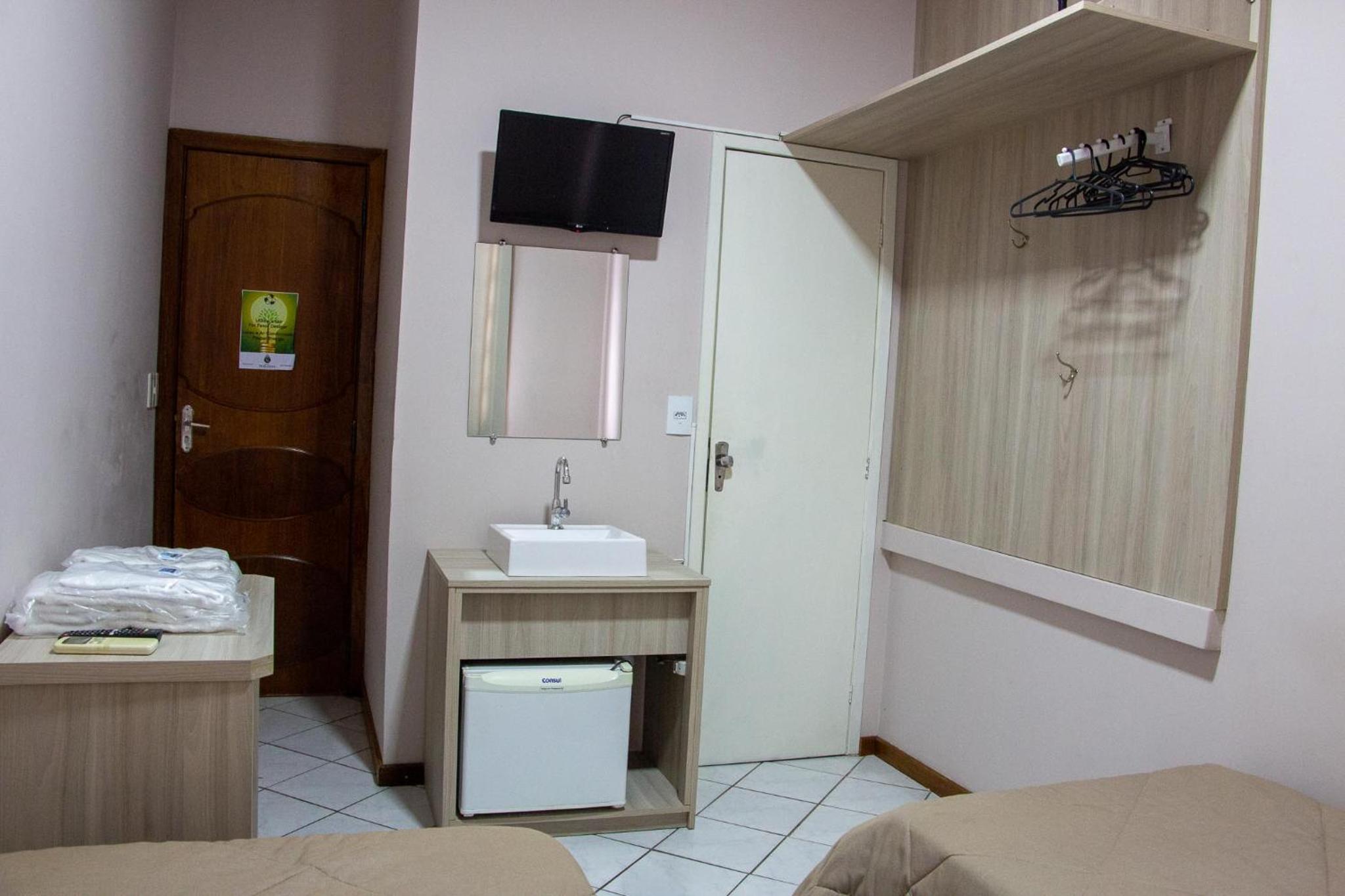 Parecia até que o hotel estava lotado: a recepcionista da noite nos atendeu como se estivesse fazendo um favor, ao que tudo indica, nos colocou no menor quarto possível. O quarto era minúsculo, apenas um espelho da pia, essa ficava localizada fora do banheiro, ao lado da cama e na porta de saída do quarto, tornando impossível se arrumar com conforto. O banheiro, por sua vez, era extremamente apertado, tanto que nem comportava a pia. A cama era pequena e o colchão horrível para um casal. Havia pouquíssimos hóspedes, então claramente nos deram o quarto que quiseram.