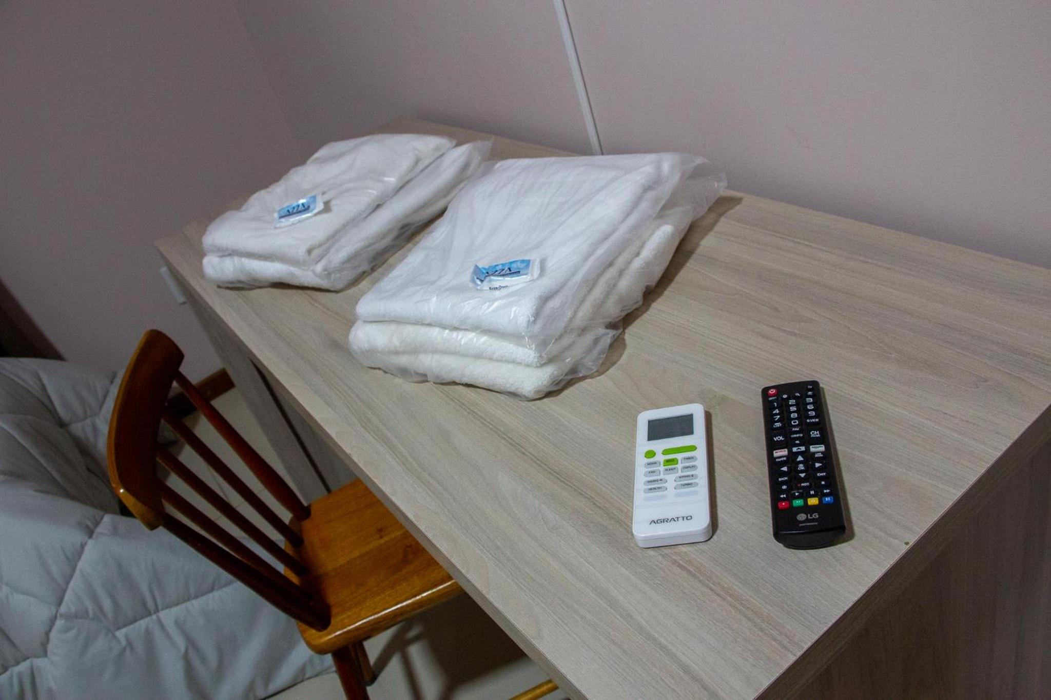 O quarto estava com um cheiro de mofo, quando chegamos, e após o ar condicionado ligado por um tempo, saiu. O chuveiro era elétrico pré aquecido, tinha pouca pressão.