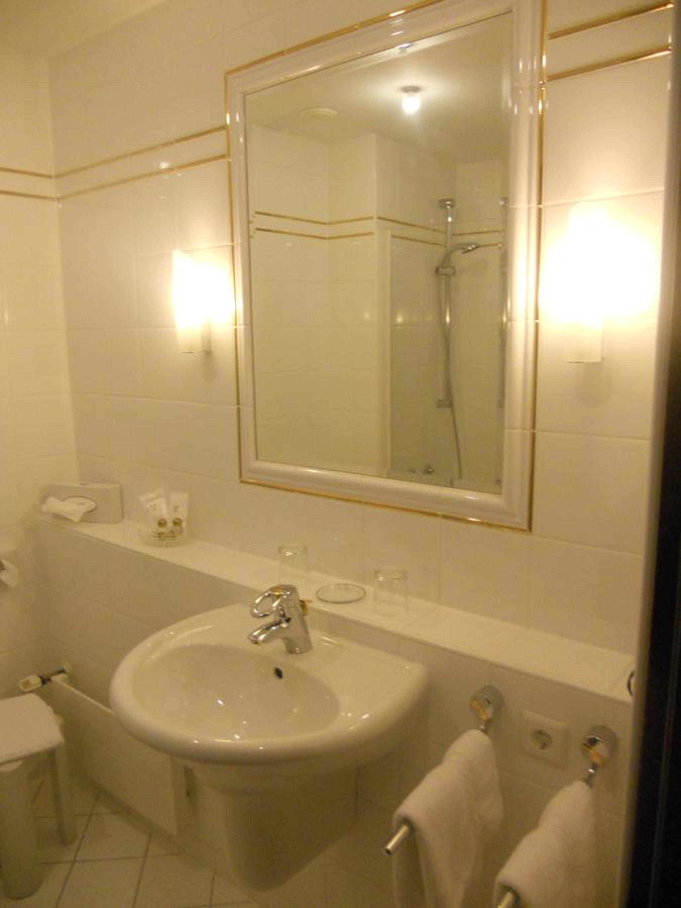 Es ist ein alter Bau und trotz Modernisierungen bleiben "Erinnerungen" der Frühzeit wach: Lichter im Schlafzimmer viel zu schwach und an wenig geeigneten Ort. Man hört die Zimmernachbaren.