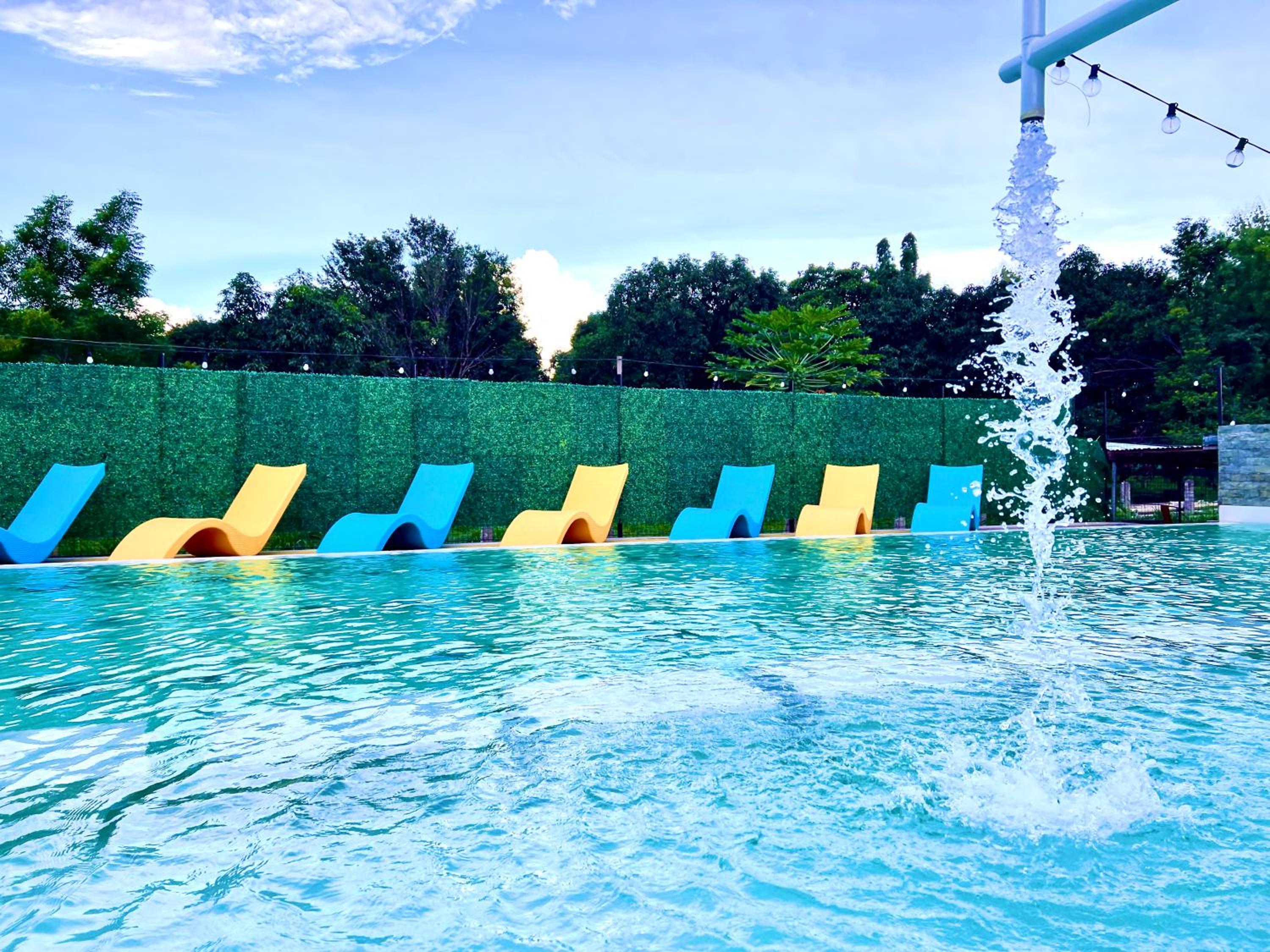 There’s a swimming pool and bar