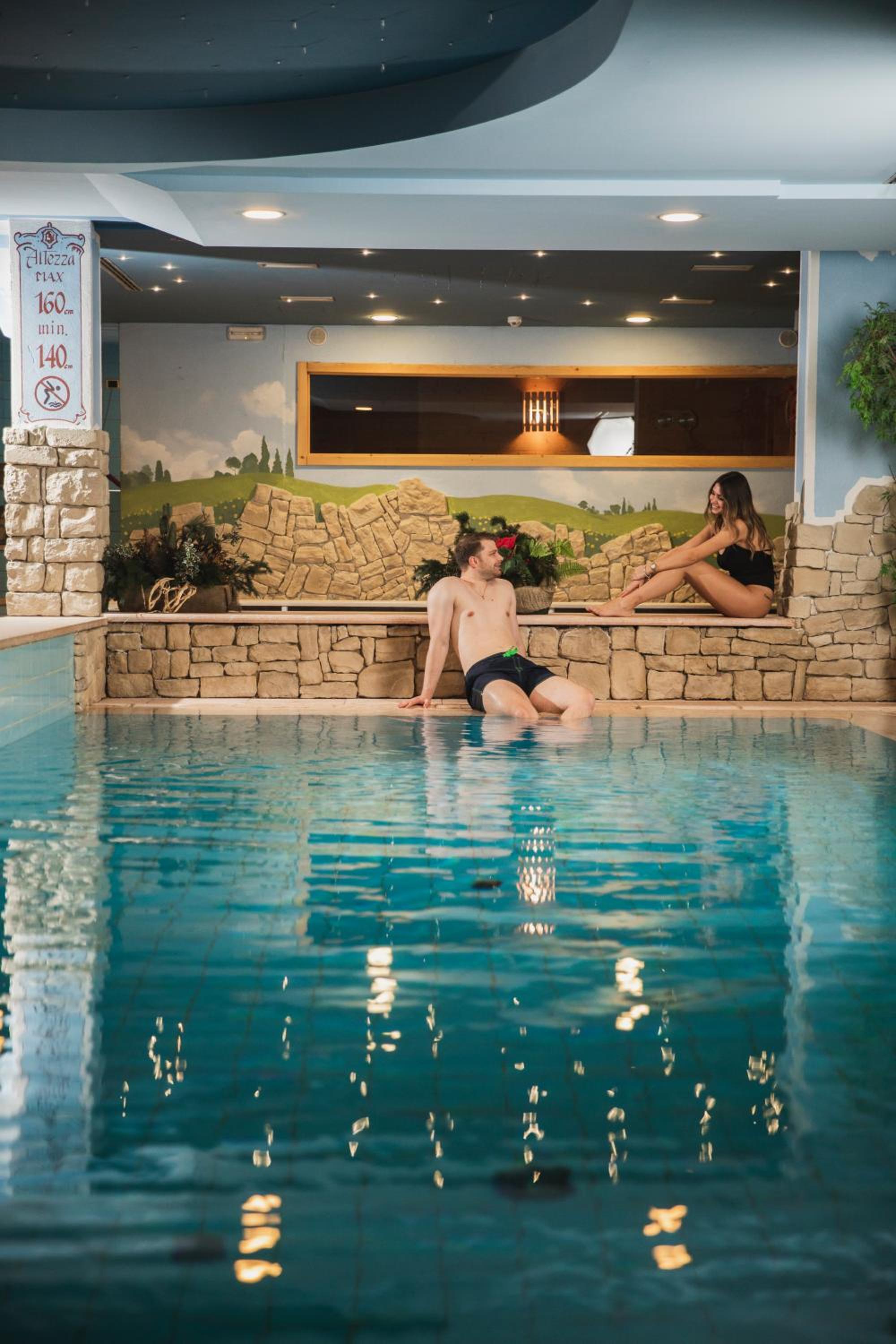 A nice wellness area, plus an outdoor spa and sauna just a few meters away access via neighboring hotel , made it perfect after skiing.