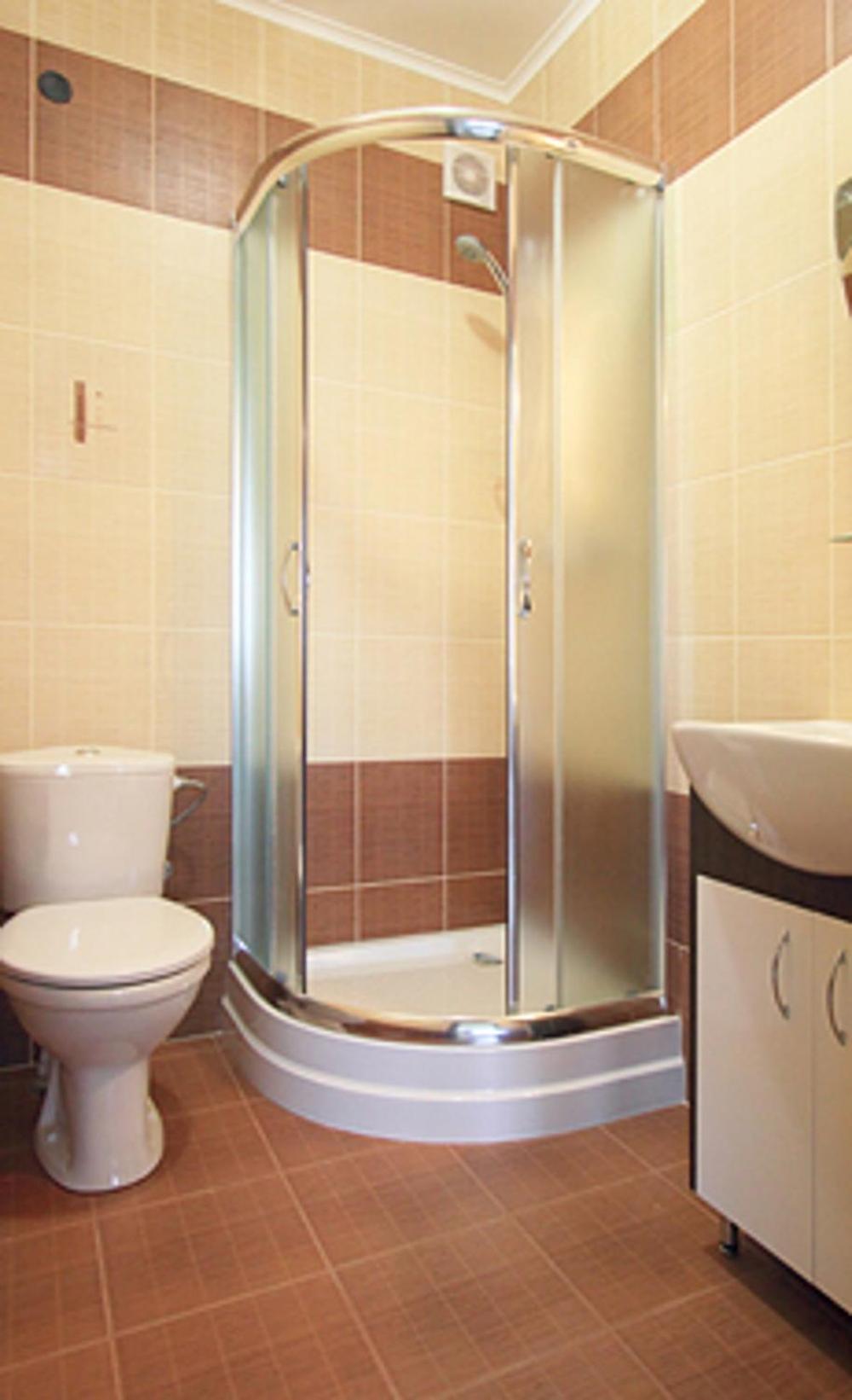 towels look very greyish, no shower gel/shampoo in the shower tub