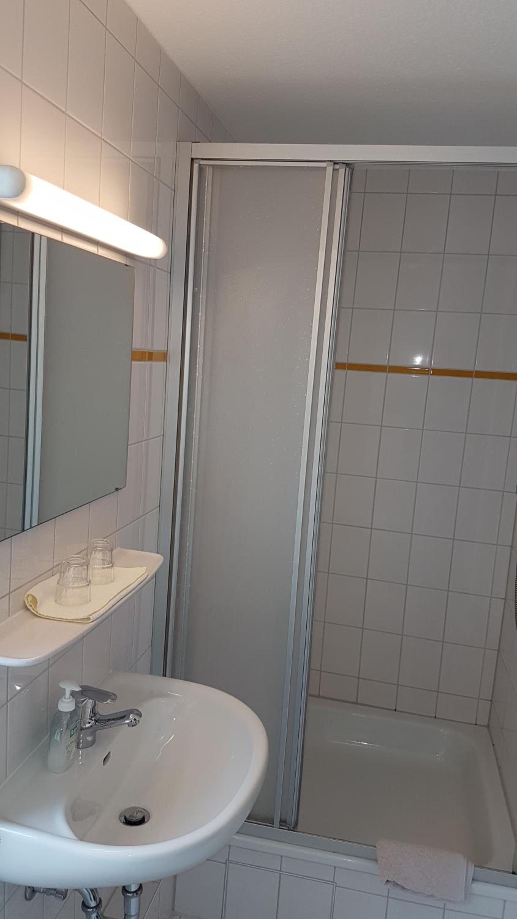 Zimmer ausreichend gross, Bett bequem, Frühstück gut. Parkplatz vorhanden und kostemfrei.