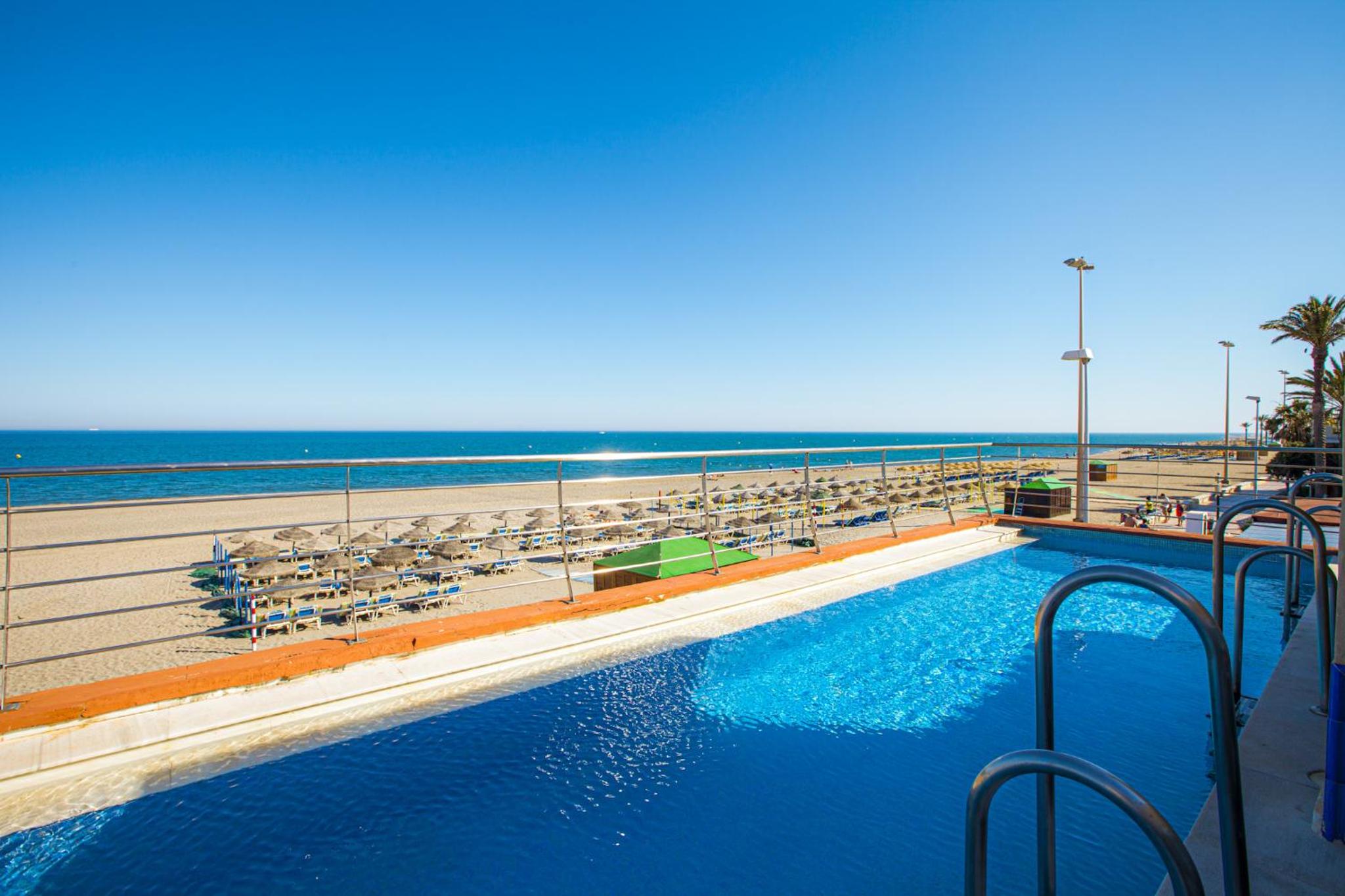 Playasol Aquapark & Spa Hotel in Roquetas de Mar offers stunning sea views and a pool with exciting water slides, perfect for a fun-filled vacation.