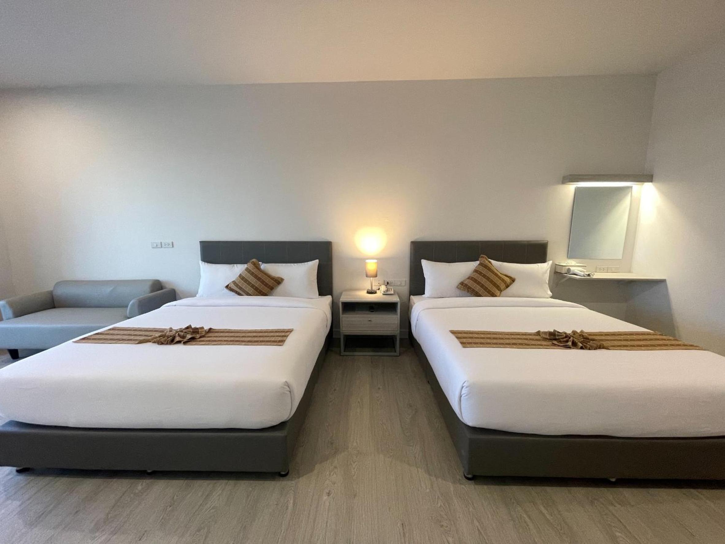 The Grandpa Resort Lamphun Chiangmai offers a refreshing outdoor swimming pool and a well-equipped fitness centre for guests to unwind and stay active during their stay.