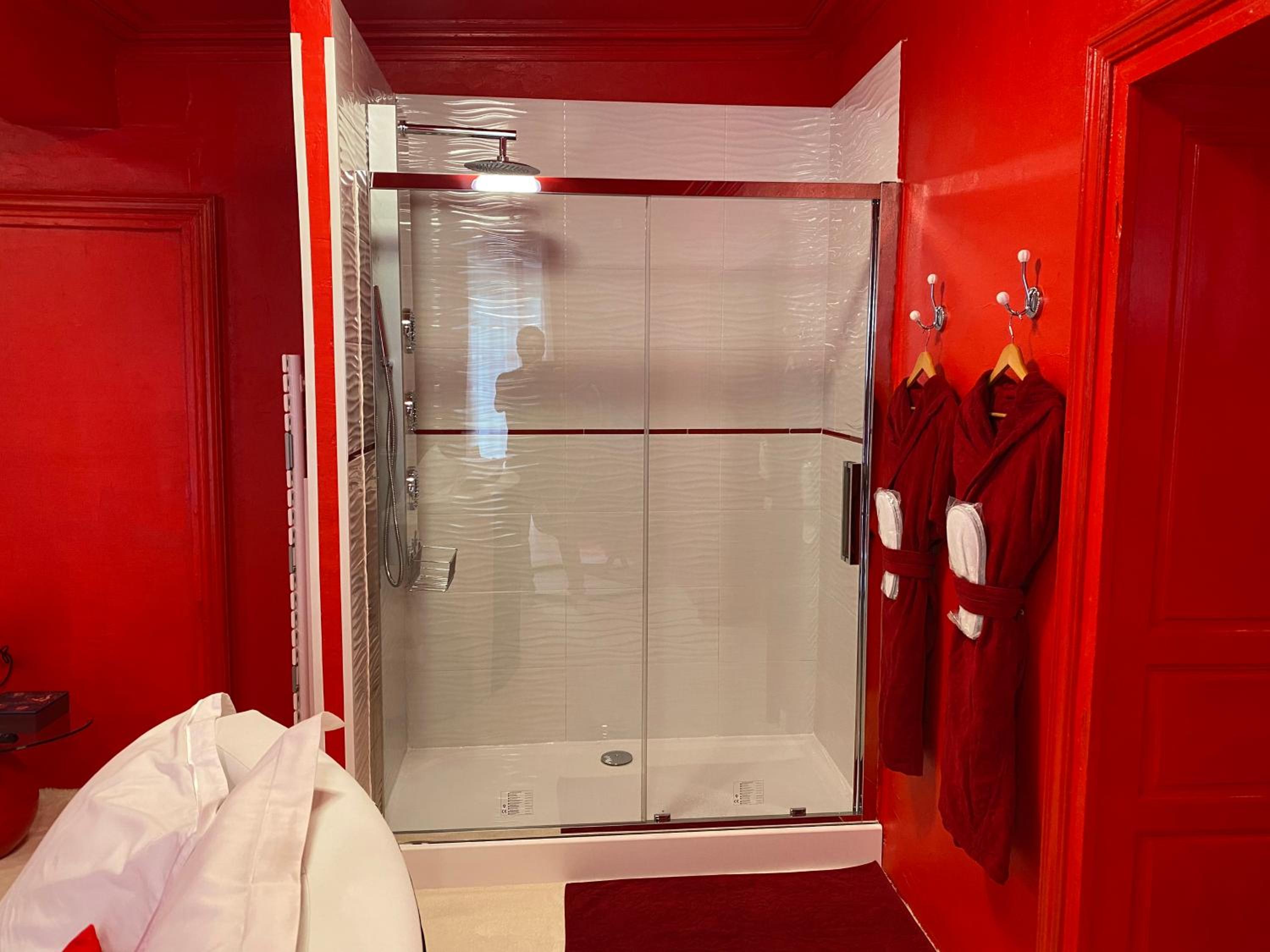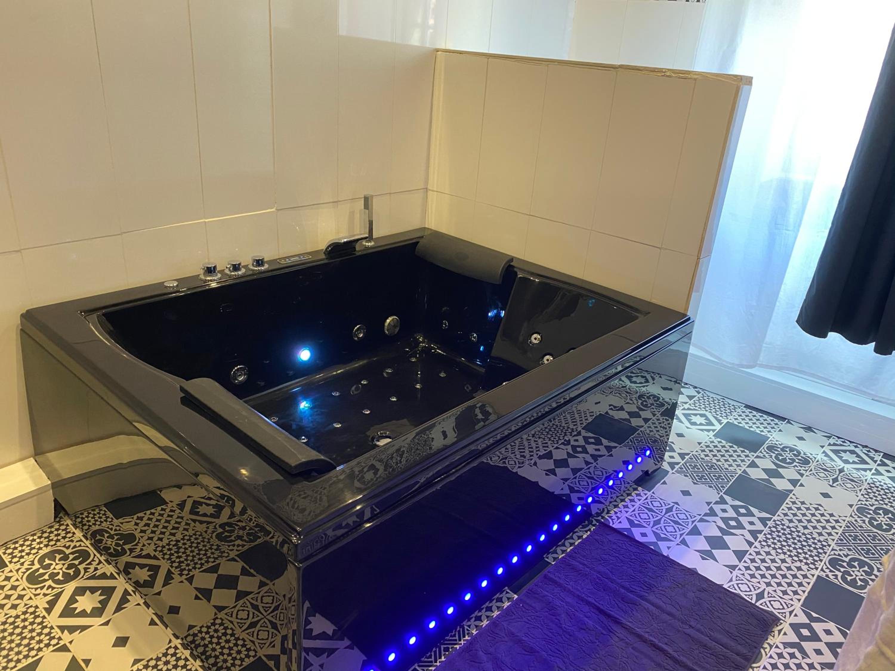 The guest house offers well-appointed units featuring a seating area, flat-screen TV, and private bathroom with a hot tub. Each room is equipped with modern conveniences such as a desk and kettle for added comfort.