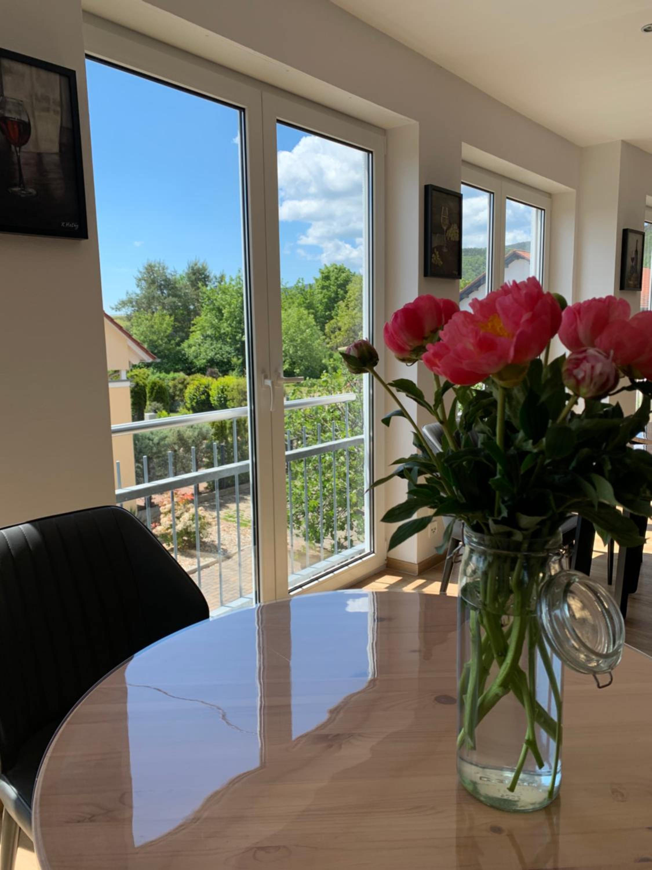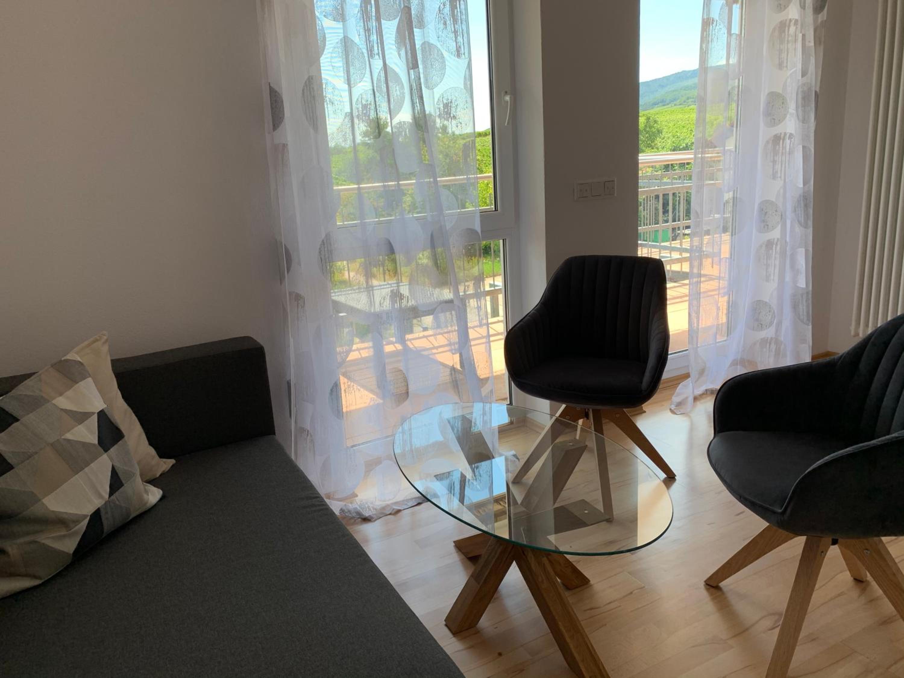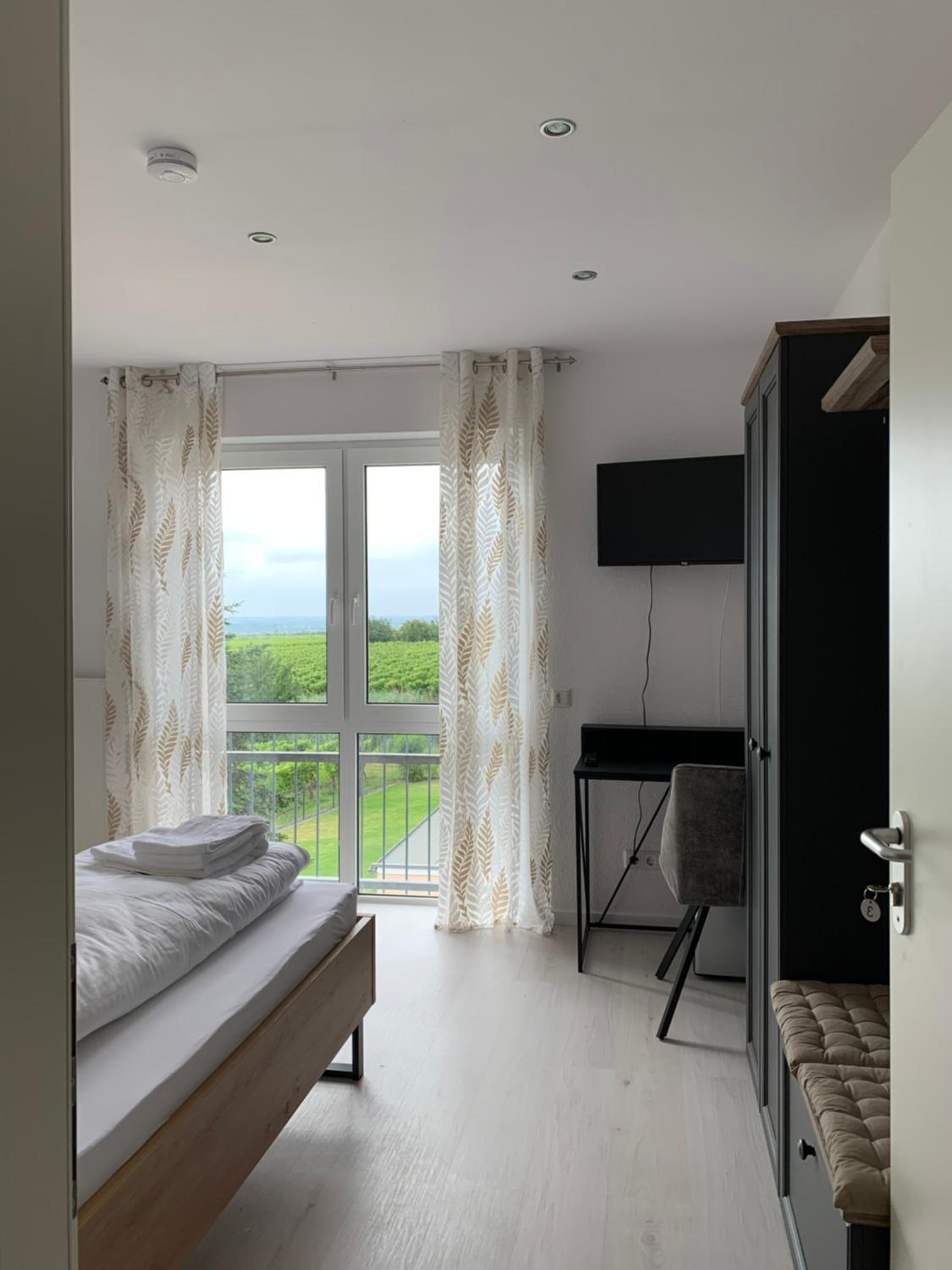 Großes Zimmer, Bad und schöner Balkon mit Blick auf die Weinberge, reichhaltiges Frühstück.
