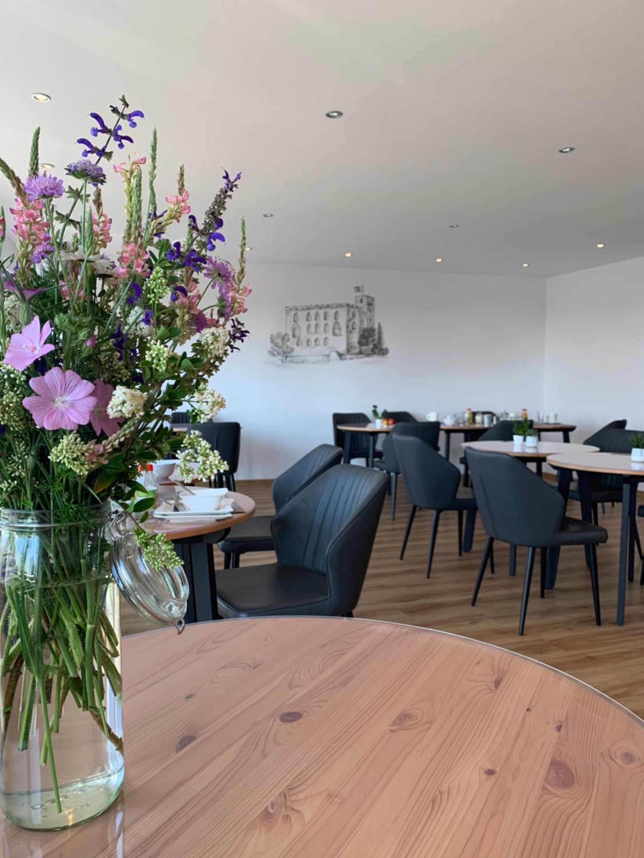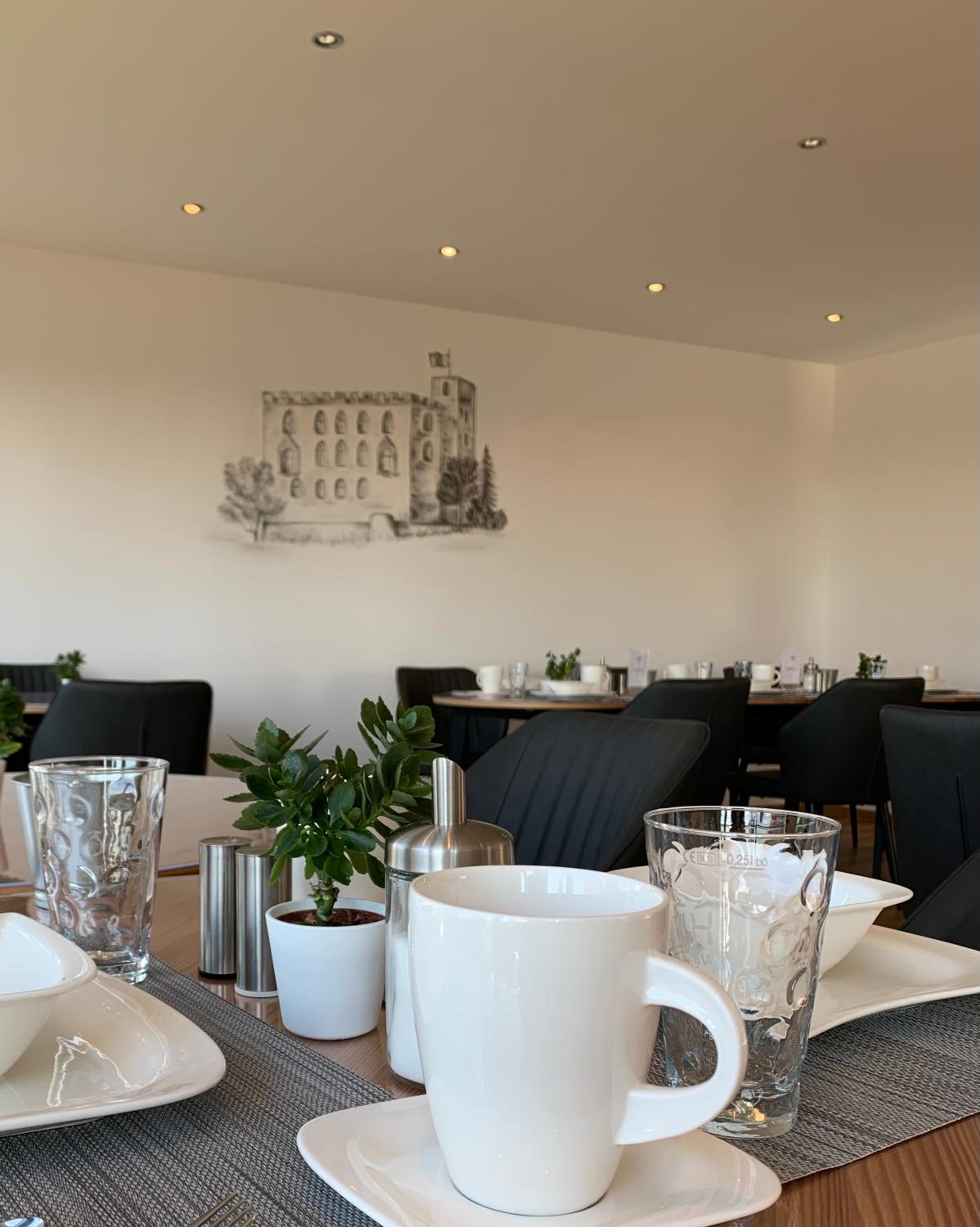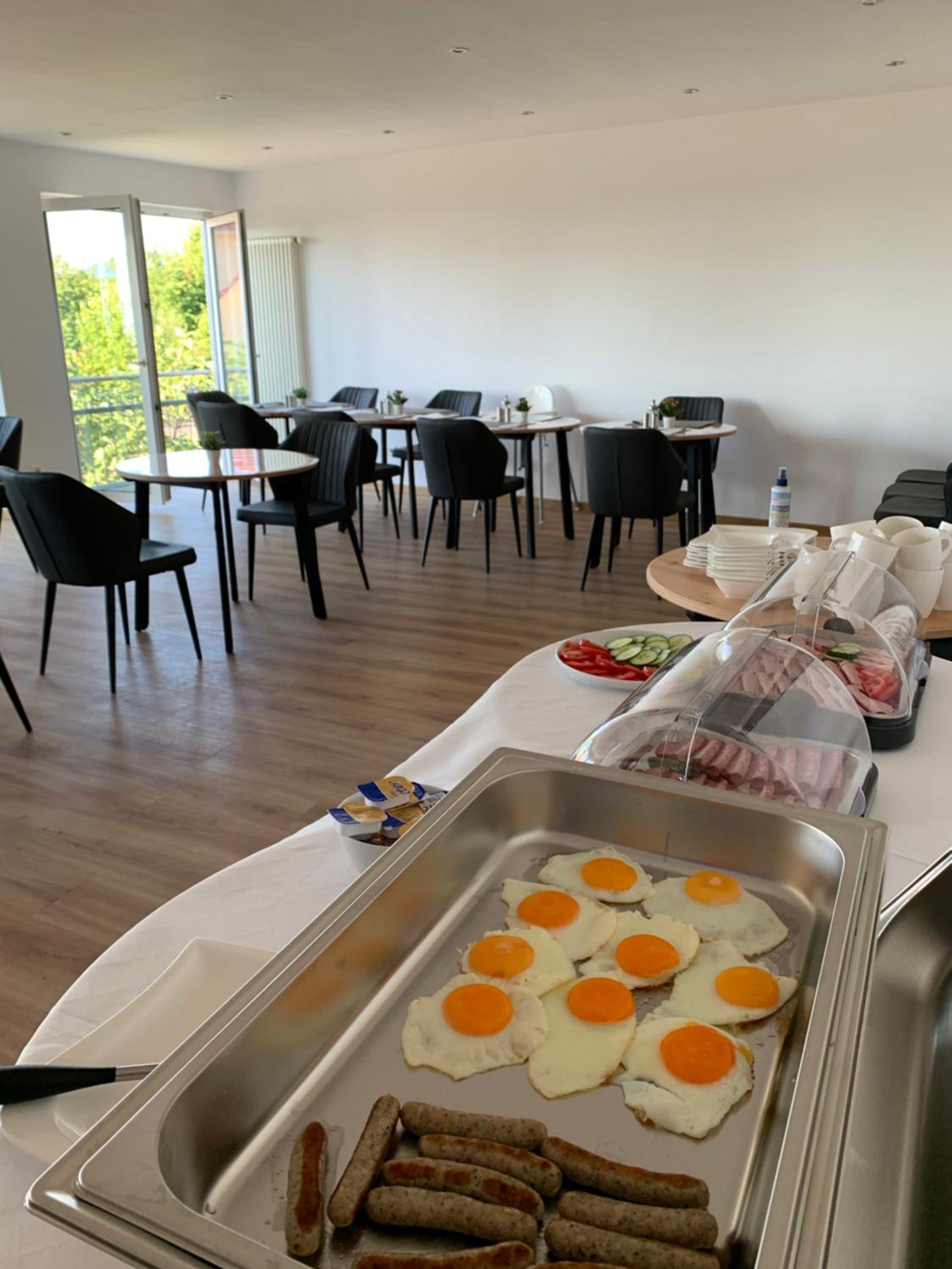 Schöner heller Frühstücksraum mit Blick ins Freie.
