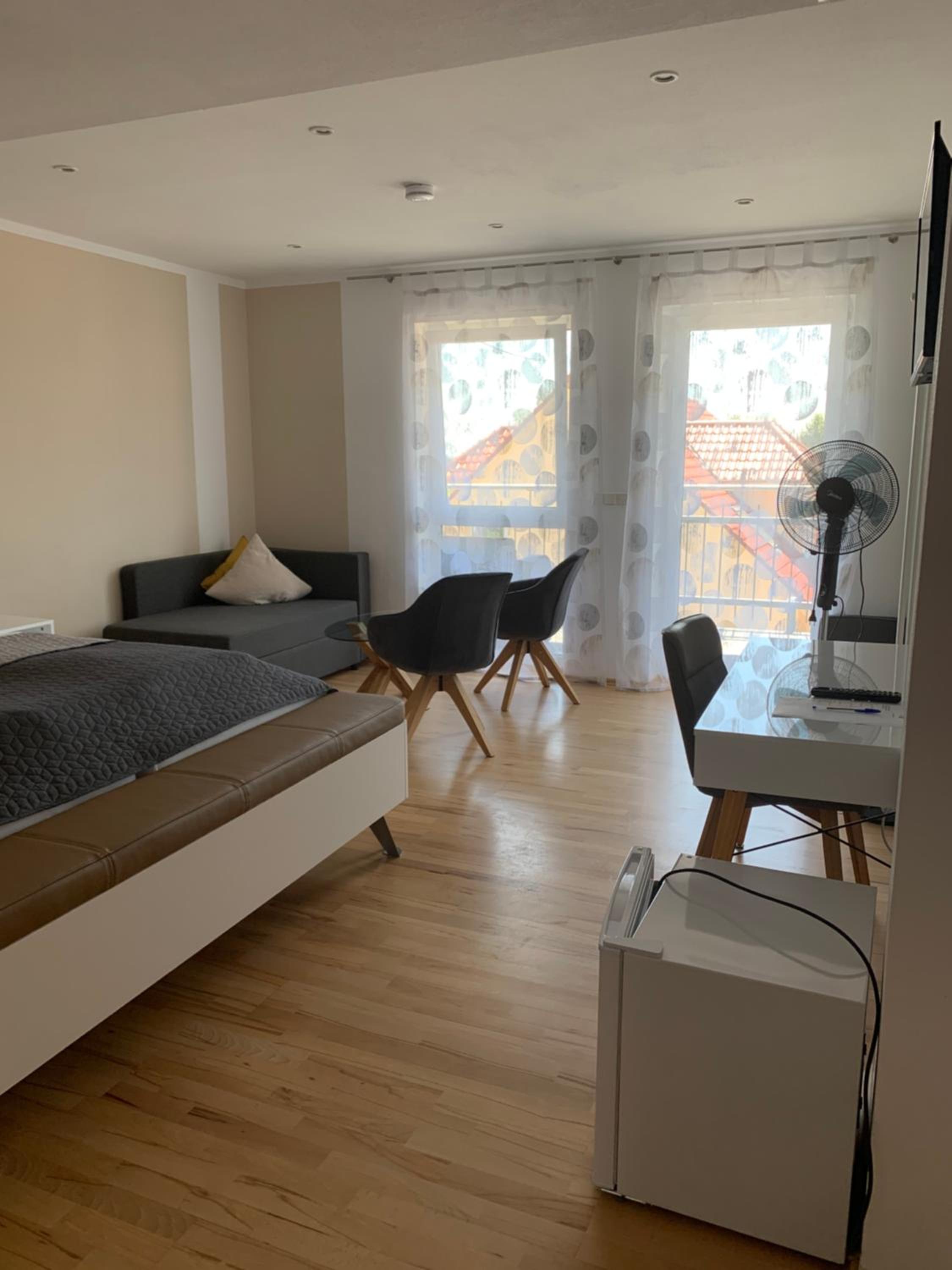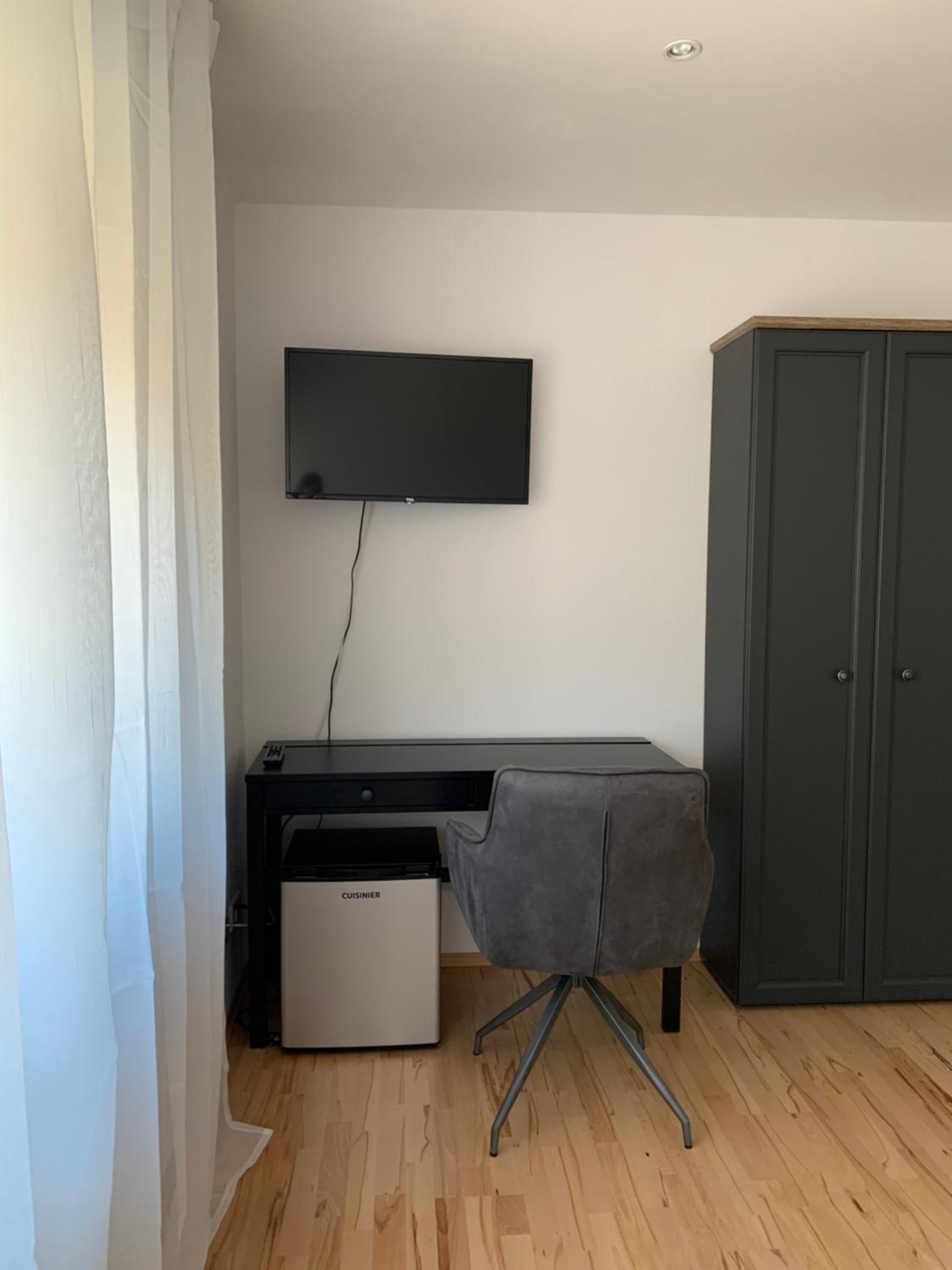 Der "Wohnraum" ist leider nicht ganz soo gemütlich. Eine Ecksofa könnte das optimieren, noch dazu, wo es nur dort einen Fernsehern gibt, welcher an der Wand hängt und dann immer in Position gebracht werden muss. Mit Ecksofa nicht nötig. Ein Kühlschrank ist vorhanden, leider aber keine Kaffeemaschine oder ein Wasserkocher für Tee. Das würde das generelle positive Gesamtgefühl noch runder machen.