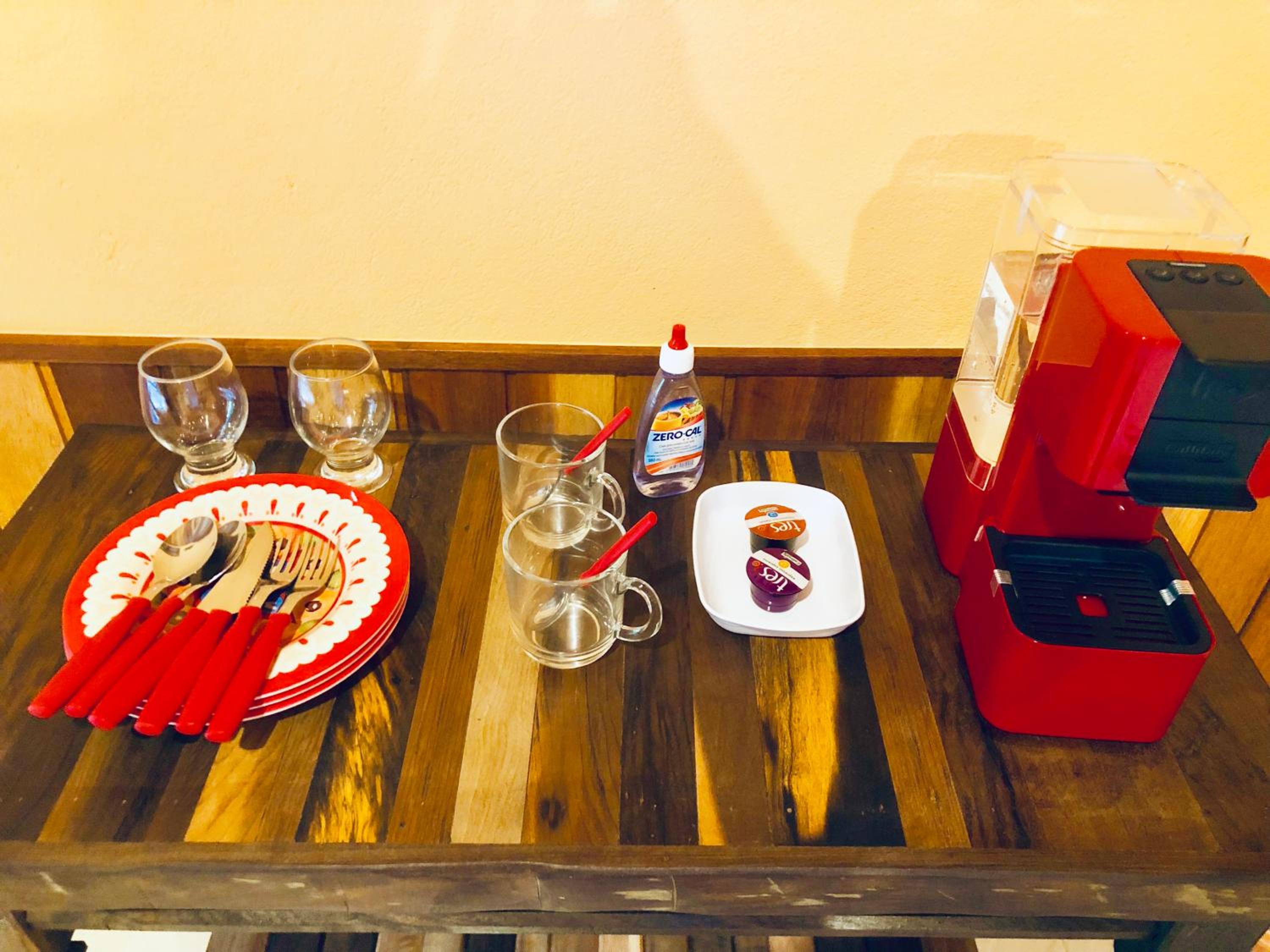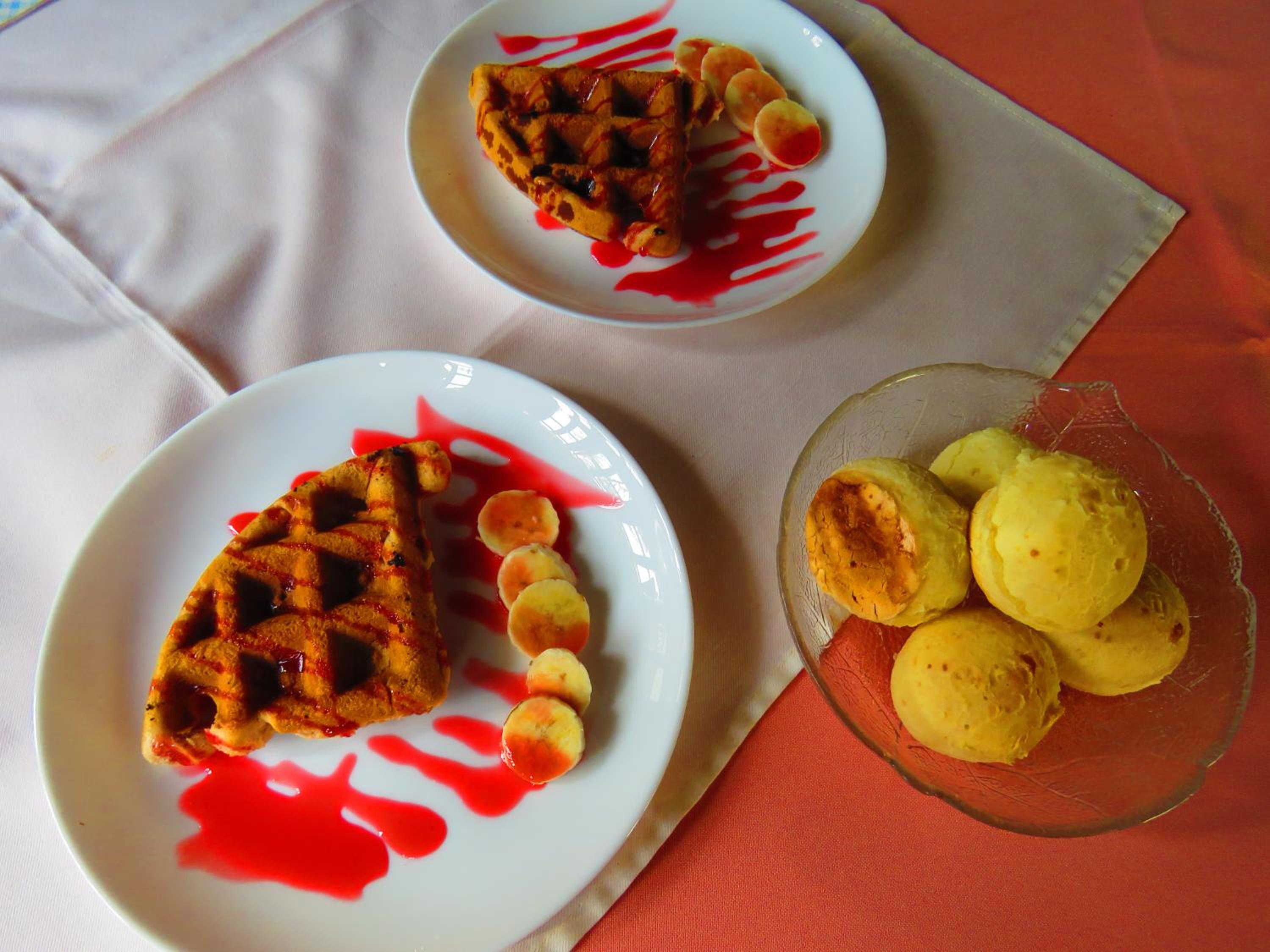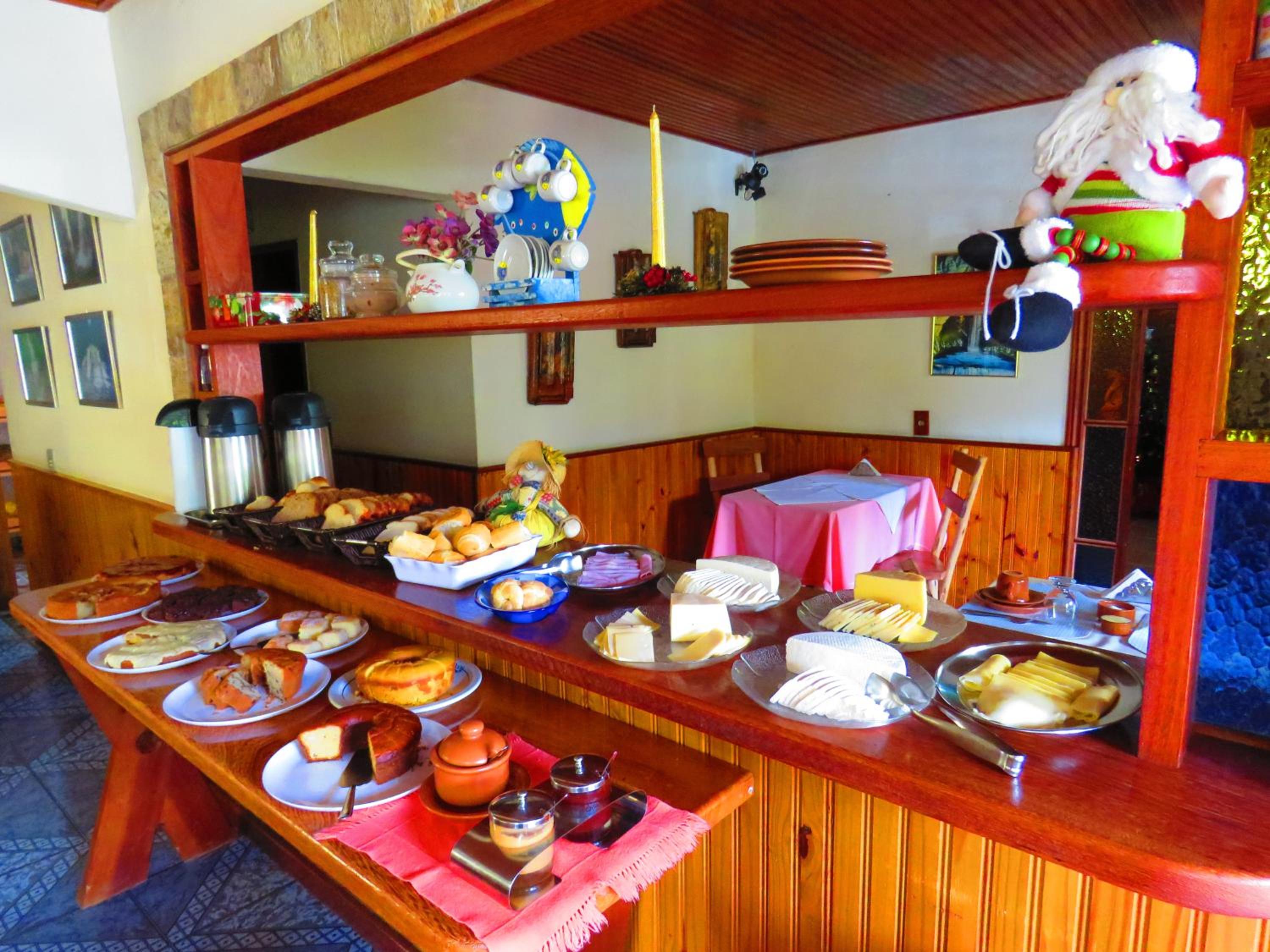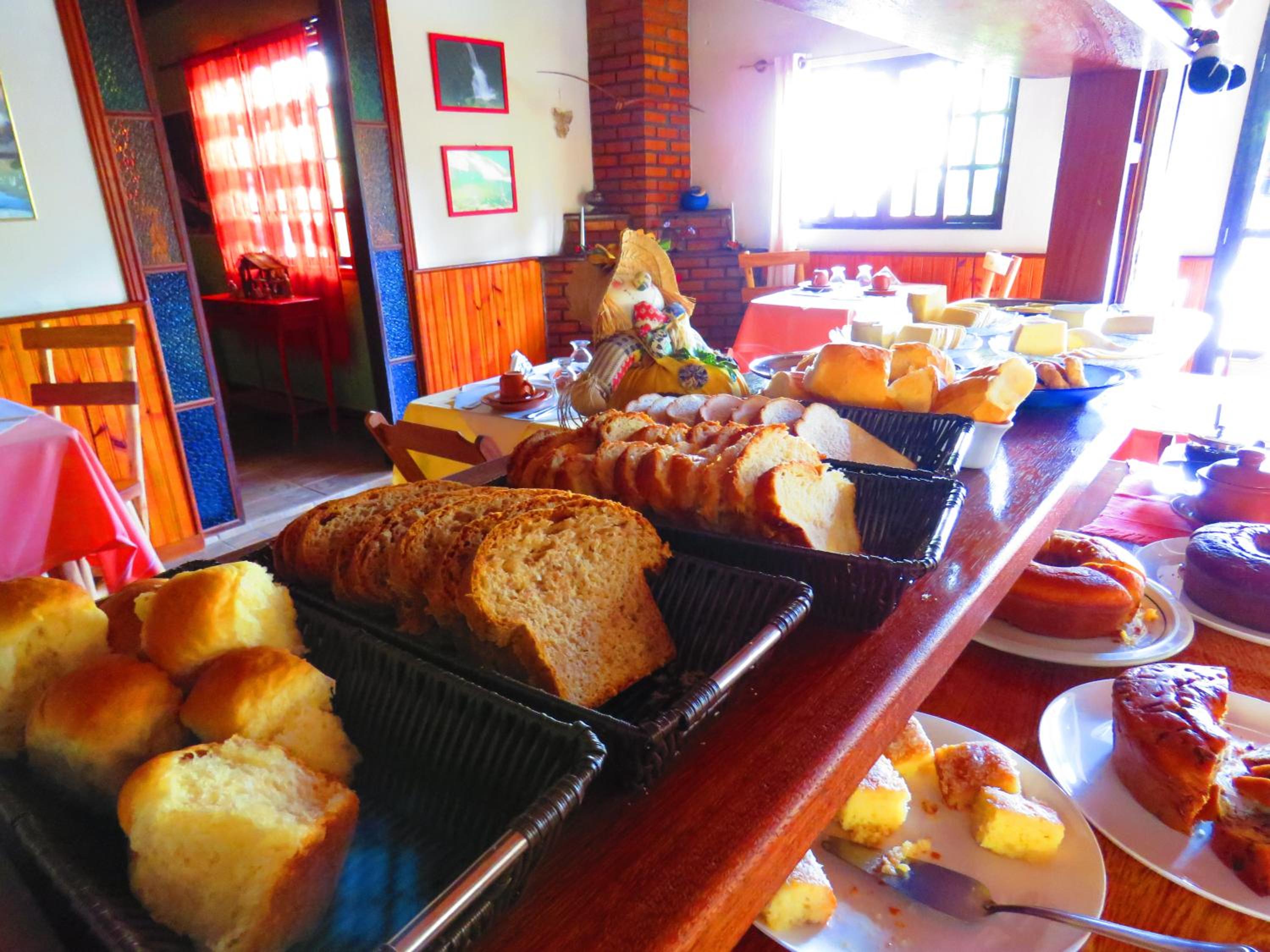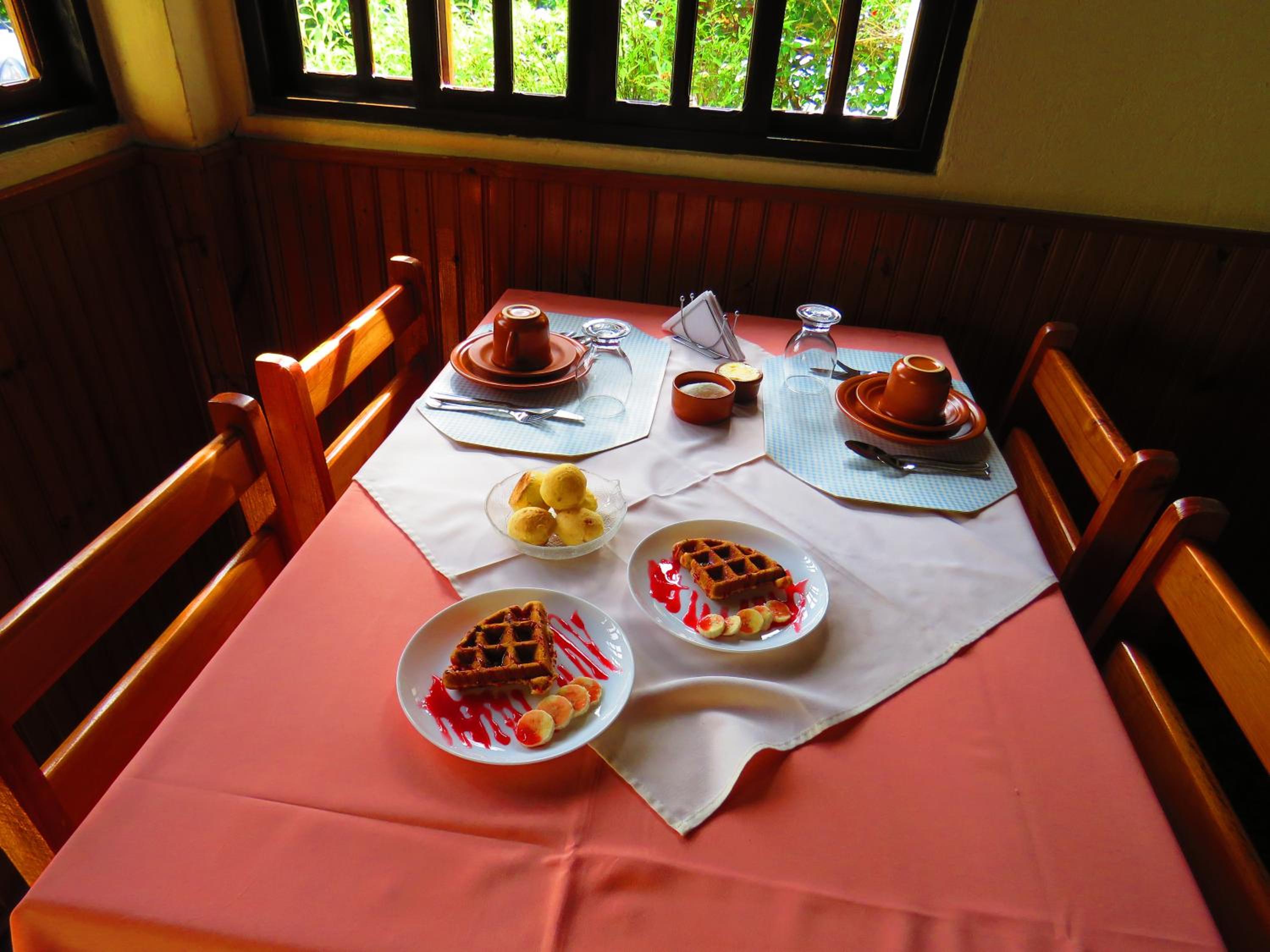 Café da manhã, localização do chalé.