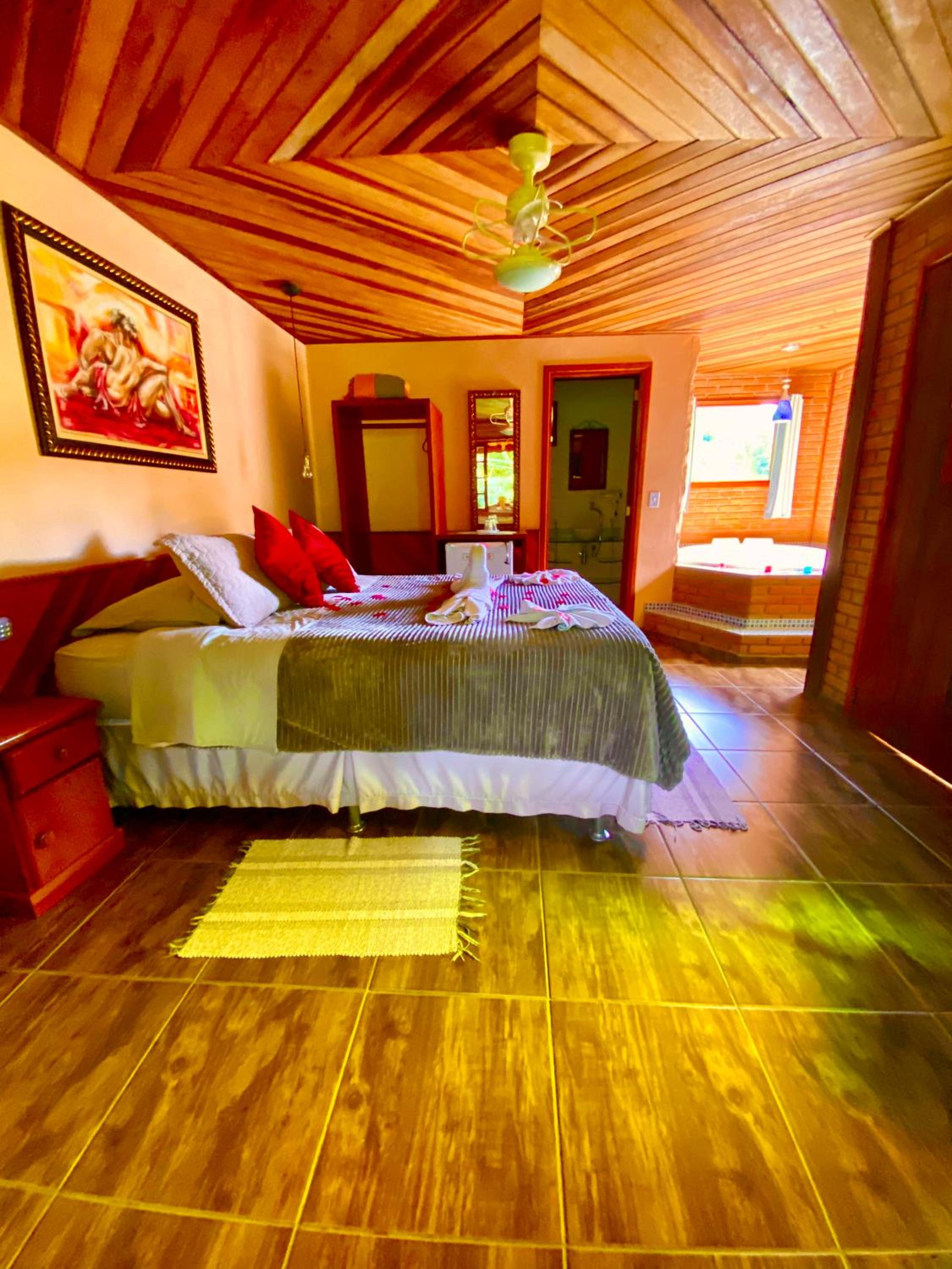 Toda estadia em si foi maravilhosa a limpeza do espaço estava ok. Jacuzzi estava limpa o banheiro também. Café da manhã é maravilhoso e as meninas preparam um waff na hora quentinho. Um ambiente bem família em contato com a natureza. A parte externa possui uma jacuzzi onde ela só pode ser ligada às 12h no meu caso como eu estava indo embora não consegui aproveitar direito por conta do check-out, mas consegui aproveitar a piscina que também é maravilhosa. Mesmo assim consegui tirar Belas fotos na vista do alto da Pousada Magia da Montanha.
