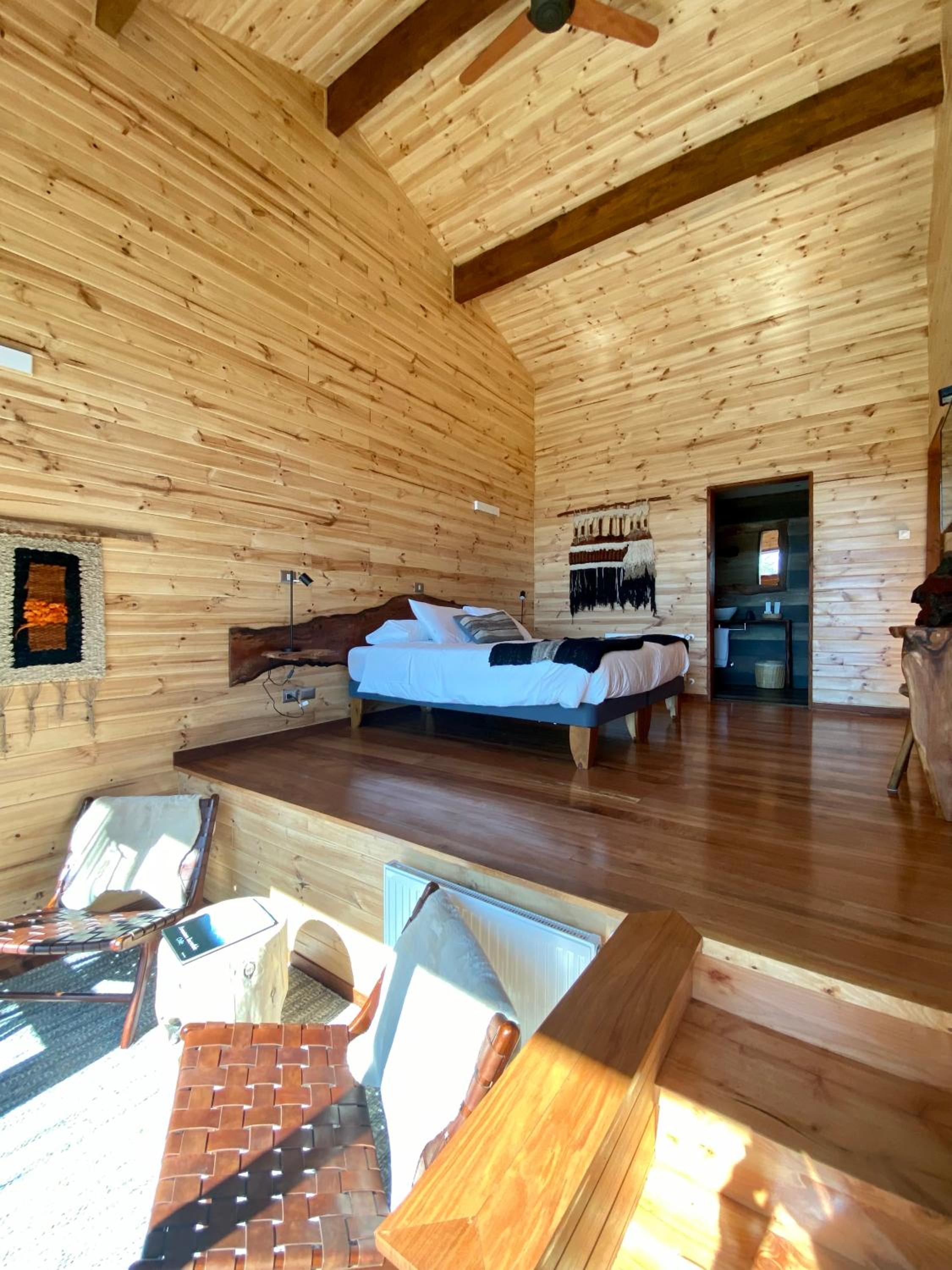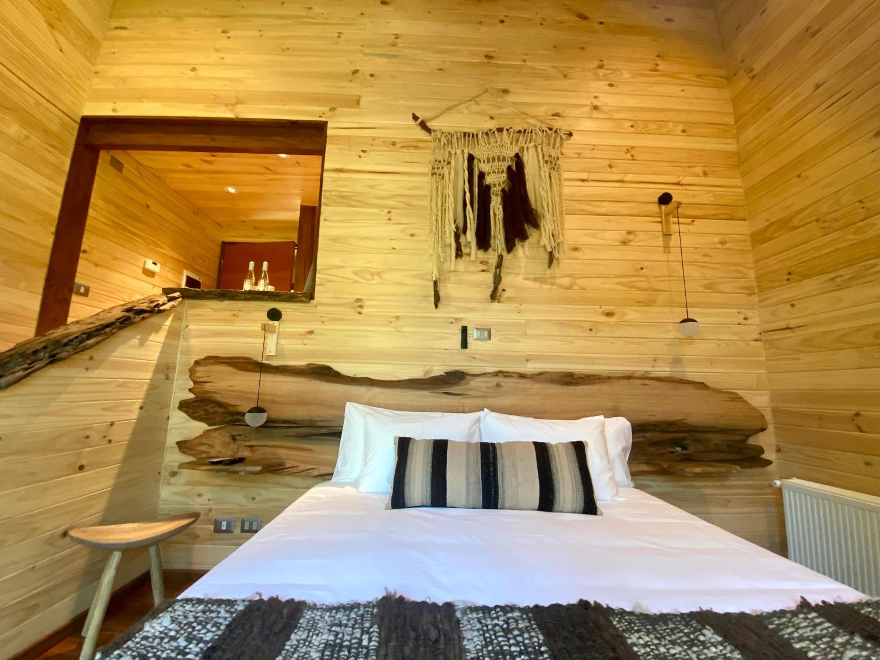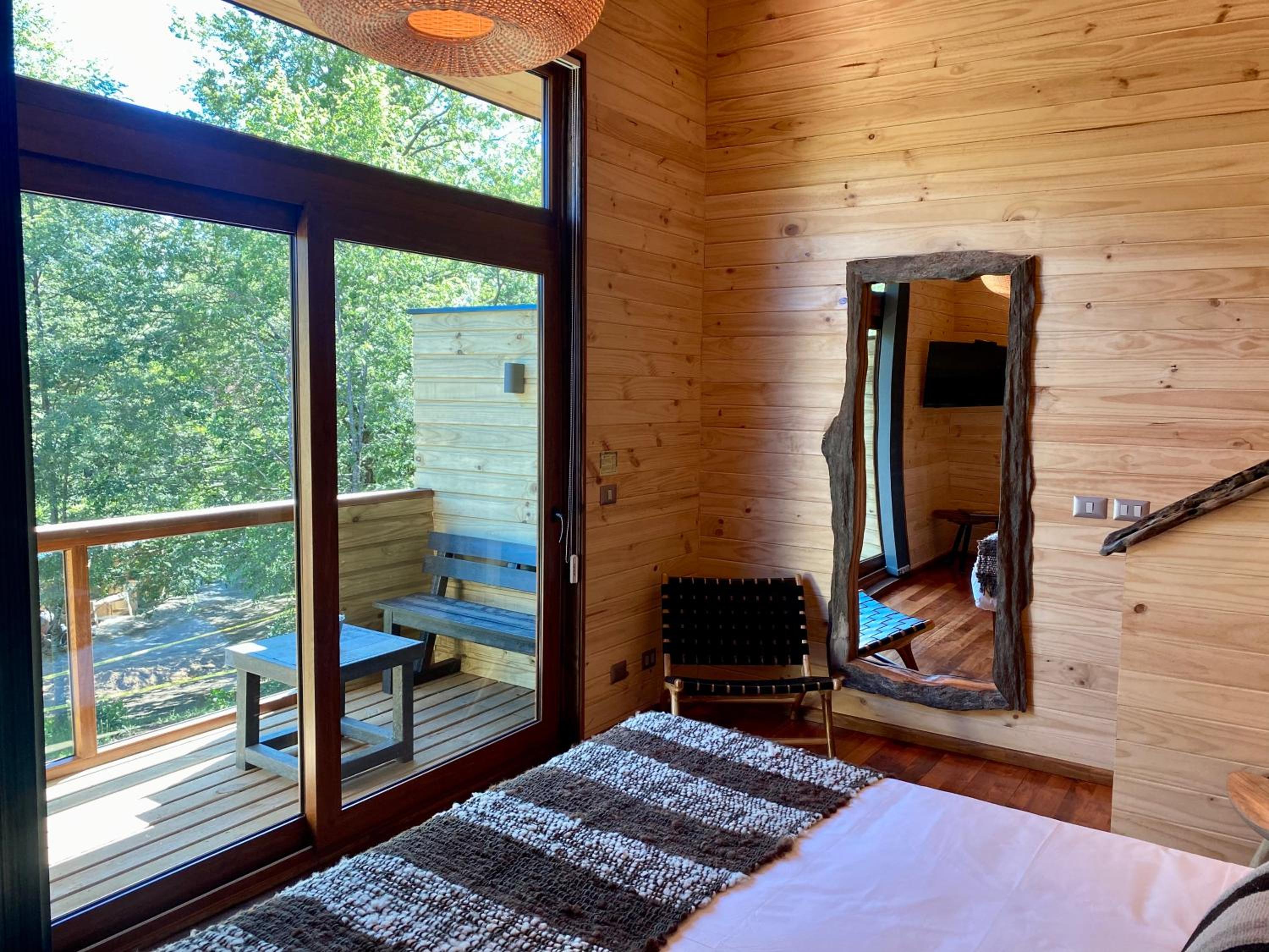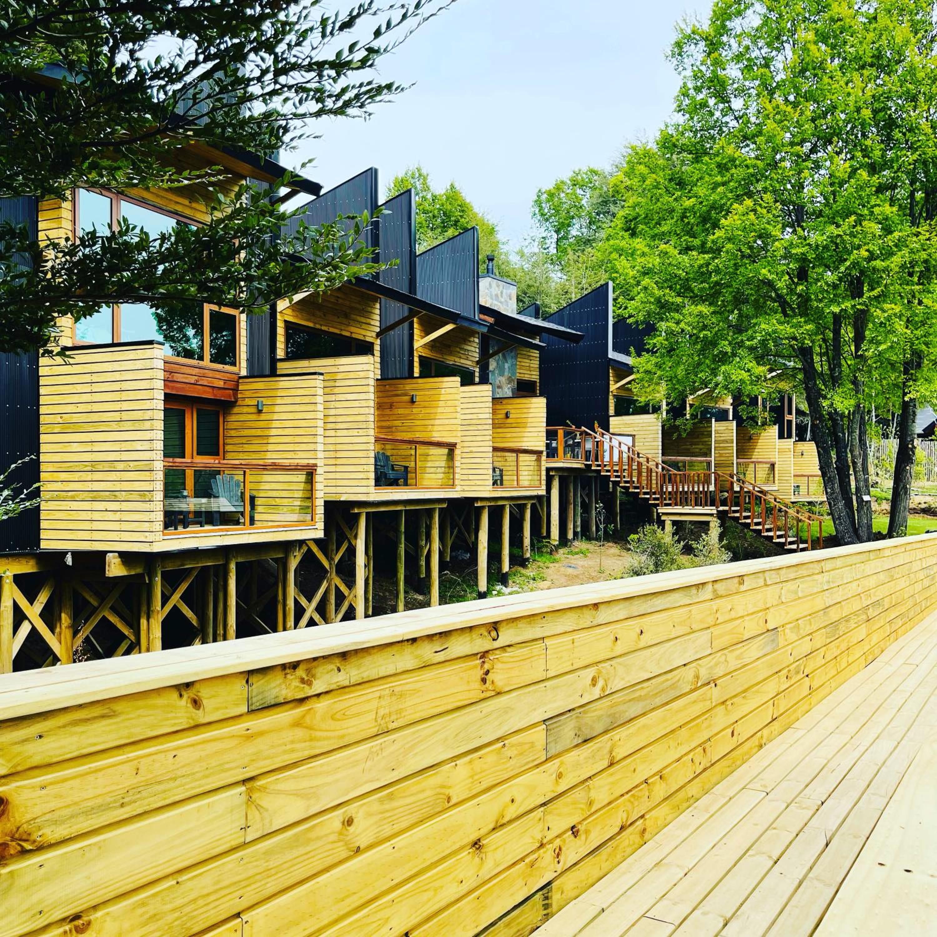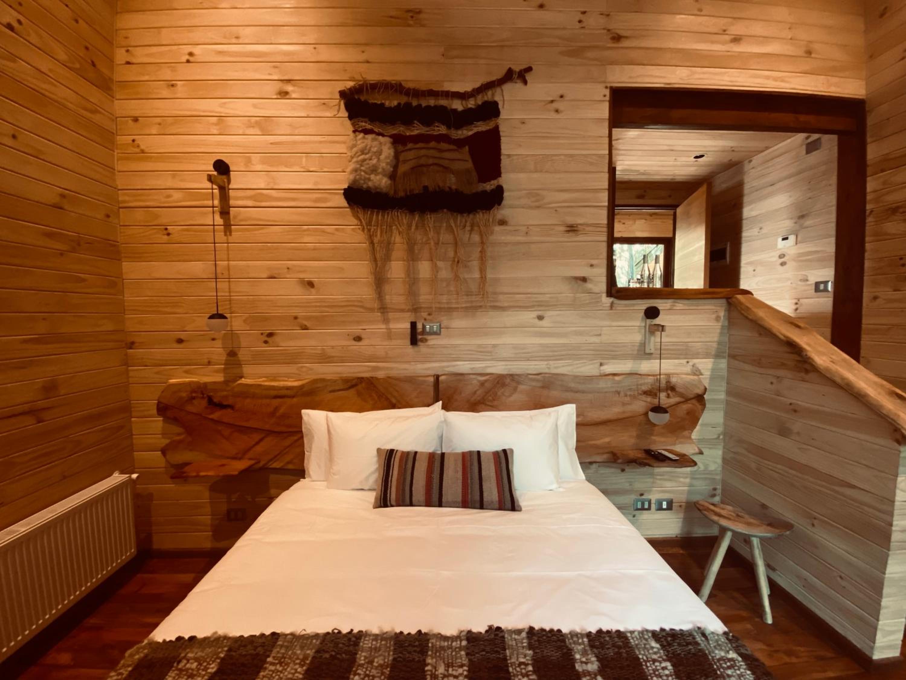 Unique boutique lodges in the middle of the forest and graciously far away from the touristy areas by the lake. Incredible, all-wood sustainable architecture, comfortable lodges with private balcony, scenic swimming pool with breathtaking sunset views on the Andes. Best breakfast of our Chilean tour and good dining with ample choice of cocktails.