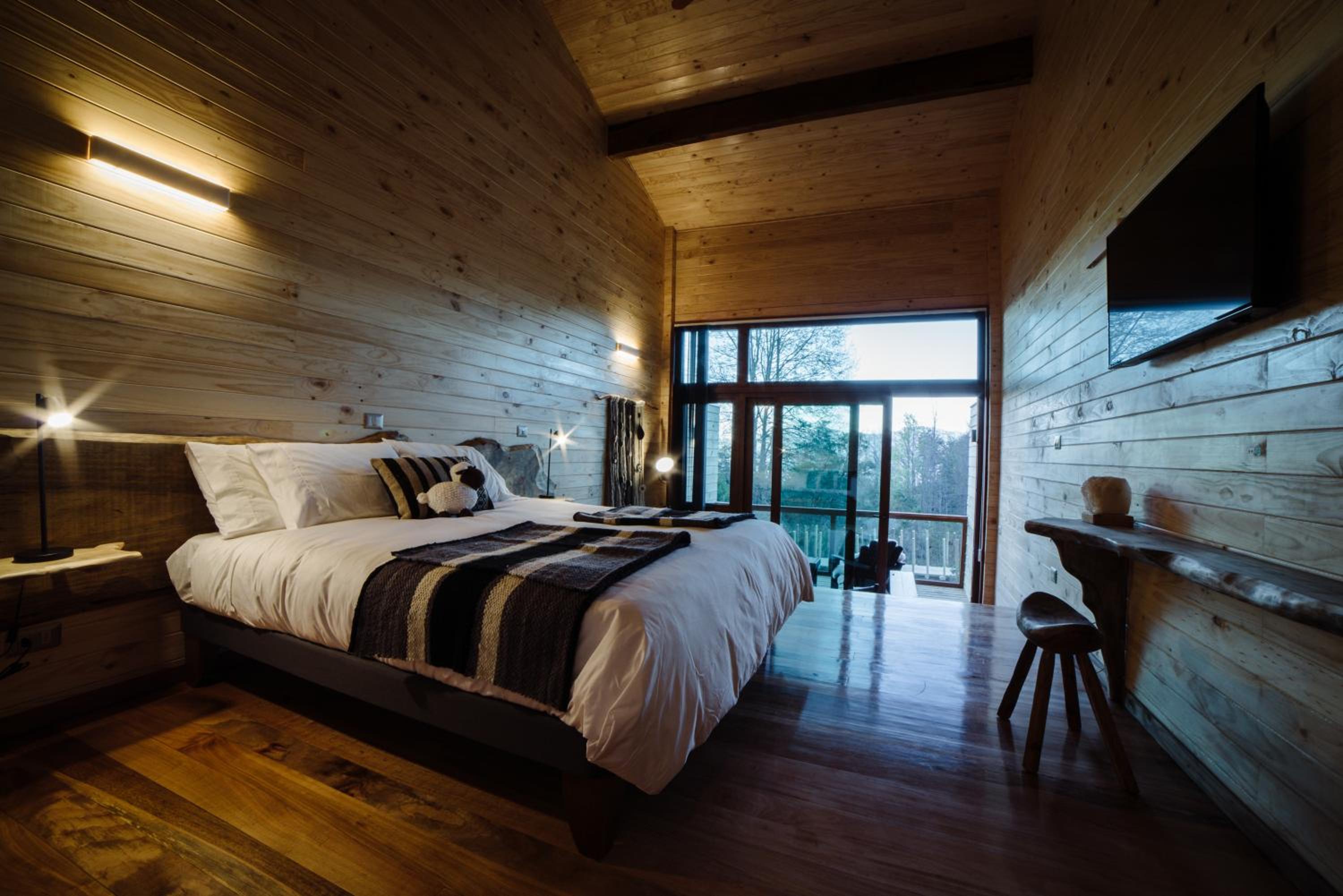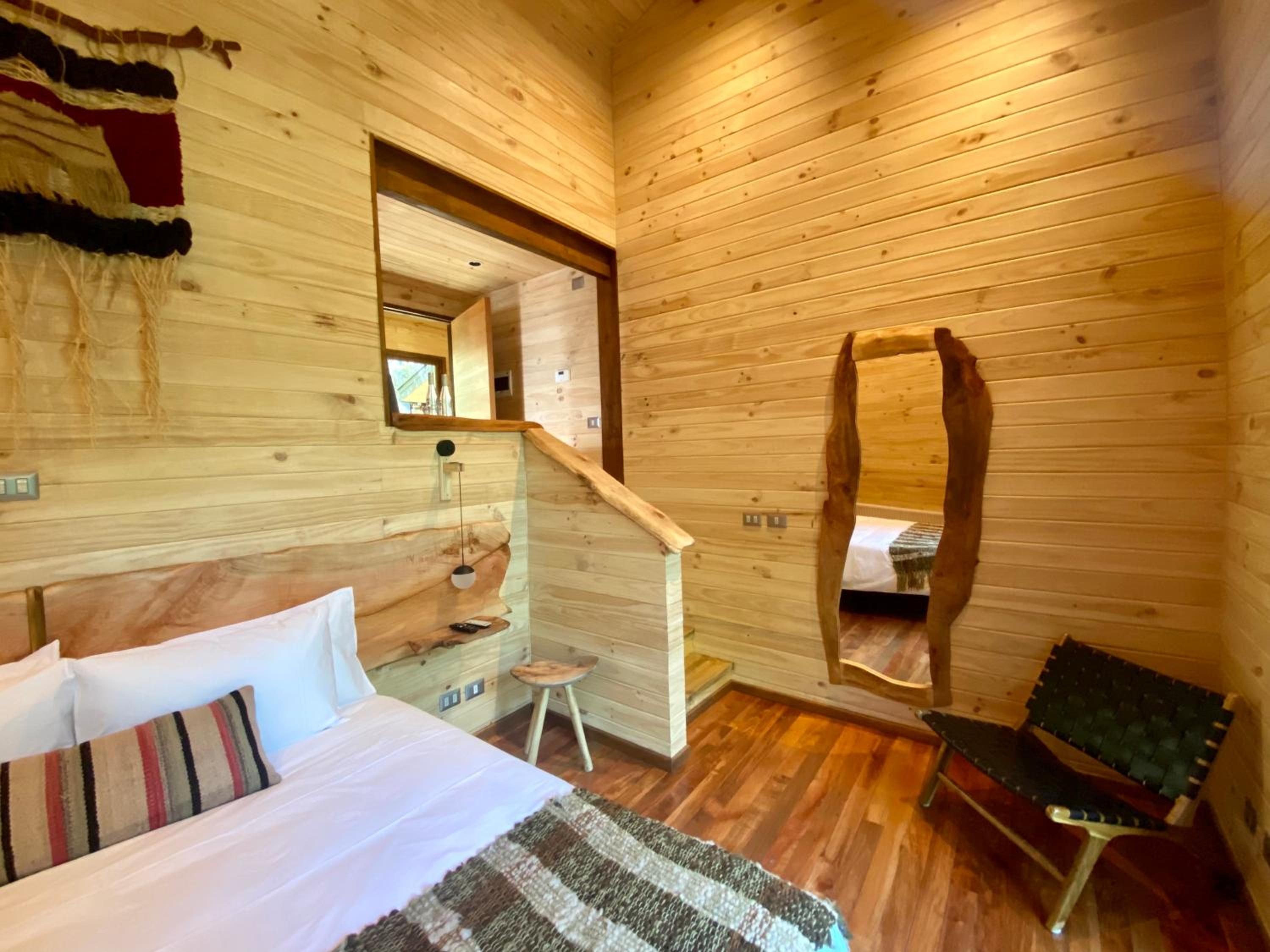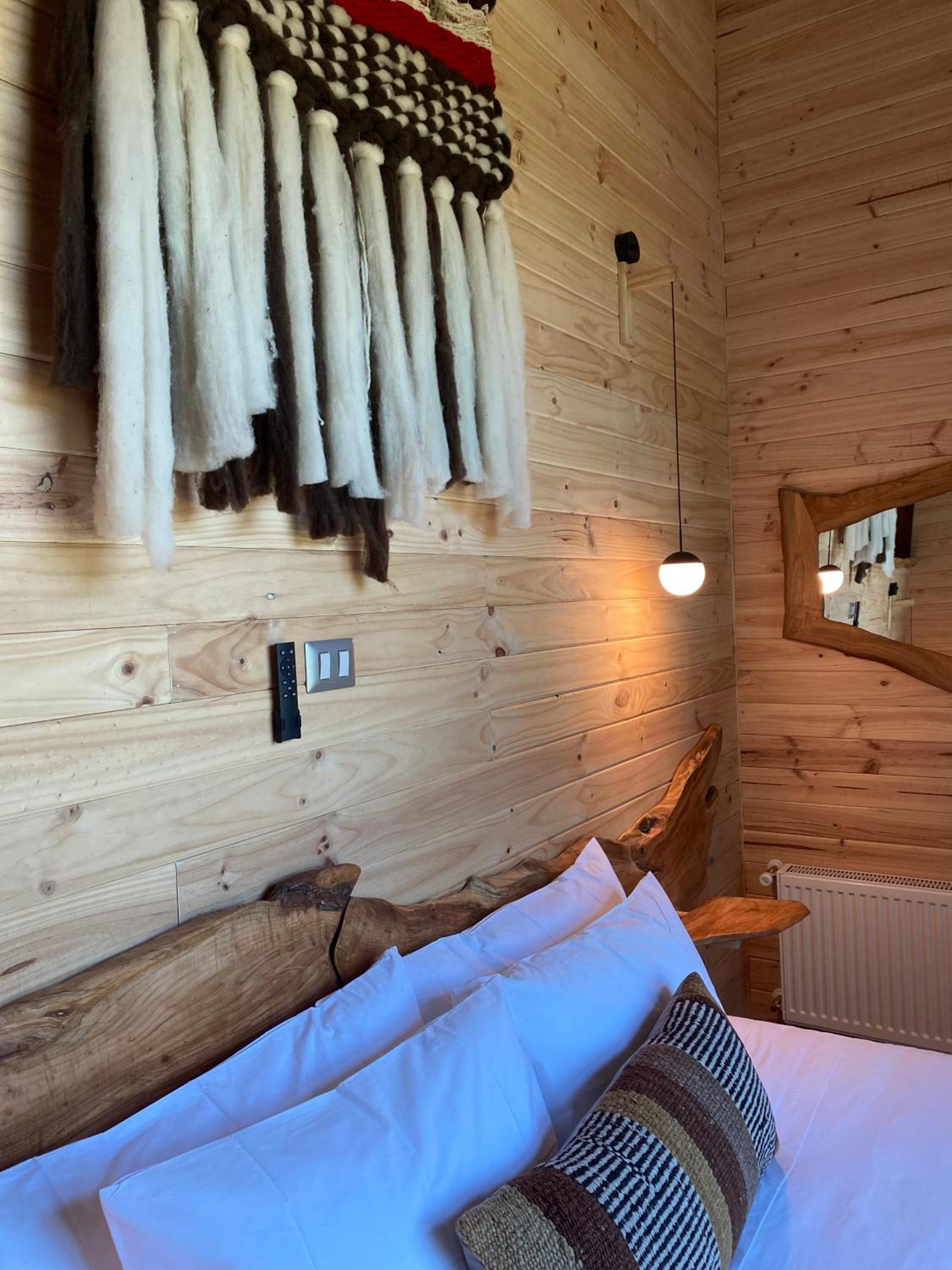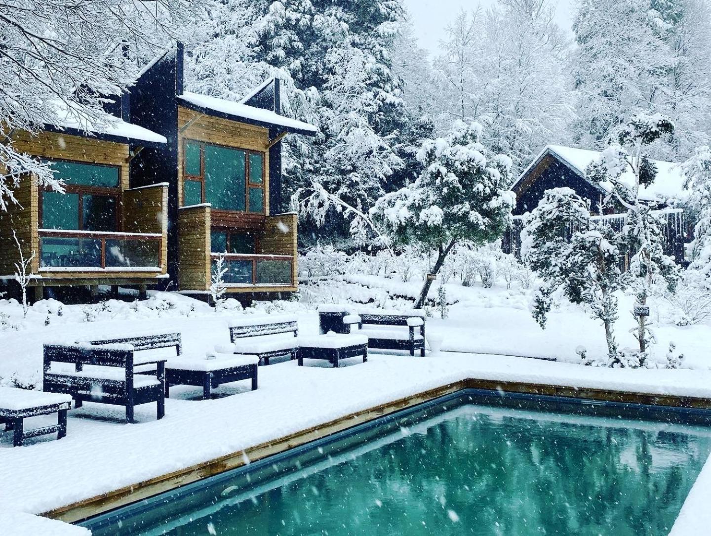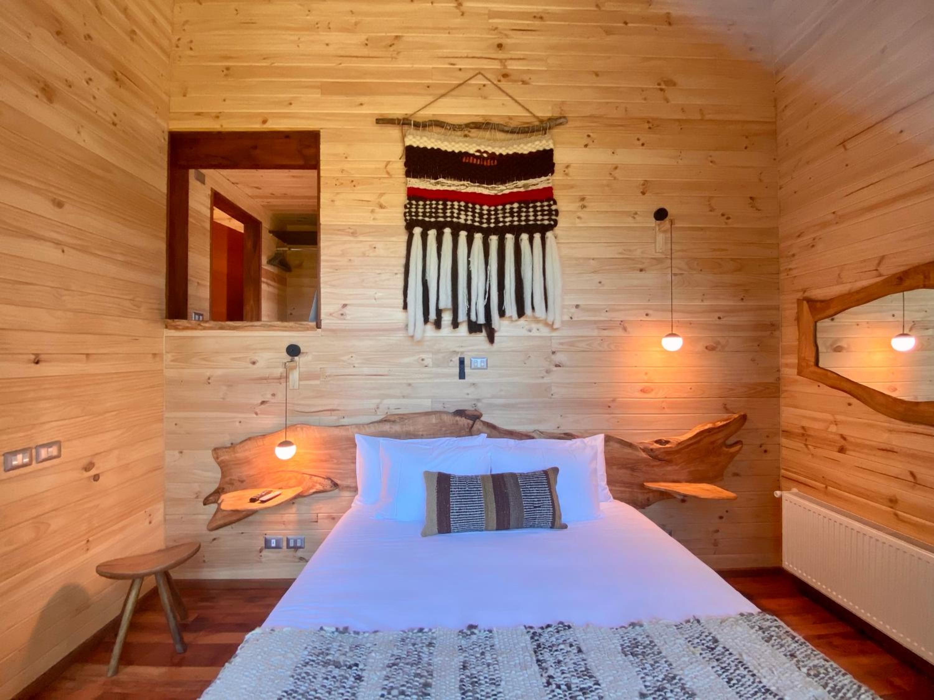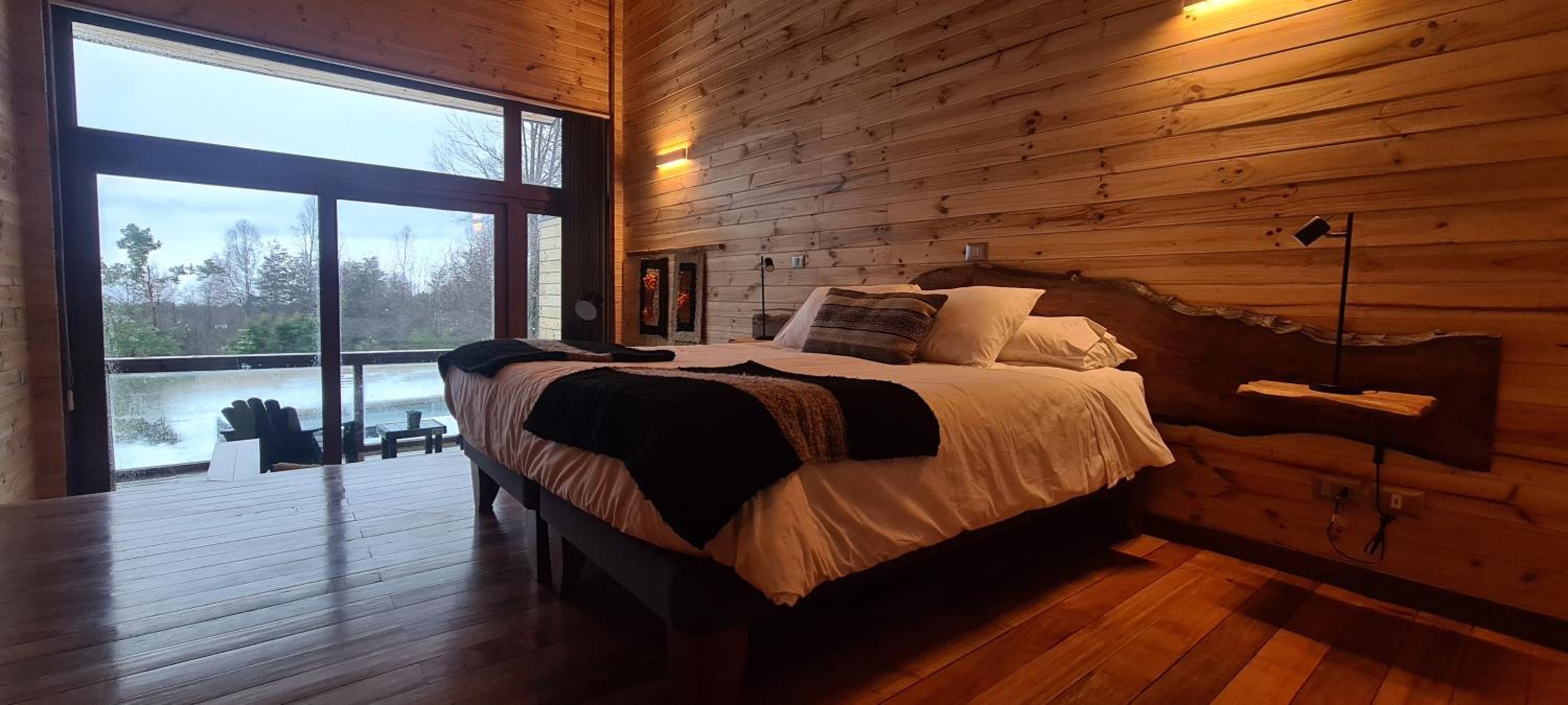 Unique boutique lodges in the middle of the forest and graciously far away from the touristy areas by the lake. Incredible, all-wood sustainable architecture, comfortable lodges with private balcony, scenic swimming pool with breathtaking sunset views on the Andes. Best breakfast of our Chilean tour and good dining with ample choice of cocktails.