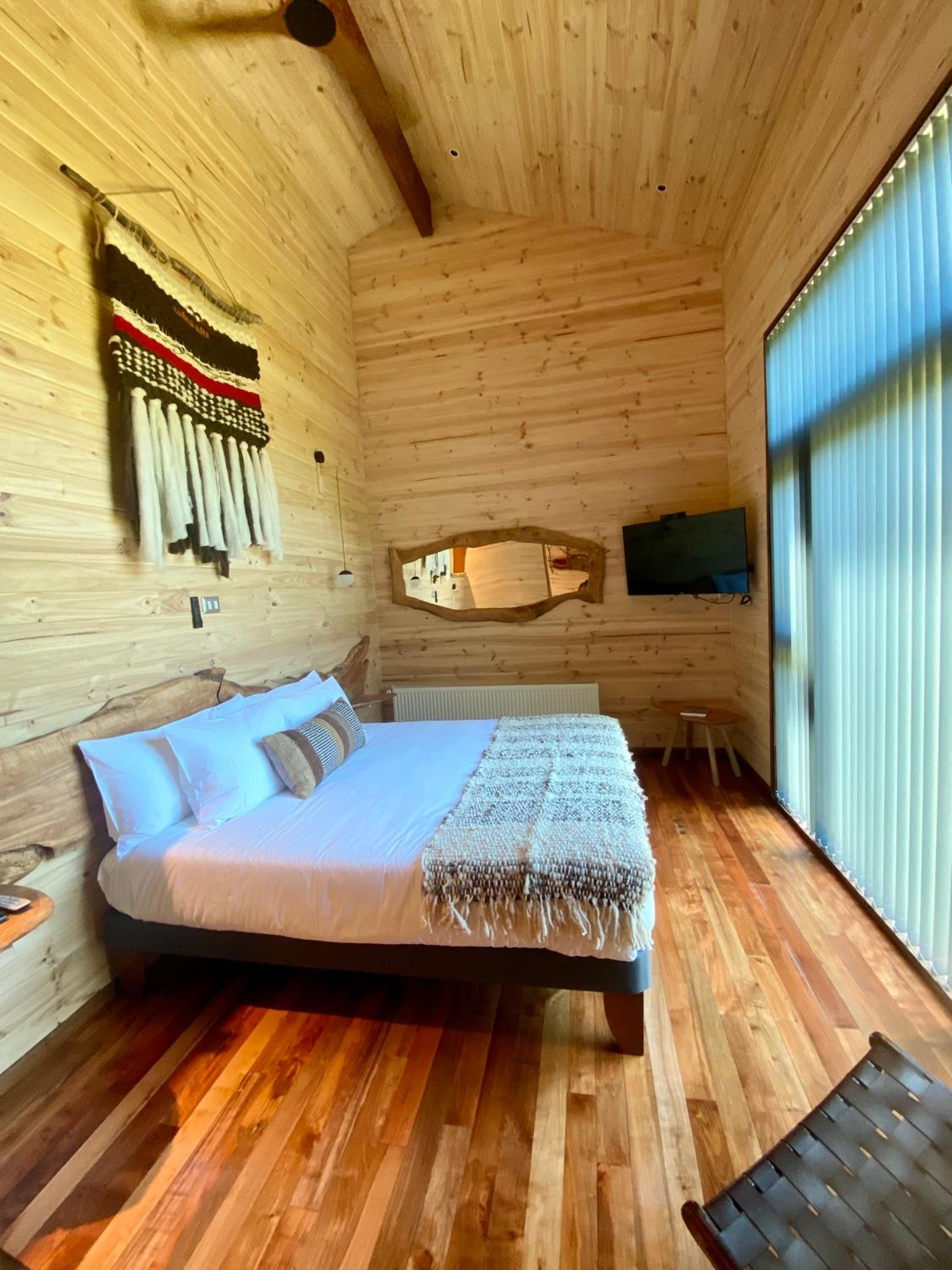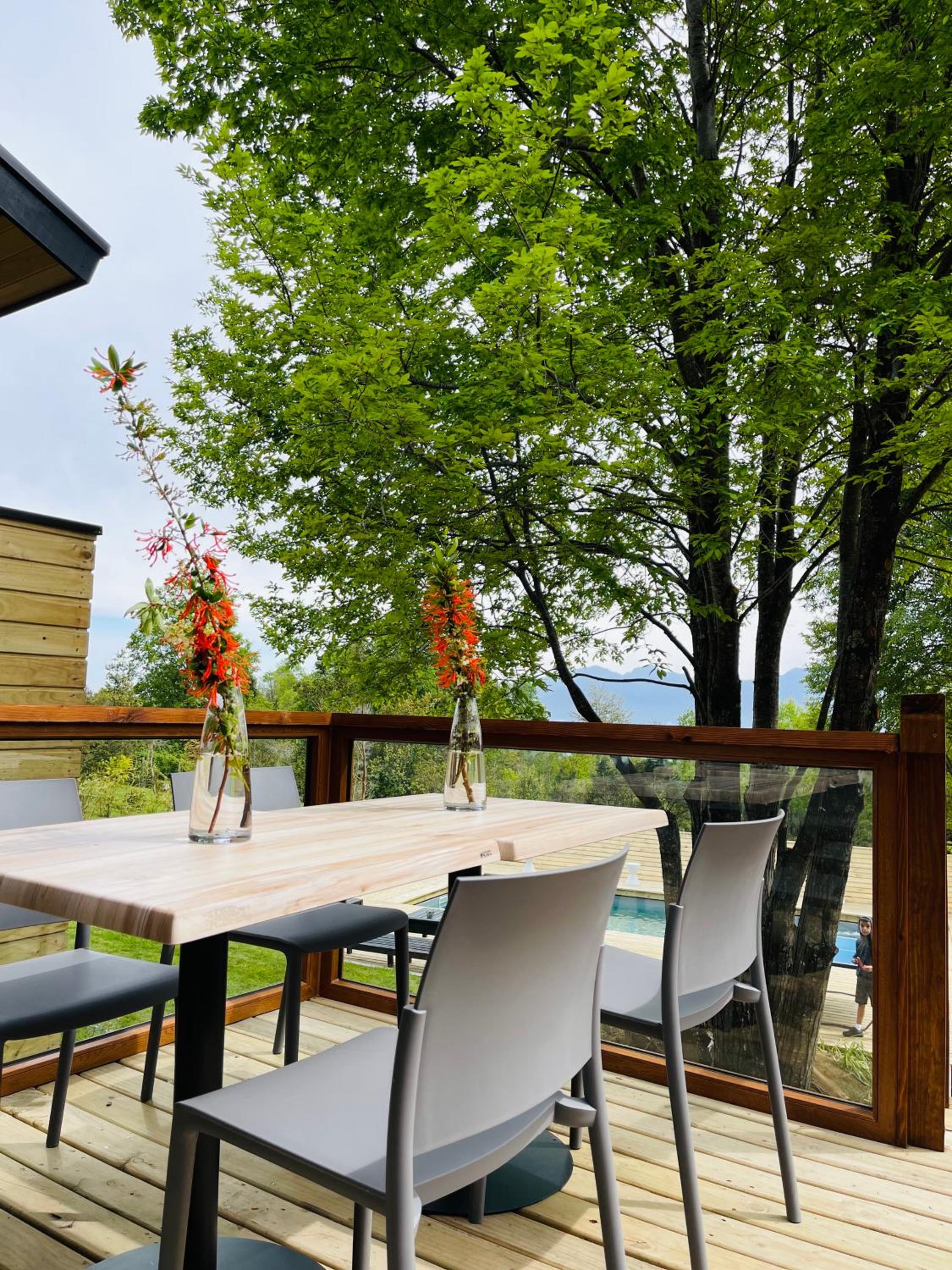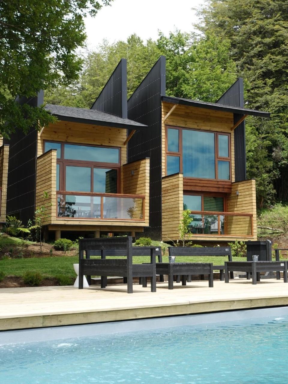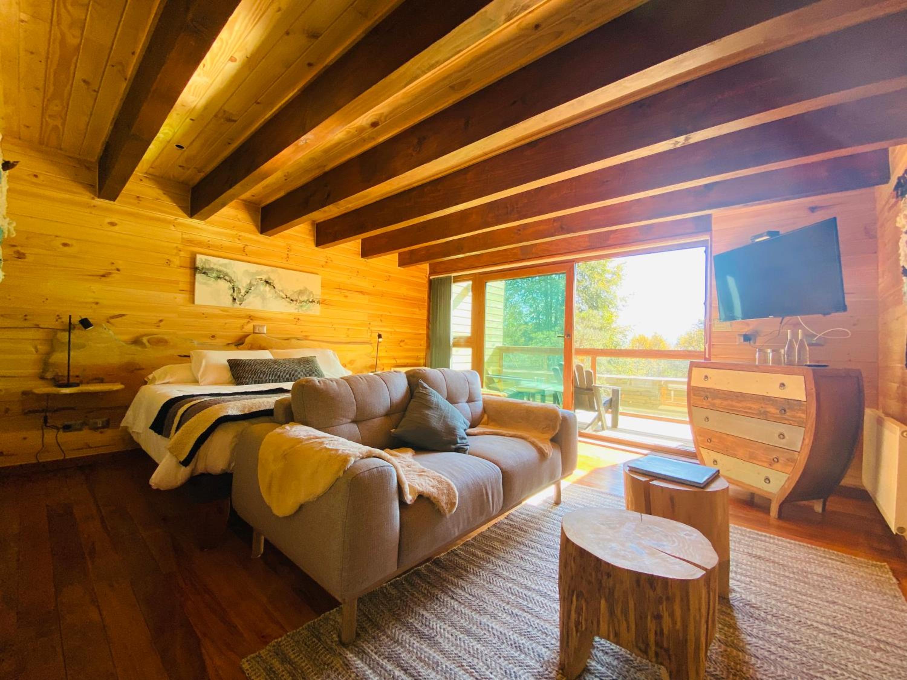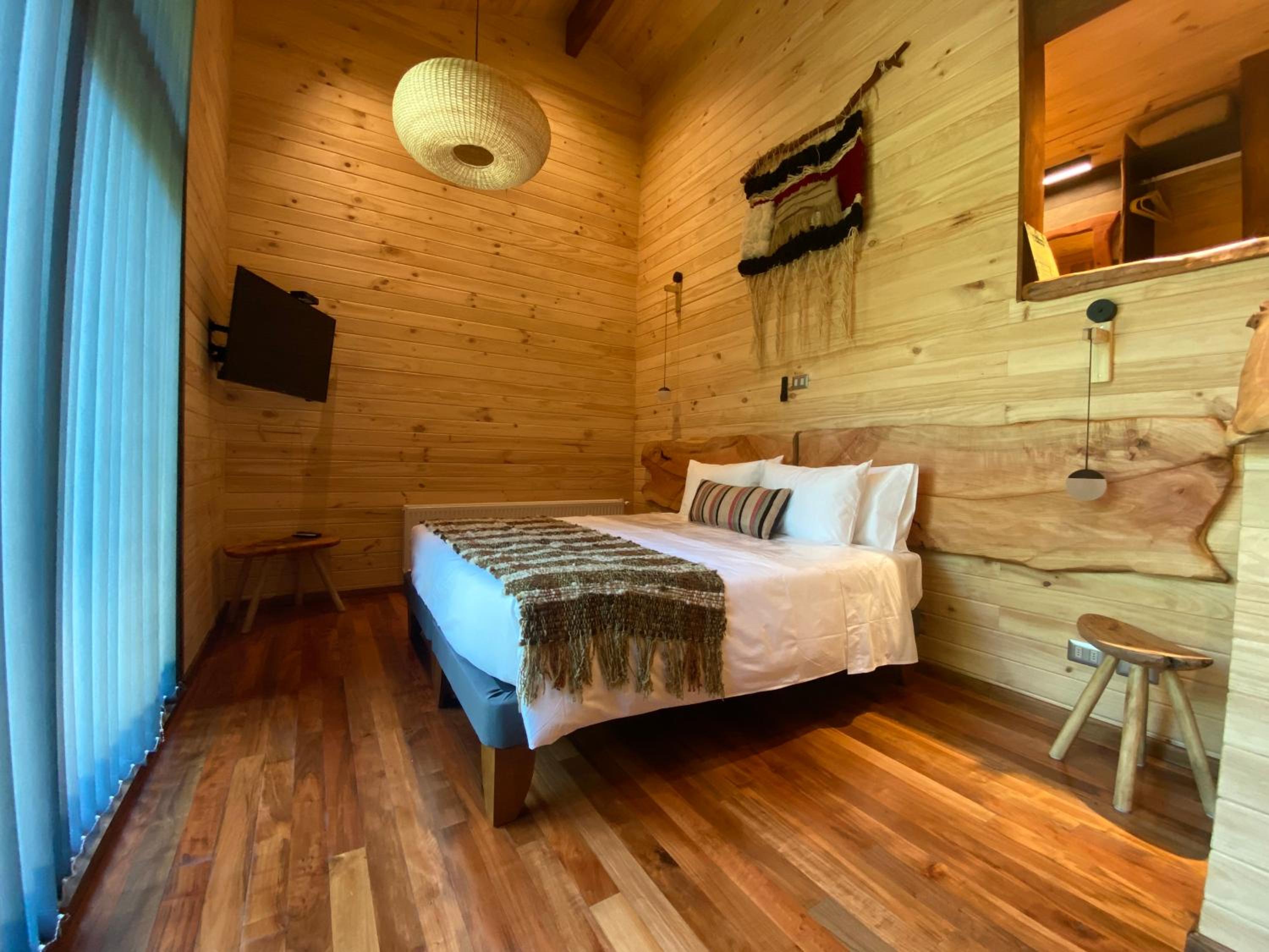 Unique boutique lodges in the middle of the forest and graciously far away from the touristy areas by the lake. Incredible, all-wood sustainable architecture, comfortable lodges with private balcony, scenic swimming pool with breathtaking sunset views on the Andes. Best breakfast of our Chilean tour and good dining with ample choice of cocktails.