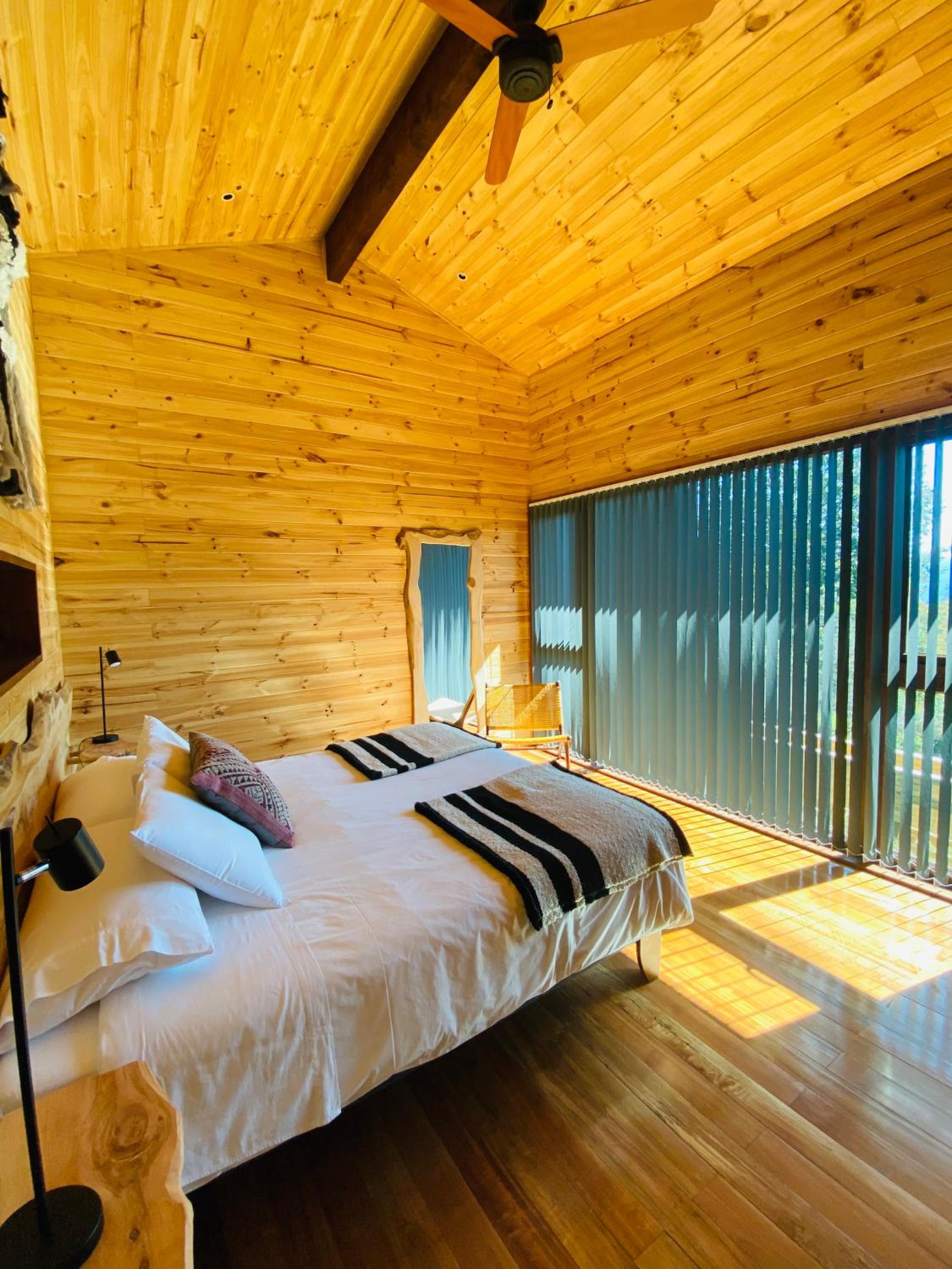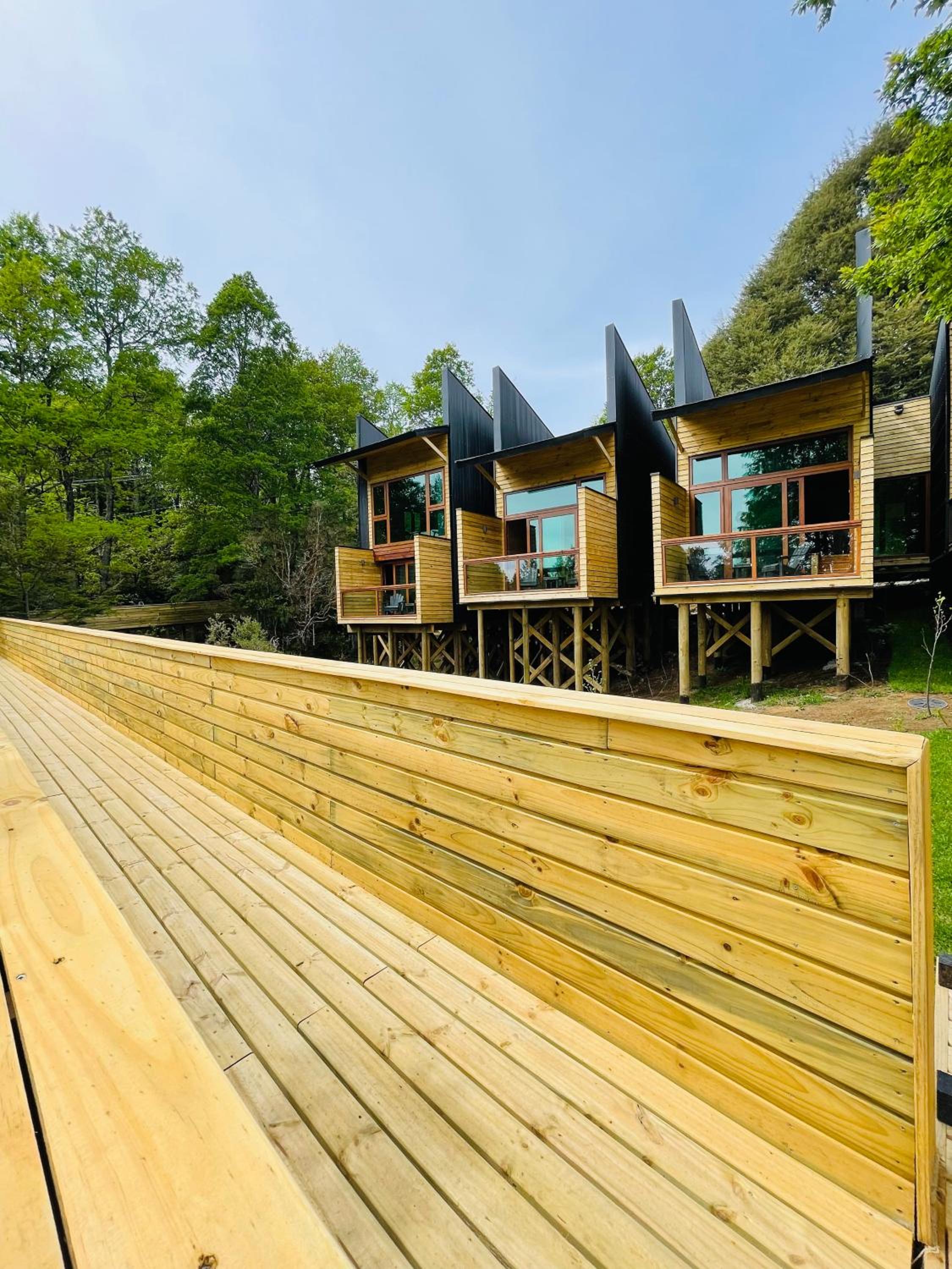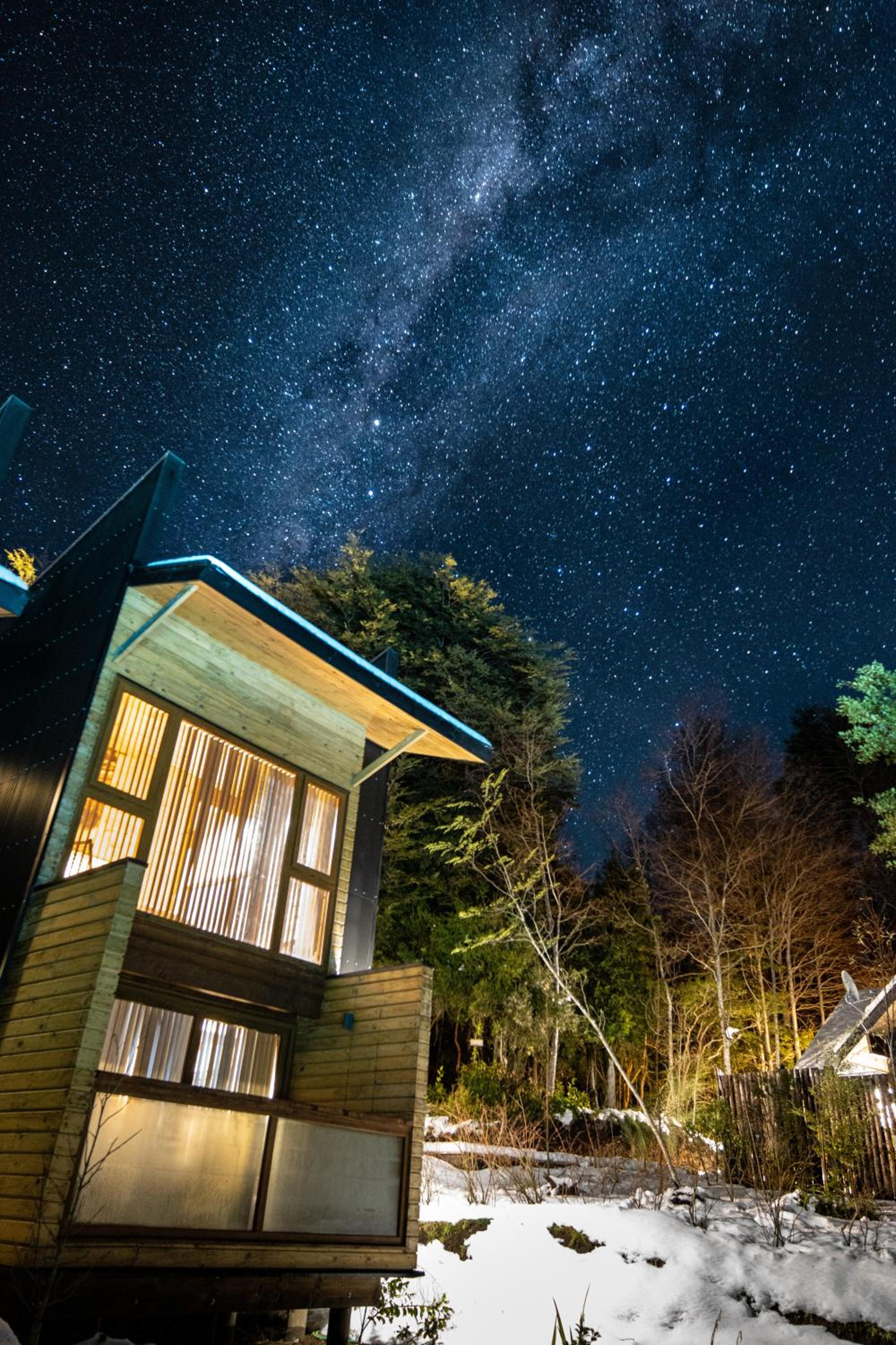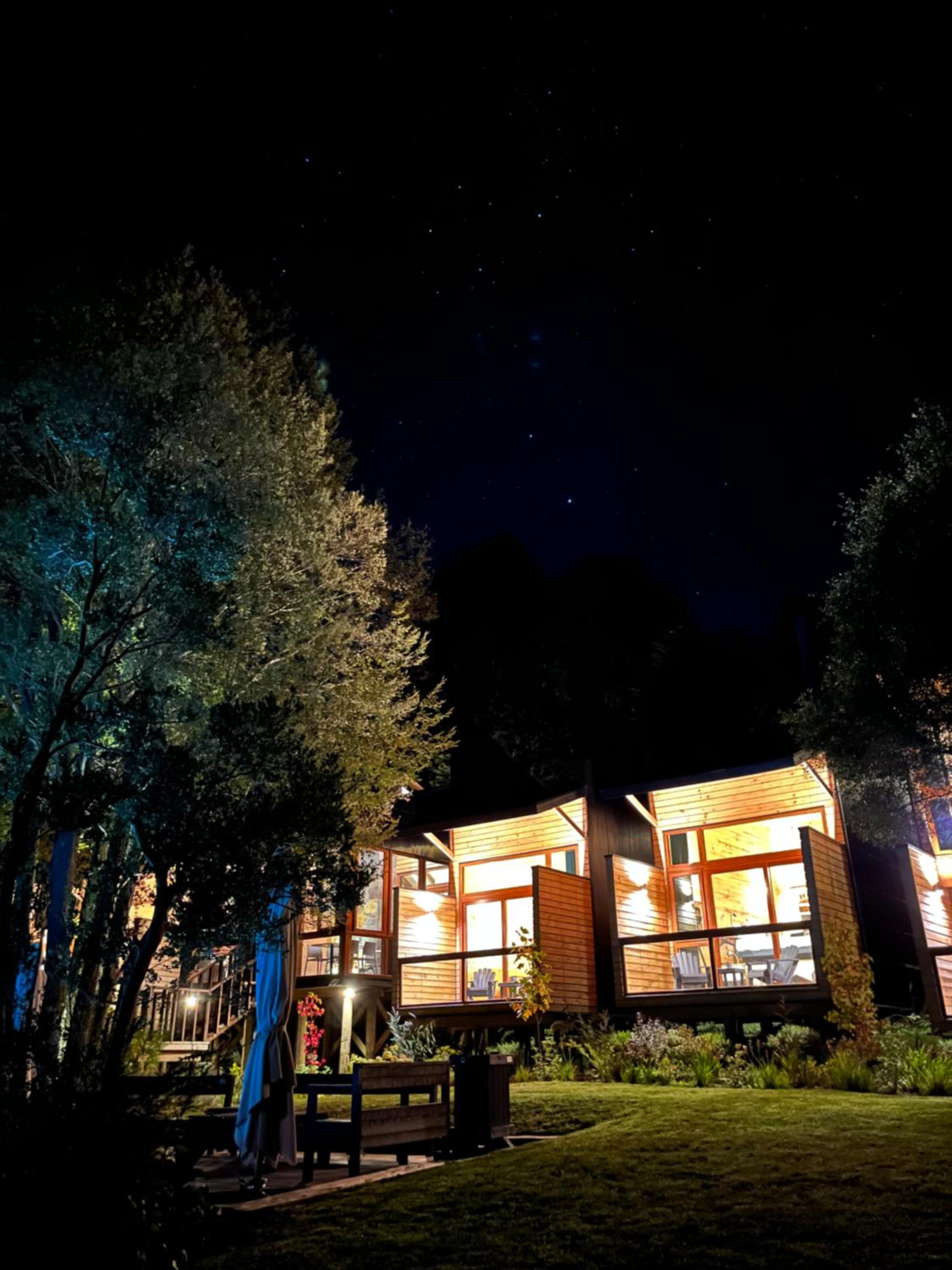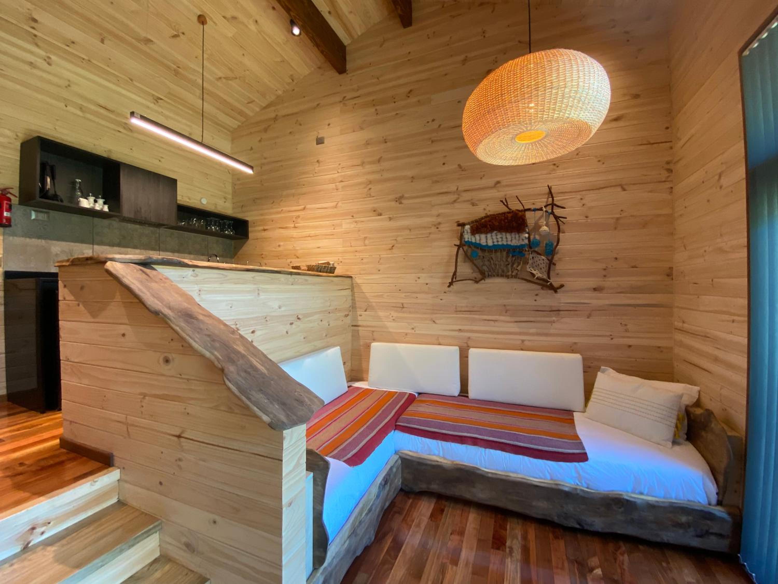 Unique boutique lodges in the middle of the forest and graciously far away from the touristy areas by the lake. Incredible, all-wood sustainable architecture, comfortable lodges with private balcony, scenic swimming pool with breathtaking sunset views on the Andes. Best breakfast of our Chilean tour and good dining with ample choice of cocktails.