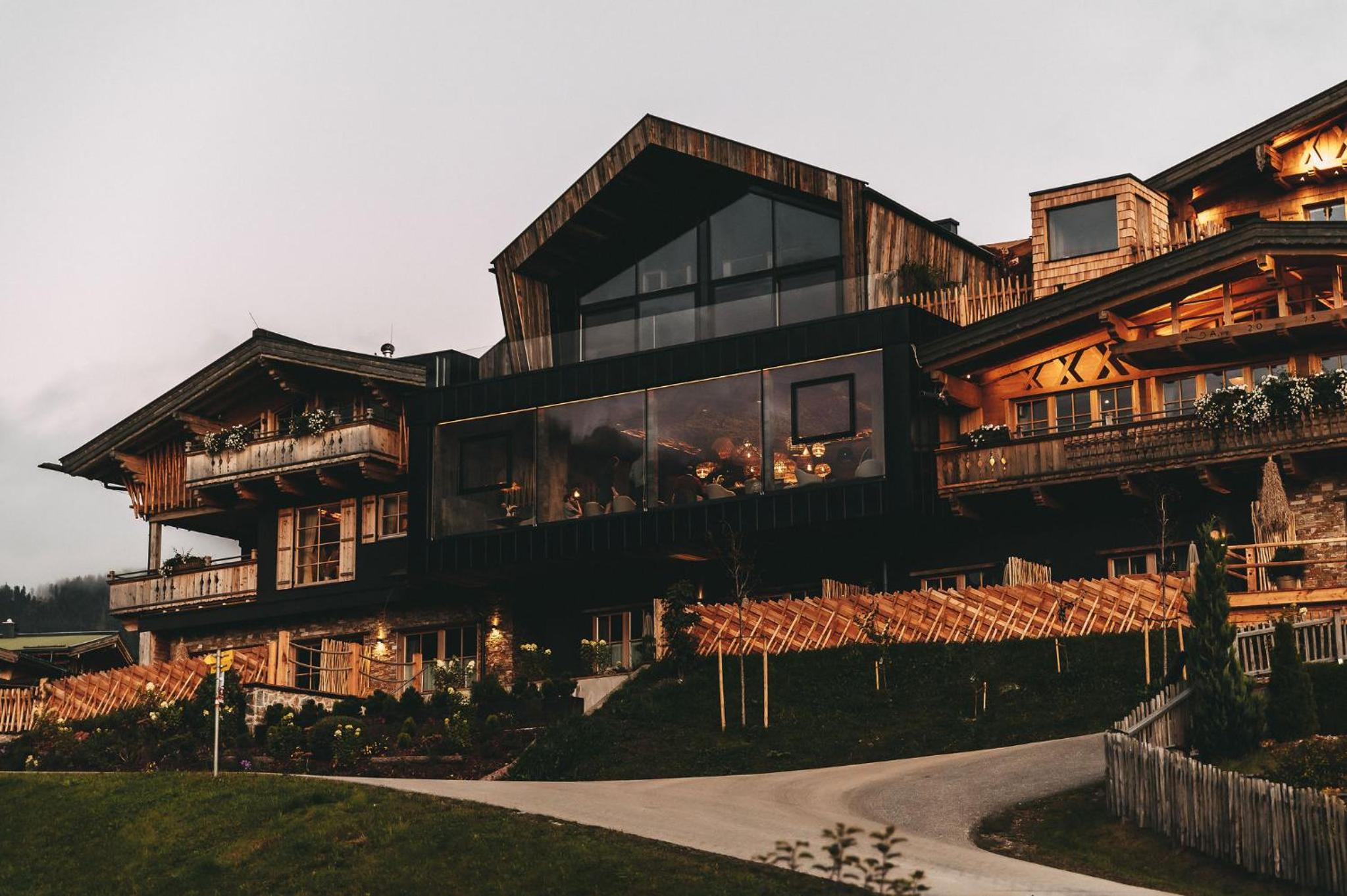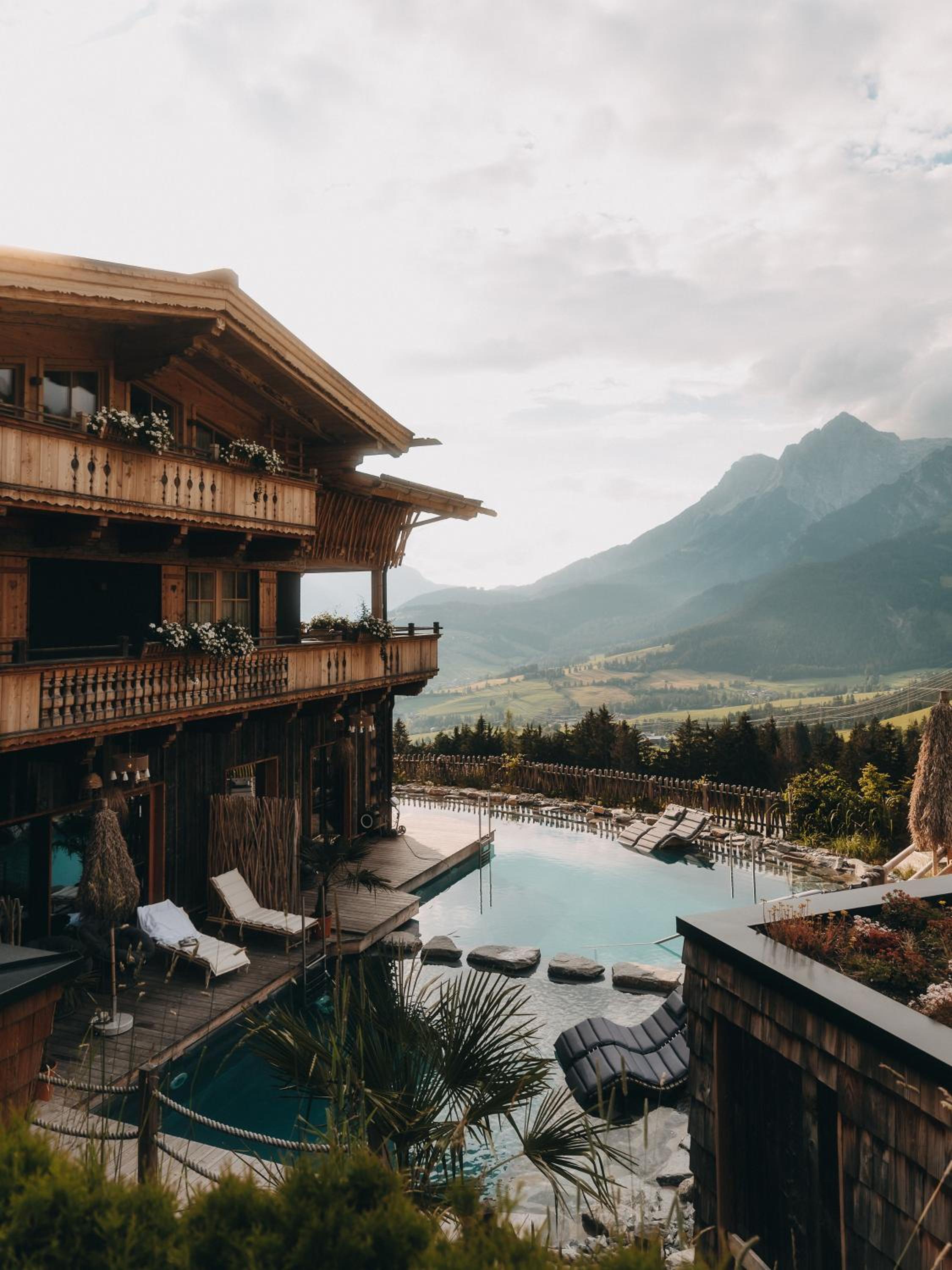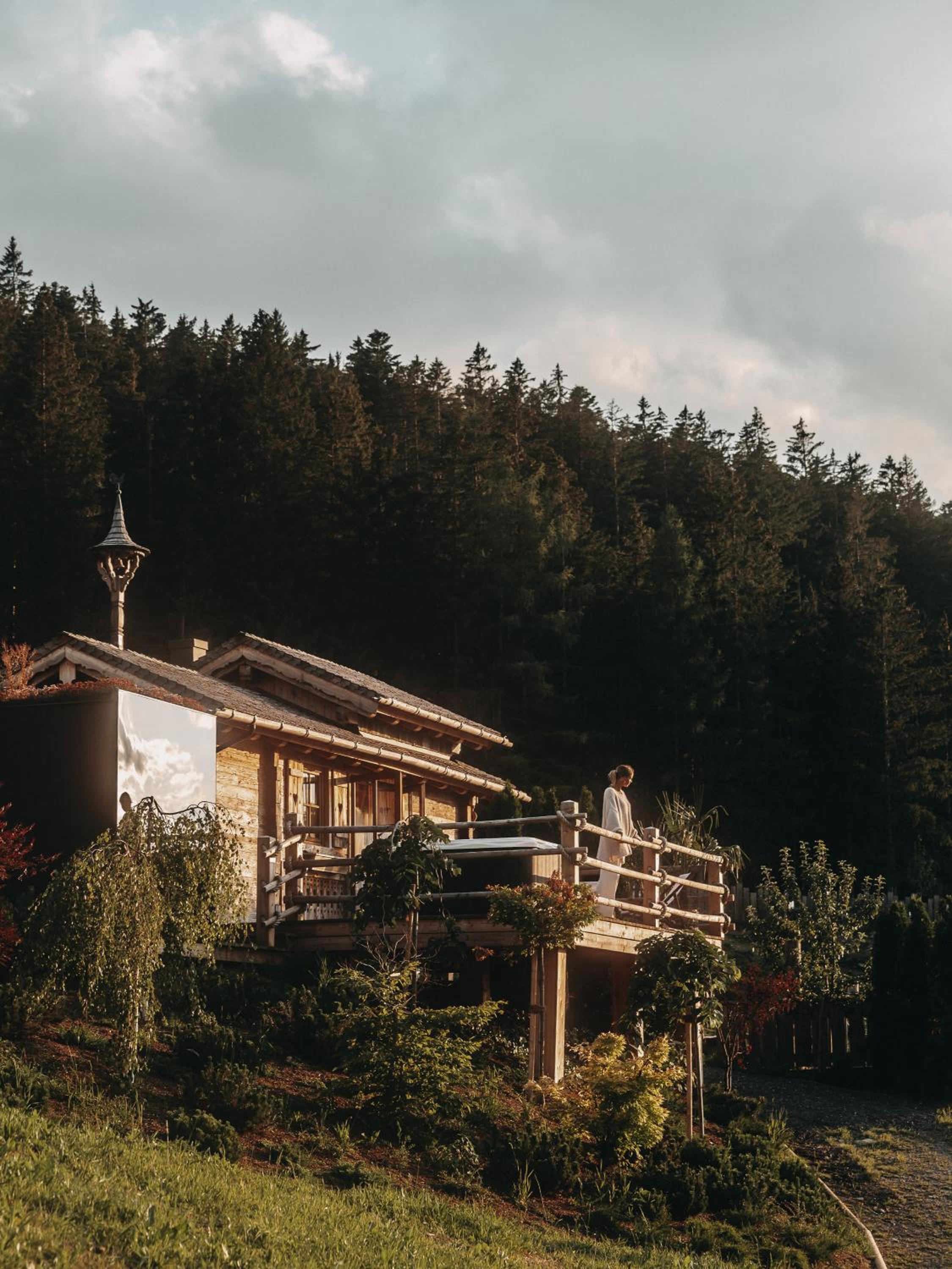 Unwind in our wellness area with a natural bathing pond, pool, and whirlpool, or rejuvenate your senses in the sauna area. Explore our extensive garden, take in the panoramic mountain views from the viewing platform, and make memories at the ski room, playground, and petting zoo.
