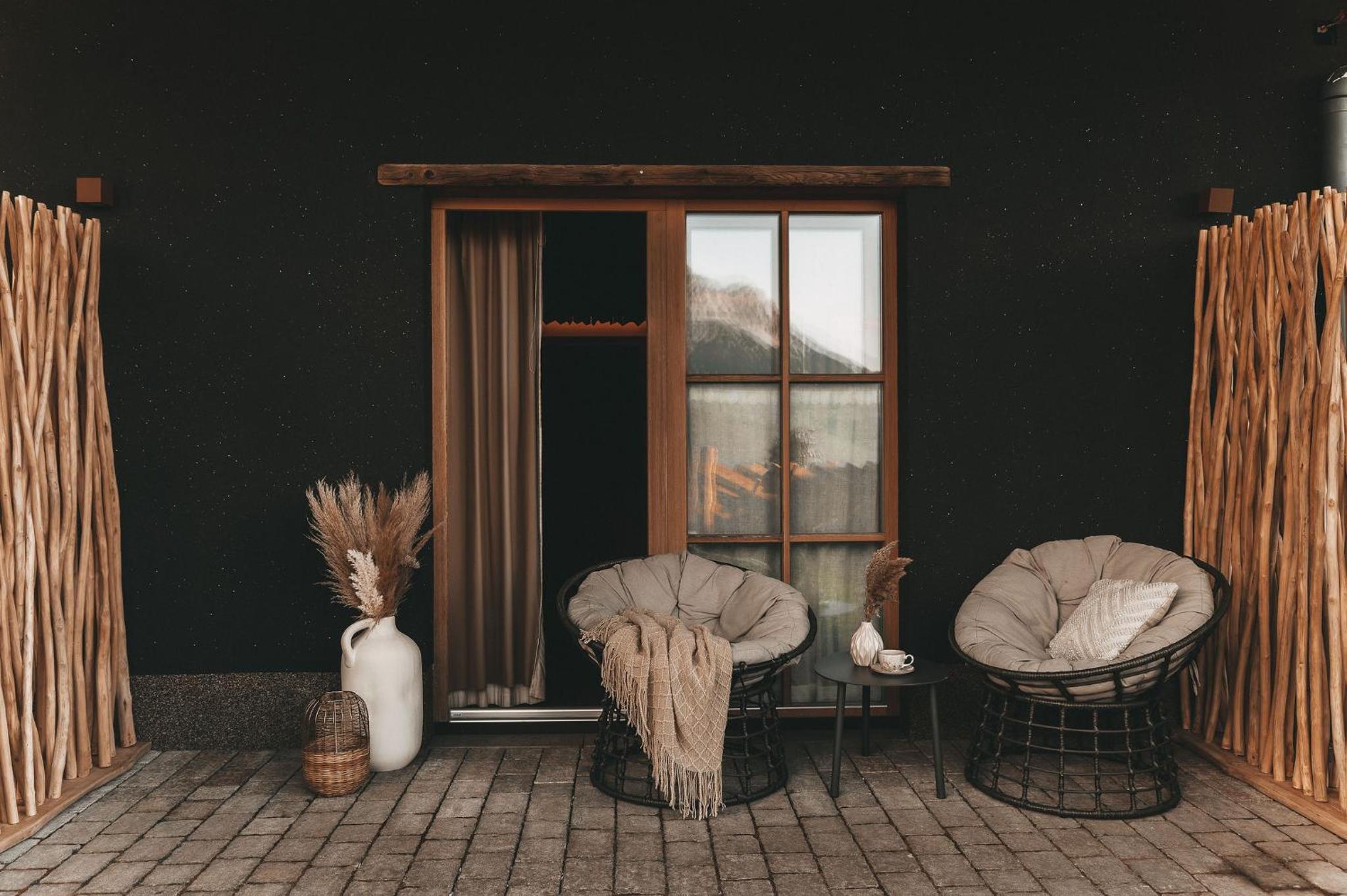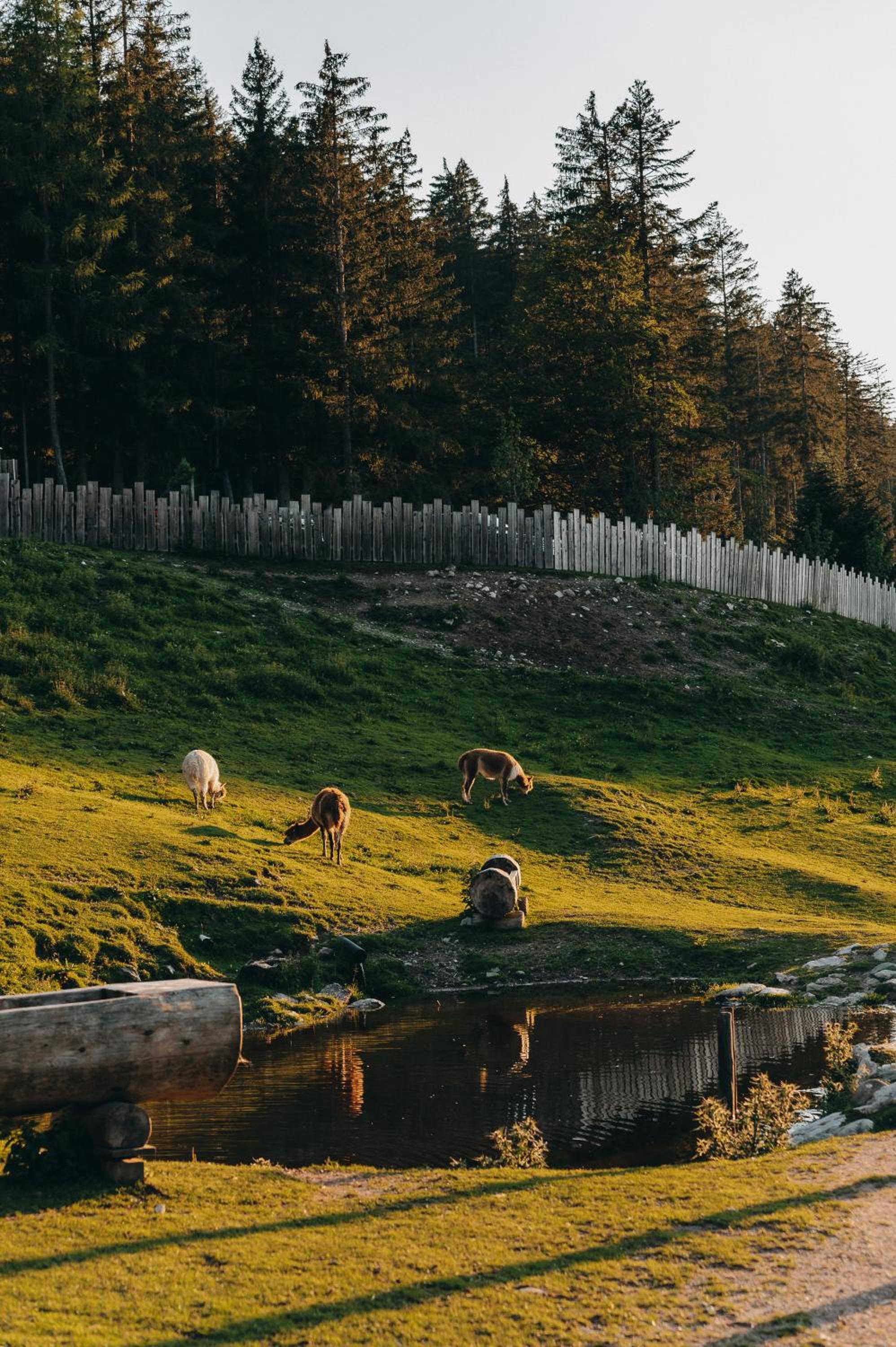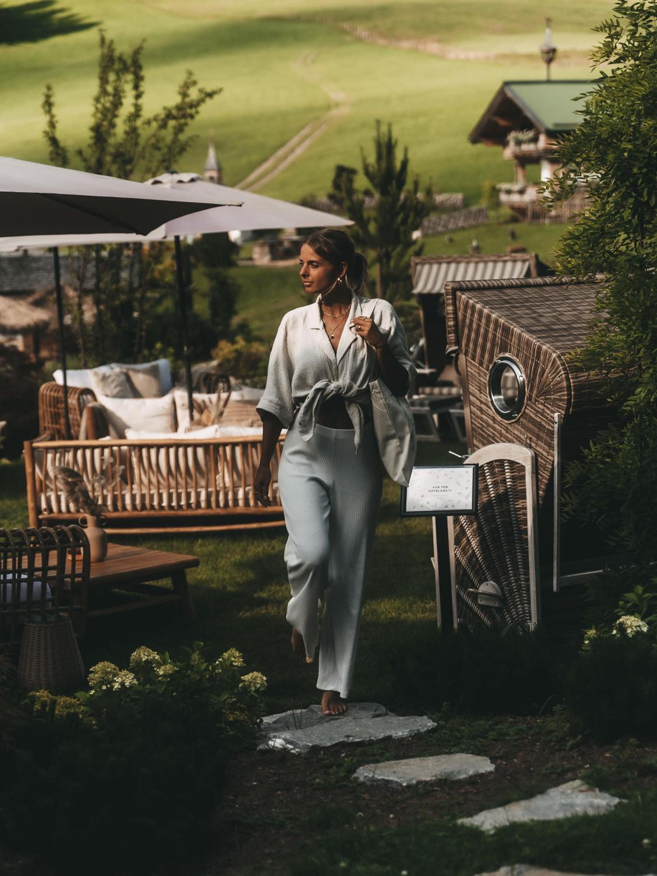 Unwind in our wellness area with a natural bathing pond, pool, and whirlpool, or rejuvenate your senses in the sauna area. Explore our extensive garden, take in the panoramic mountain views from the viewing platform, and make memories at the ski room, playground, and petting zoo.
