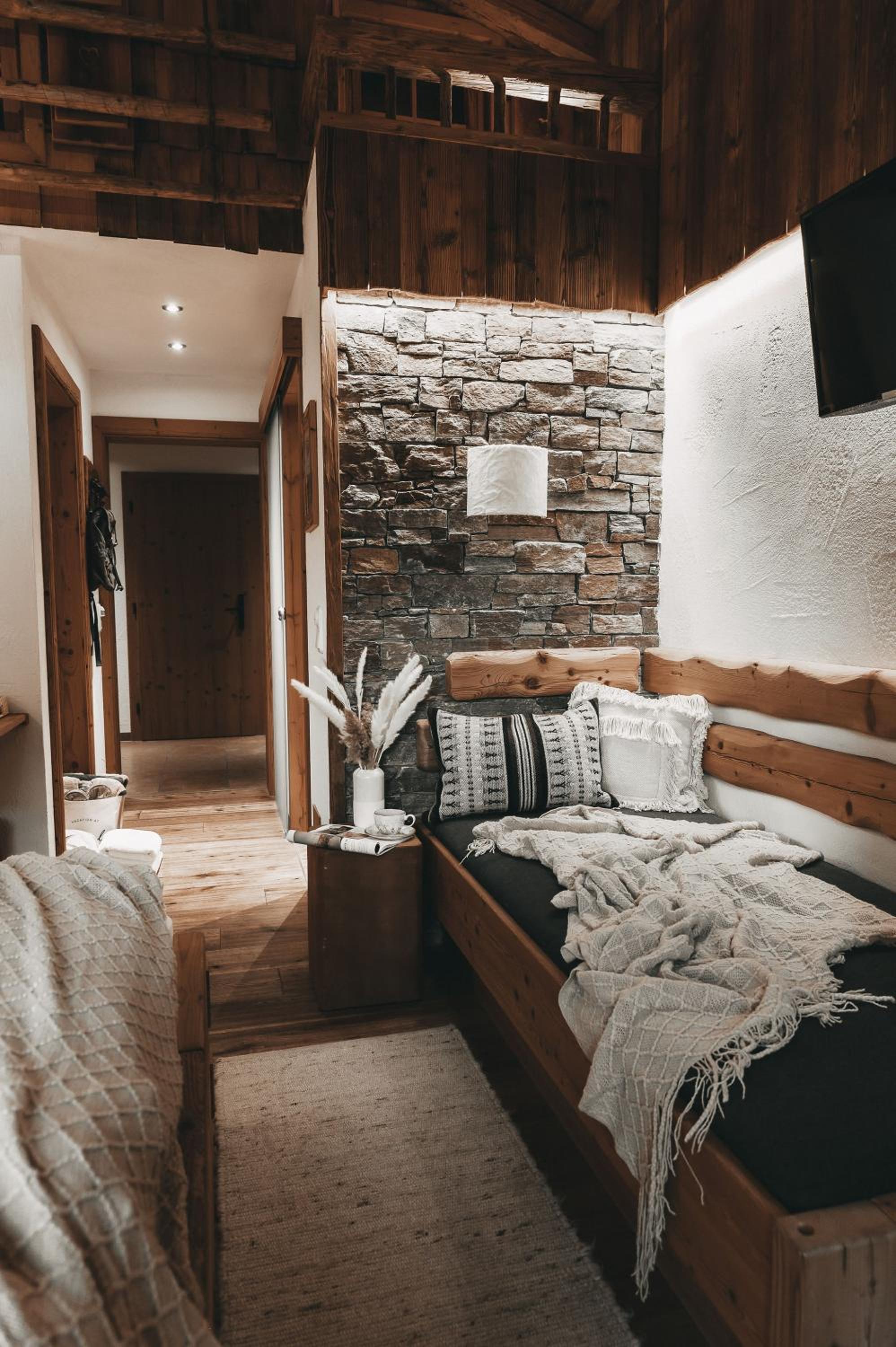 Indulge in comfort and style with our rooms featuring flat-screen TVs, private saunas, and breathtaking mountain views. Enjoy the ultimate relaxation experience during your stay at Jufenalm BOHO Hotel & Restaurant.