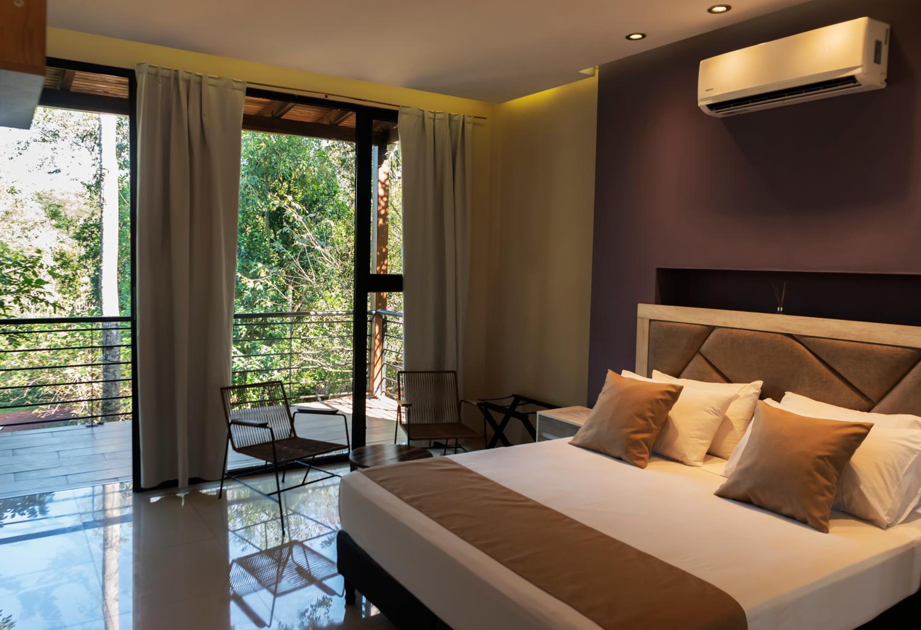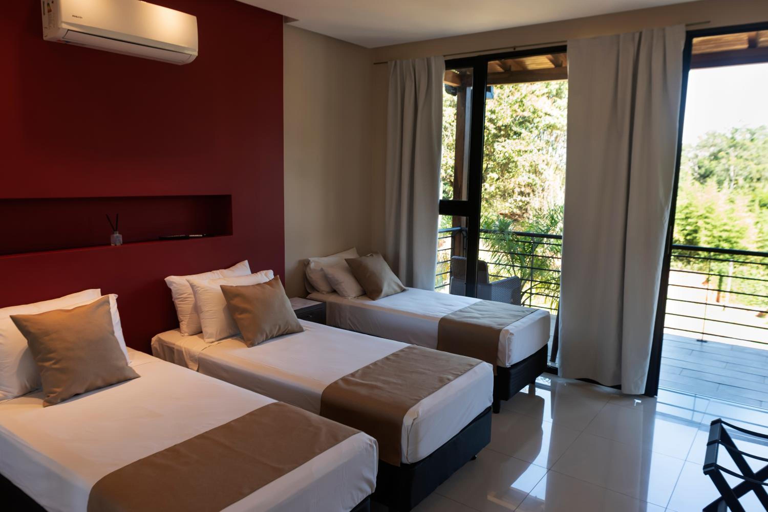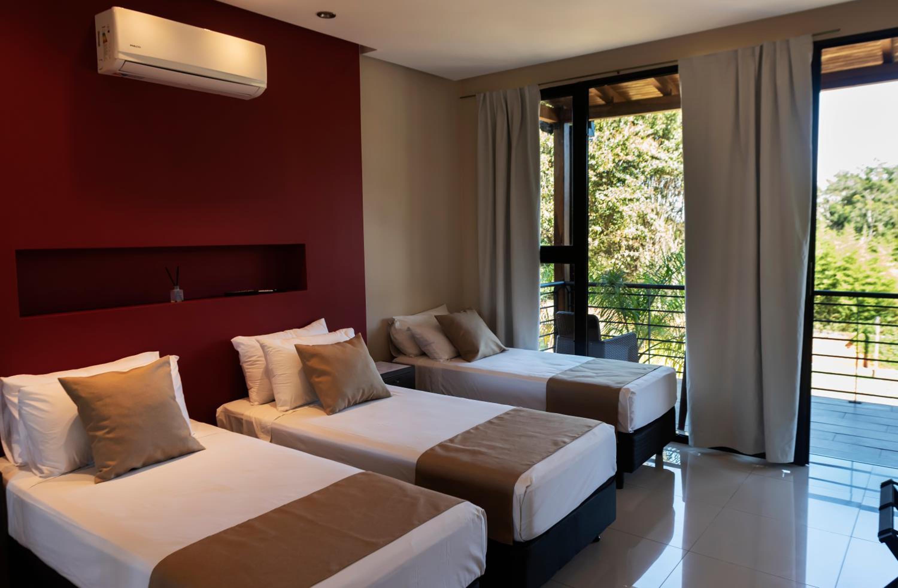 El cuarto es amplio y la cama muy cómoda. La piscina está ok (el agua es caliente, lo cual no es lo mejor si el clima es 34C) y el hotel es en medio de la naturaleza, por lo cual es posible descansar y relajarse. El personal es amable.