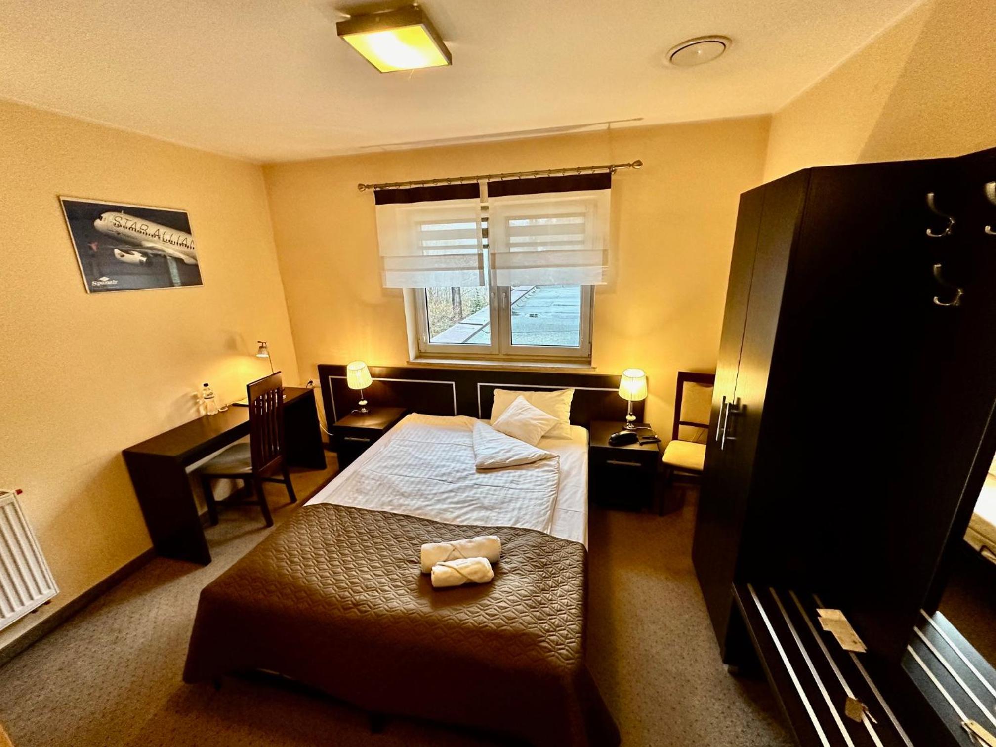 Ciekawy hotelik z dobrym dojazdem, obszernym parkingiem, dobrą kuchnią. Personel pomocny i uprzejmy.