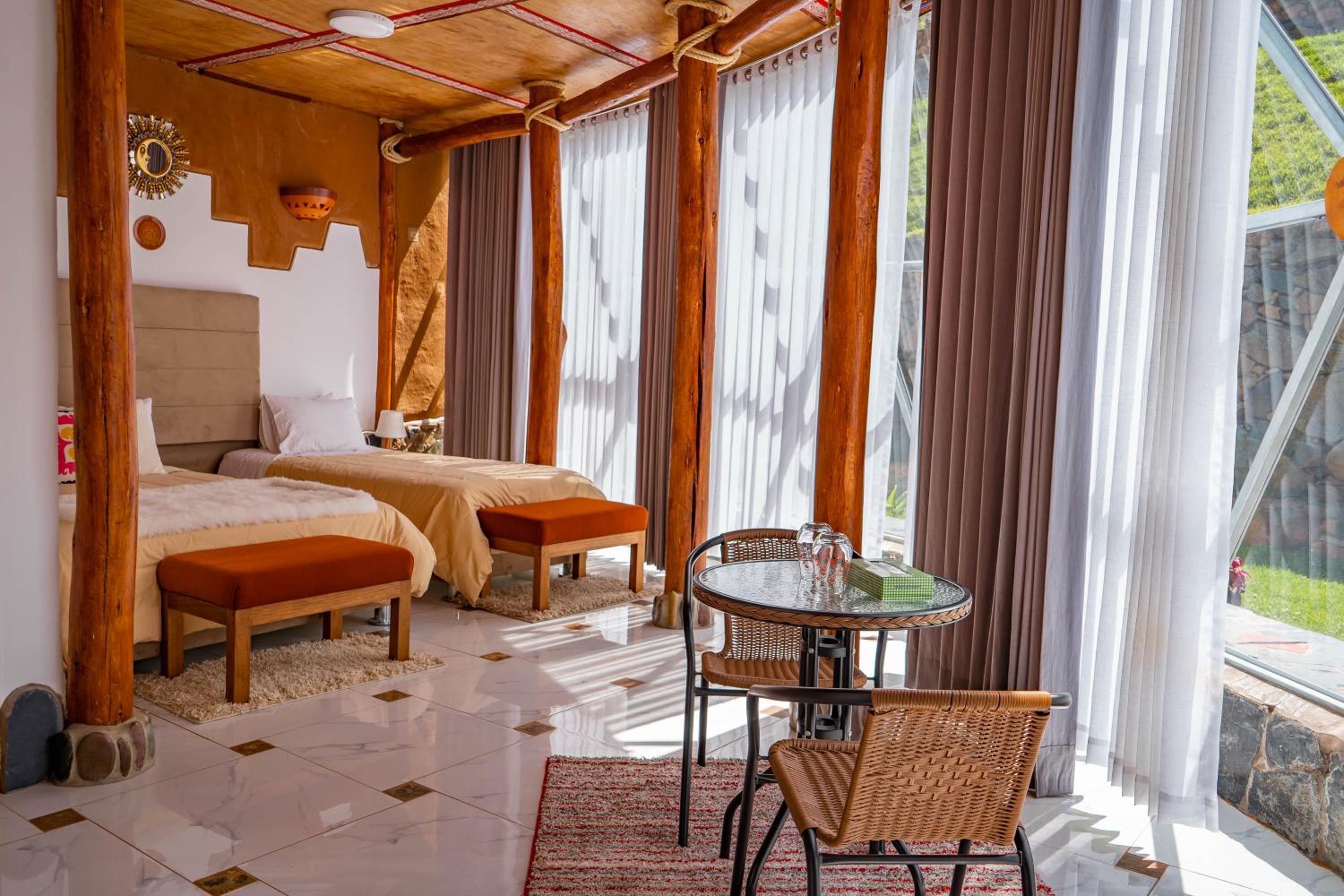 This is quite a scam. Location is far away from town - you have to go through a very bumpy road drive for 30 min to get there (upside is the hotel provides the car transportation from Ollay Centre to the hotel because no taxi driver will take this task). When we talked about it, the staff only felt it’s a normal drive as they have seen no issues with everybody else (no sympathy at all). What is worse, the room conditions: no sound proof. The room next to ours has a couple who were having sex midnight loud and clear. We saw a fly in the room. Hot water is not always available though the staff was denying it right after I had a cold shower. They tried to make some amendments to make our experience better afterwards but it’s too late! The experience has been totally bad. Food is very simple. Breakfast has no meat. If you are here for stars, the weather doesn’t allow it as it’s usually cloudy. To get to Machu Picchu you don’t have to stay in Ollay, as we later found out the town next to it offers some quite good accommodation too